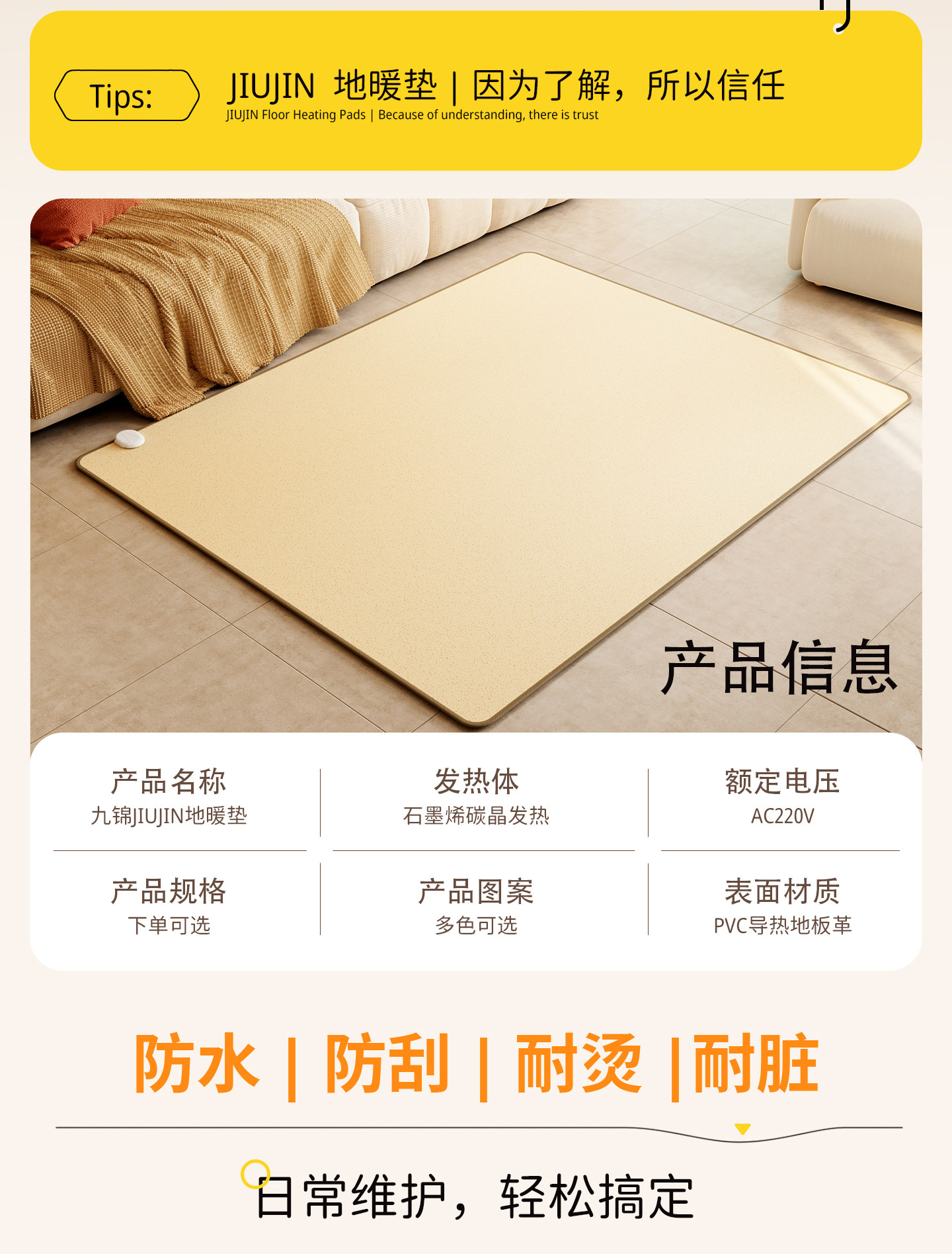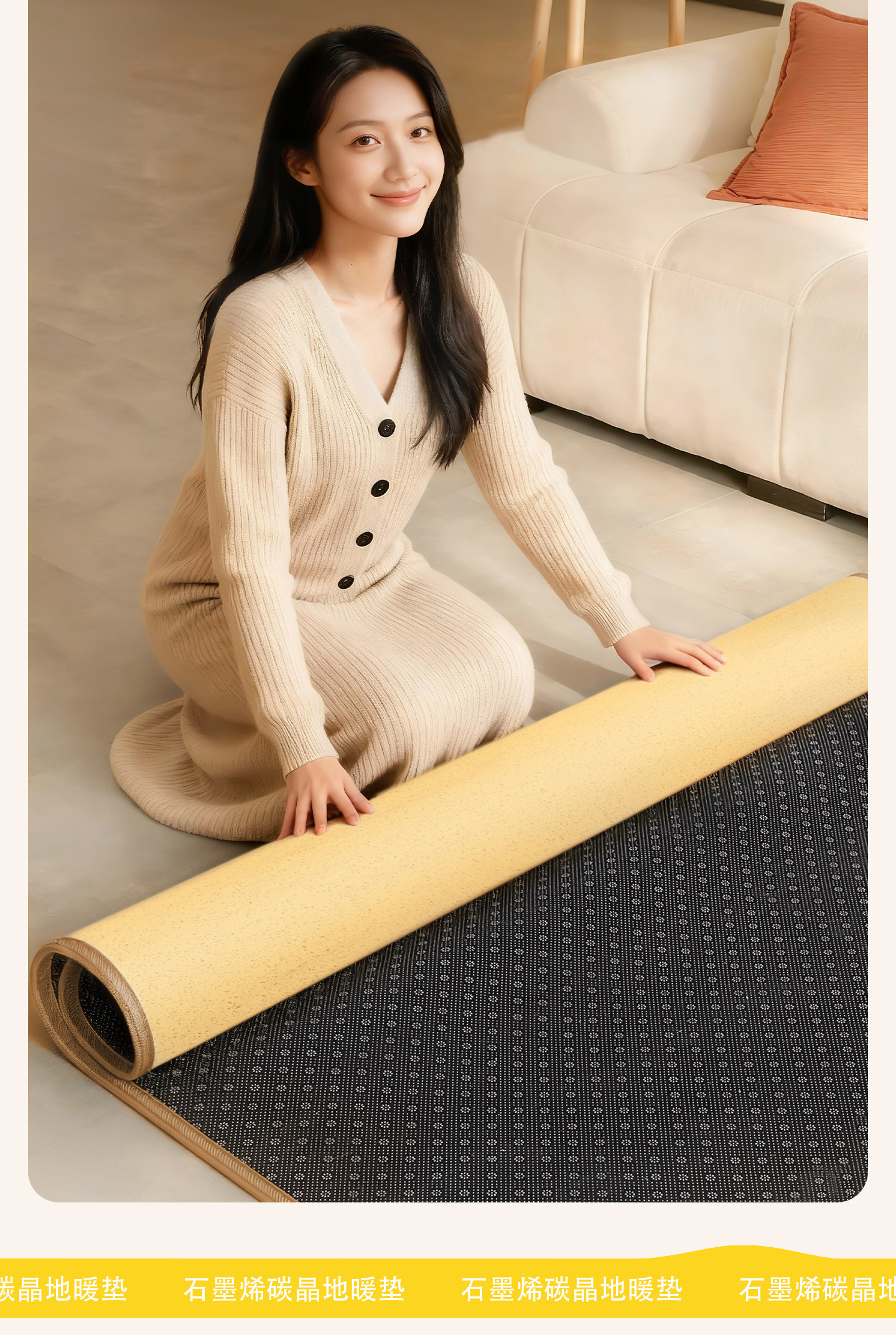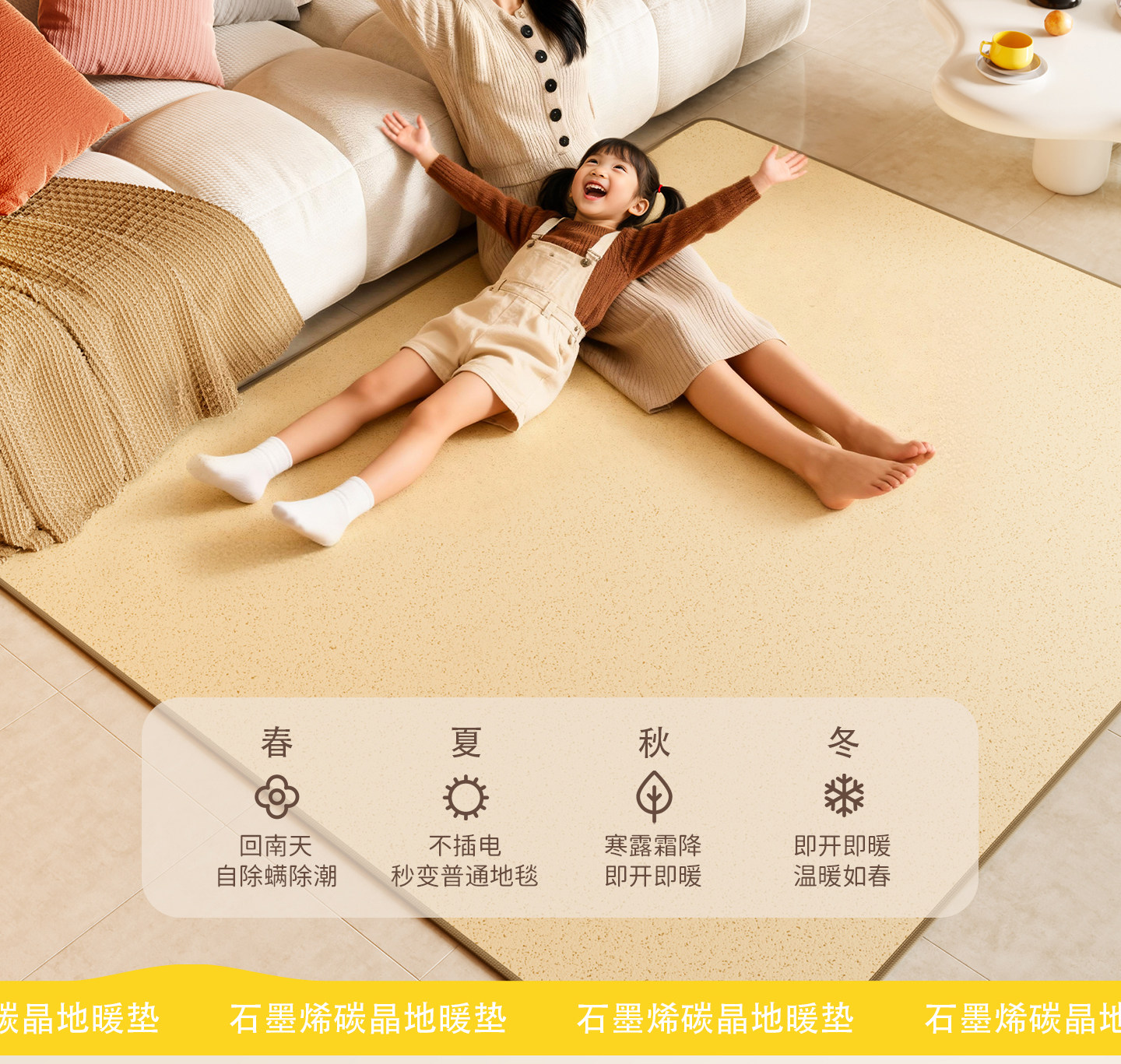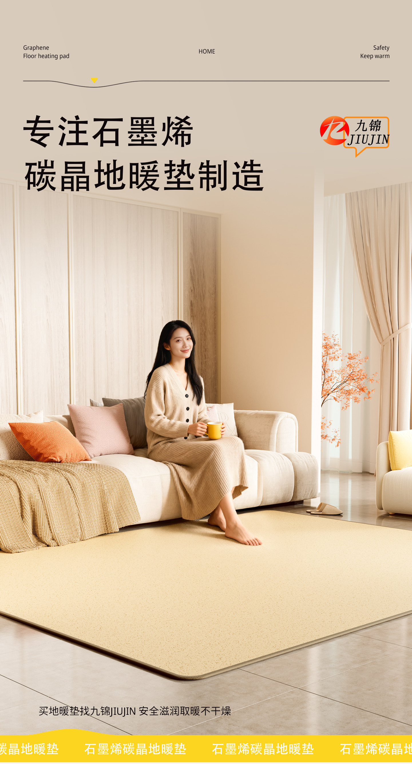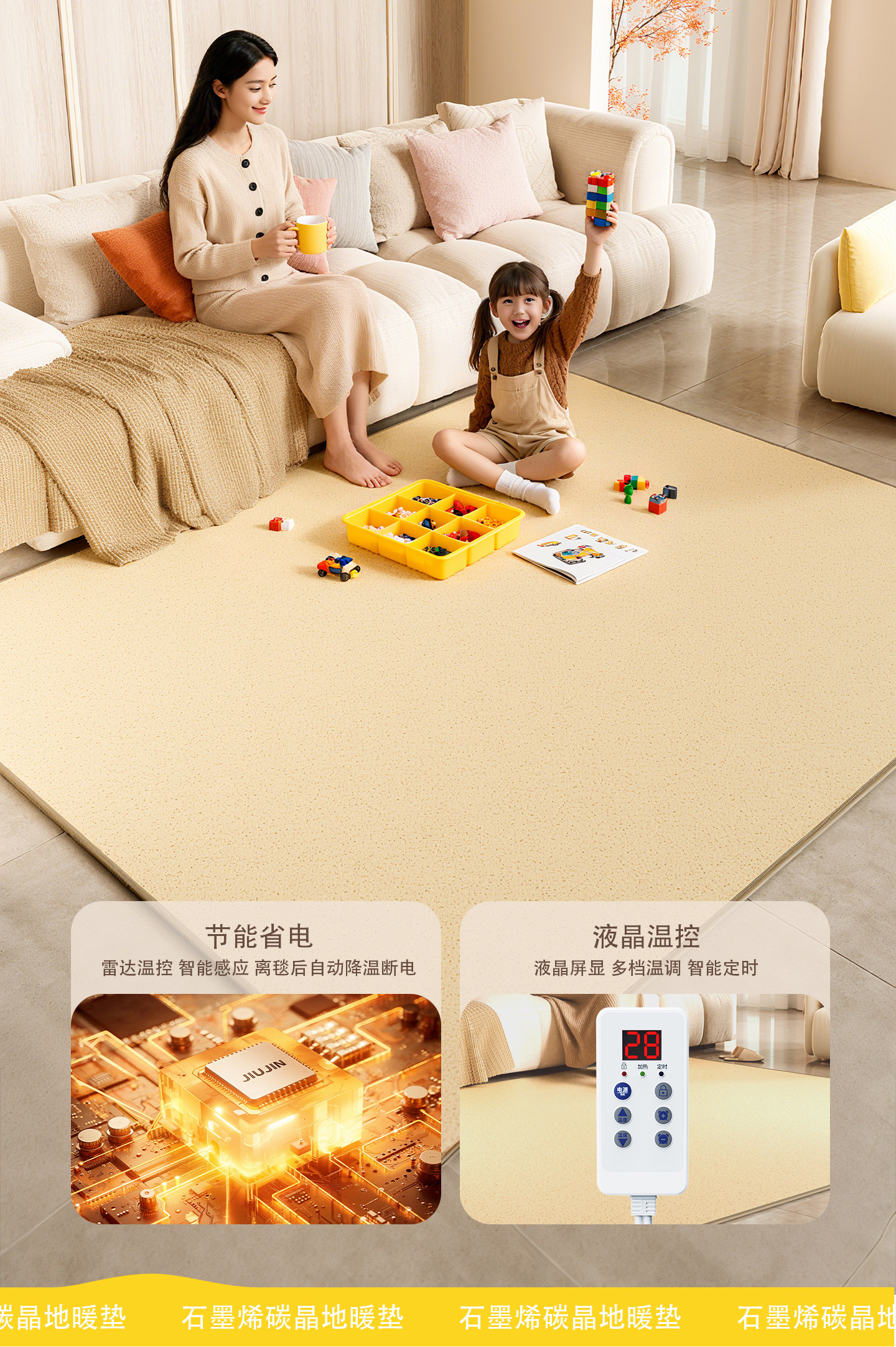 Jiujiu Floor Heating Pad for Home Use, Graphene Heating Floor Mat, Living Room Floor Heating Electric Carpet Mat, Winter Heating Pad