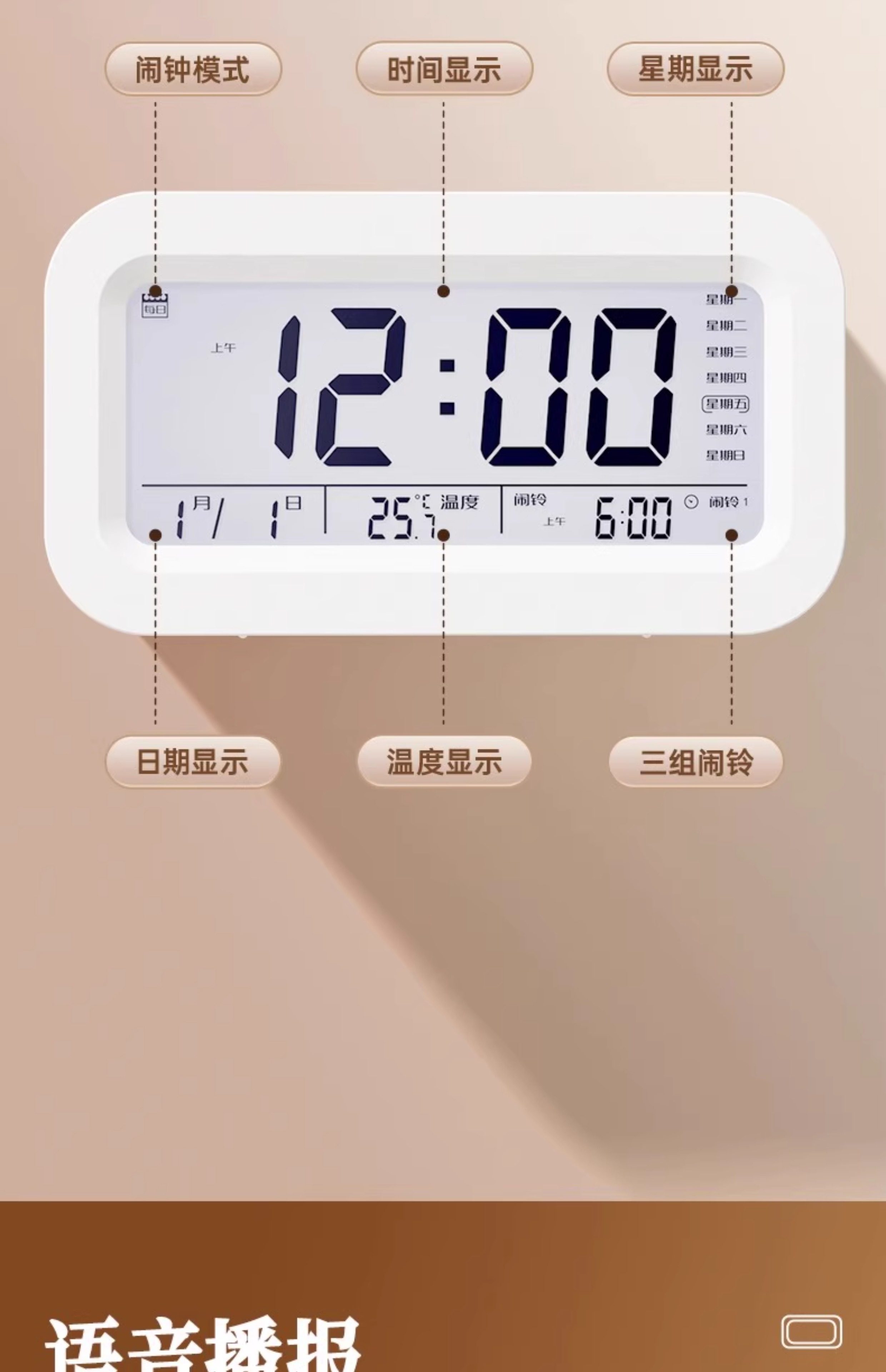 | Color Classification | [Exclusive for Favorites and Purchases]Free Replacement if Broken Within 5 Years,[Quickly Send ]Rapid Delivery, Slow Delivery Will Be Compensated,[Award-Winning New Products]Won Multiple Awards at Home and Abroad,♥♥↓↓The Following Is the Button Type↓↓♥♥,⏰Battery Model-White[Smart Voice Broadcast★Led Large Screen★Adjustable Volume]-Send Battery,⏰ Battery Operated - Blue[Smart Voice Broadcast★Led Large Screen★Adjustable Volume]-Send Battery,⏰Battery Model-Green[Smart Voice Broadcast★Led Large Screen★Adjustable Volume]-Send Battery,⏰Battery Model-Pink[Smart Voice Broadcast★Led Large Screen★Adjustable Volume]-Send Battery,♻ Rechargeable Model-White[Smart Voice Broadcast★Led Large Screen★Adjustable Volume]-Long Battery Life,♻ Rechargeable Model-Blue[Smart Voice Broadcast★Led Large Screen★Adjustable Volume]-Long Battery Life,♻ Rechargeable Model-Green[Smart Voice Broadcast★Led Large Screen★Adjustable Volume]-Long Battery Life,♻ Rechargeable Model-Pink[Smart Voice Broadcast★Led Large Screen★Adjustable Volume]-Long Battery Life,♥♥↓↓The Following Is the Touch Version↓↓♥♥,⏰Touch Model-Battery Model-White[Long Standby★The Night Light Display Is Not Dazzling]-Send Battery,⏰Touch Model-Battery Model-Blue[Long Standby★The Night Light Display Is Not Dazzling]-Send Battery,⏰ Touch Model-Battery Model-Green[Long Standby★The Night Light Display Is Not Dazzling]-Send Battery,⏰Touch Model-Battery Model-Pink[Long Standby★The Night Light Display Is Not Dazzling]-Send Battery,♻ Touch Model-Rechargeable Model-White[Long Standby★The Night Light Display Is Not Dazzling]-Loud Volume,♻ Touch Model-Rechargeable Model-Blue[Long Standby★The Night Light Display Is Not Dazzling]-Loud Volume,♻ Touch Model-Rechargeable Model-Green[Long Standby★The Night Light Display Is Not Dazzling]-Loud Volume,♻ Touch Model-Rechargeable Model-Pink[Long Standby★The Night Light Display Is Not Dazzling]-Loud Volume,♥↓Alarm Clock with Timer Function↓♥,⏰Timed Model-Battery Model-White[Count Up/Count down★Vibration Reminder★Touch Sensor],⏰Timing Model-Battery Model-Green[Count Up/Count down★Vibration Reminder★Touch Sensor],⏰Timing Model-Battery Model-Pink[Count Up/Count down★Vibration Reminder★Touch Sensor],♻ Timing Model-Rechargeable Model-White[Count Up/Count down★Vibration Reminder★Touch Sensor],♻ Timing Model-Rechargeable Model-Green[Count Up/Count down★Vibration Reminder★Touch Sensor],♻ Timing Model-Rechargeable Model-Pink[Count Up/Count down★Vibration Reminder★Touch Sensor] |