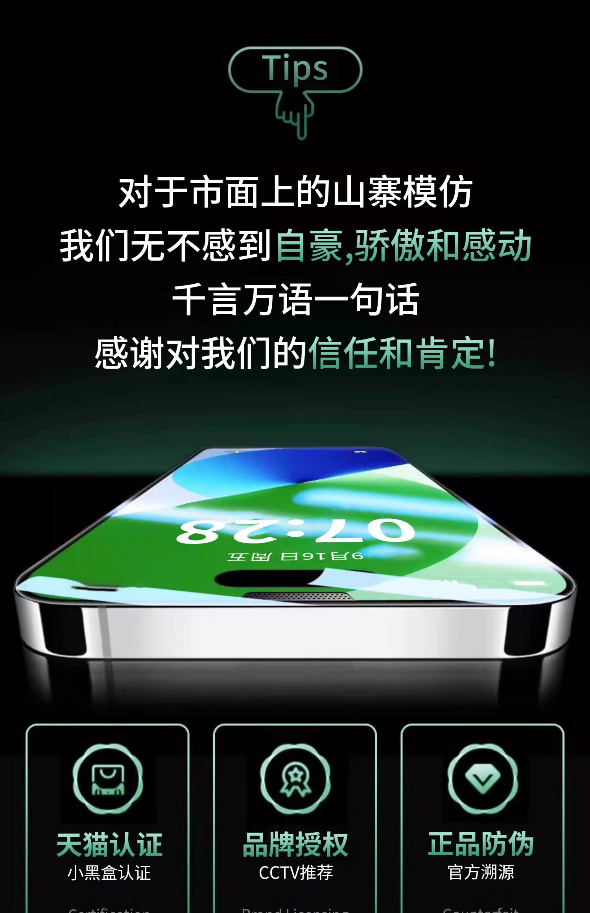 | Film Characteristics | Anti-Fingerprint,High Definition,Anti-Fall |