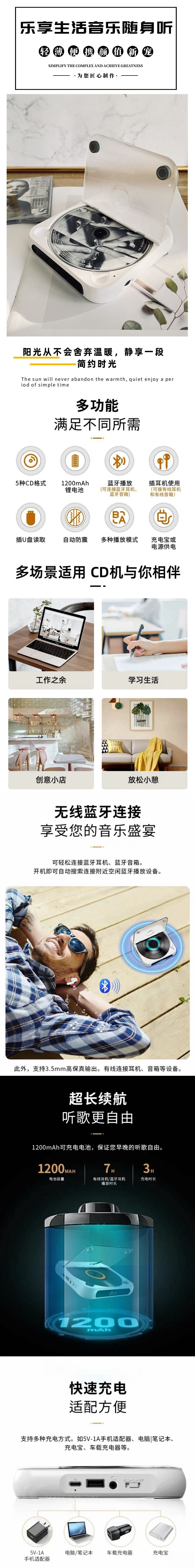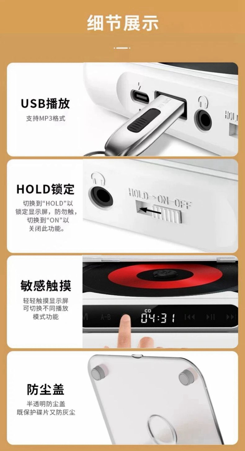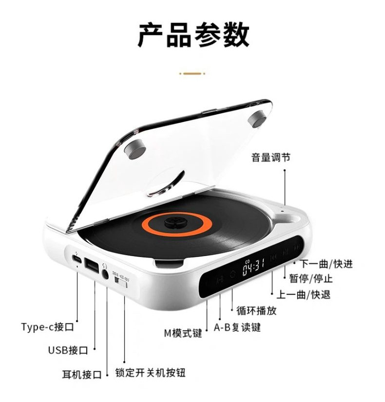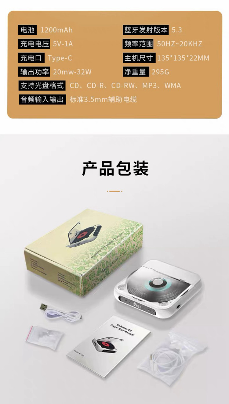 Cd Player, Repeater, Mp3 Player, Portable Music Player for Students, English Listening, Lightweight and Portable, Vinyl Cd Album Mini Player