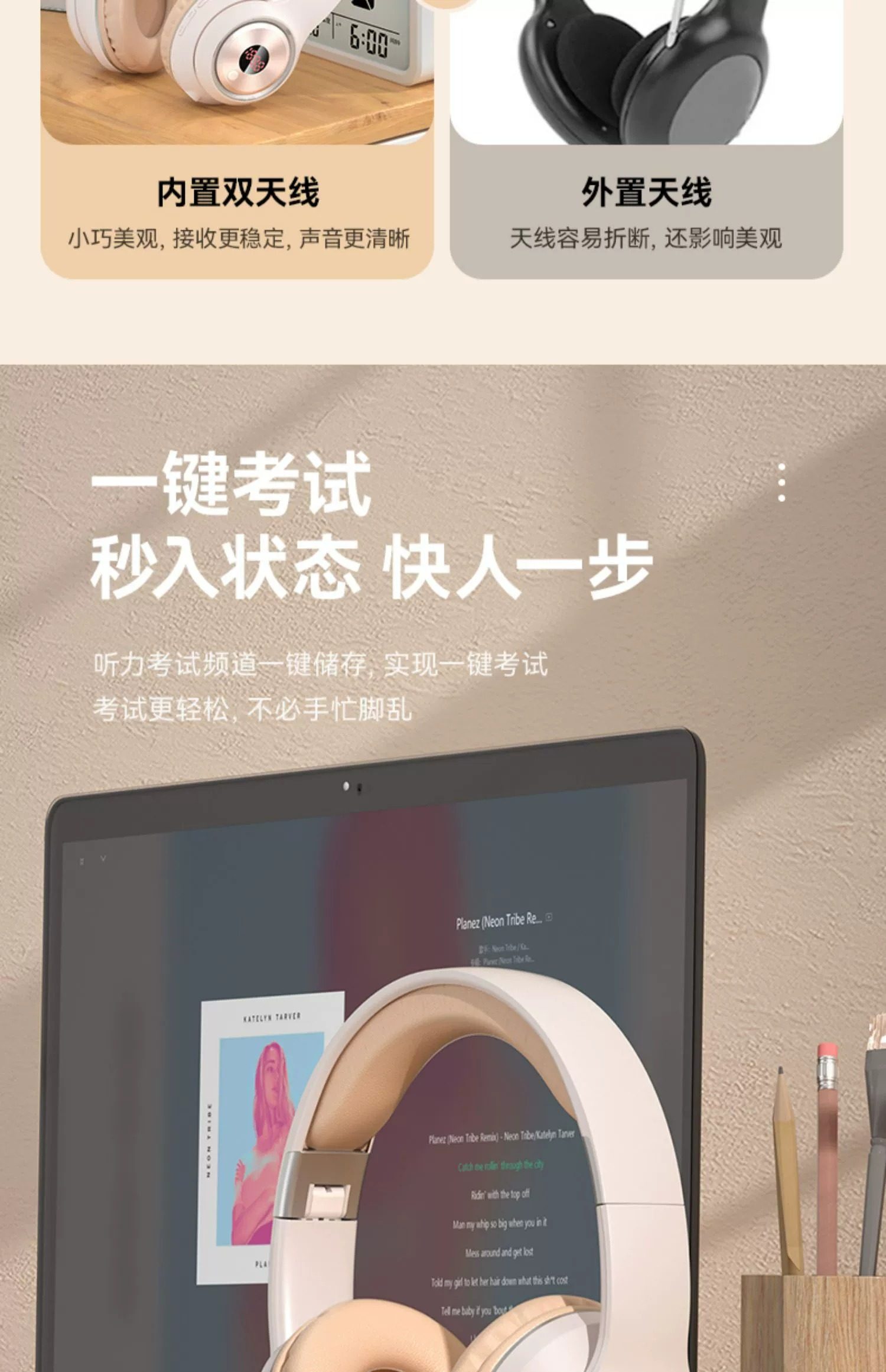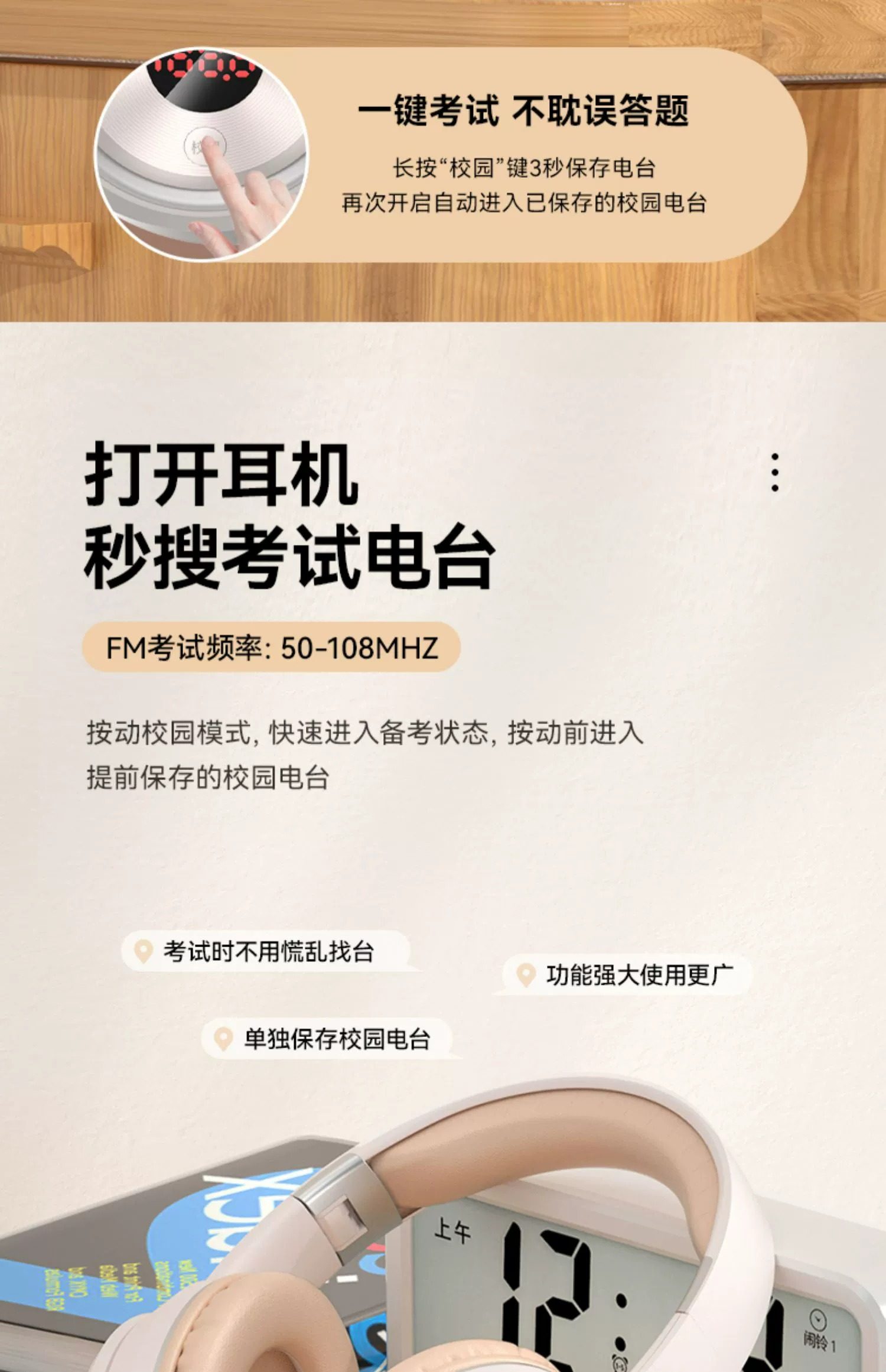 Head-Mounted Bluetooth Headphones for Students Taking the English Cet-4 and Cet-6 Exams, Wired Listening, Fm Radio, Online Course Exams