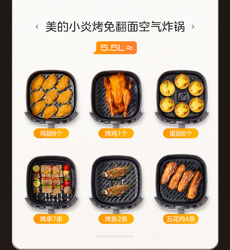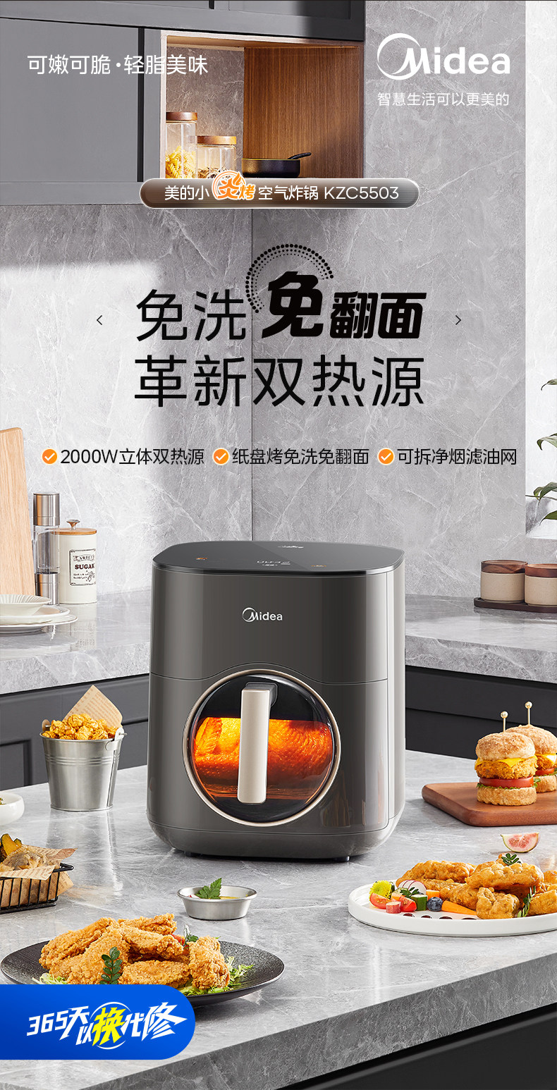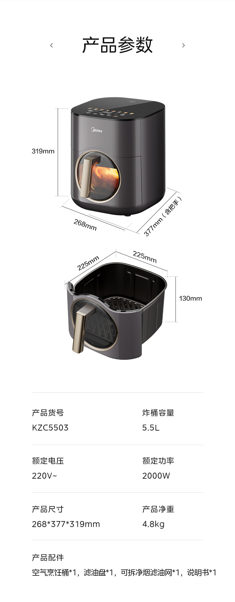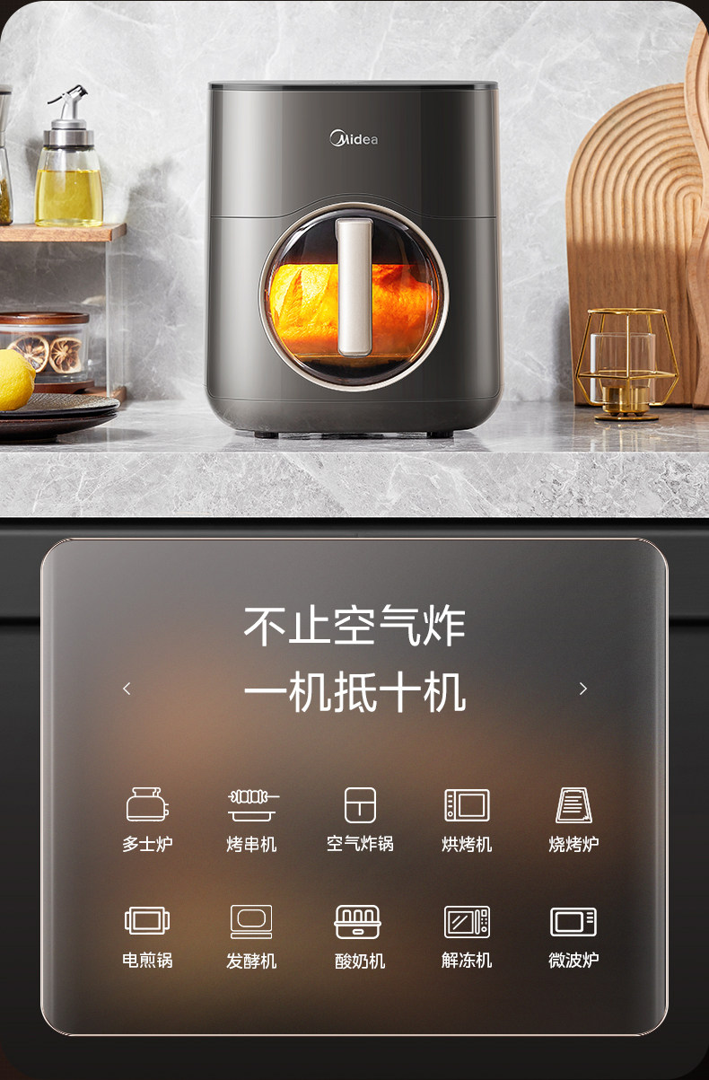 Midea Xiaoyan Air Fryer, New Model for Home Use, Large Capacity, All-In-One Automatic Electric Fryer, Visible Electric Oven