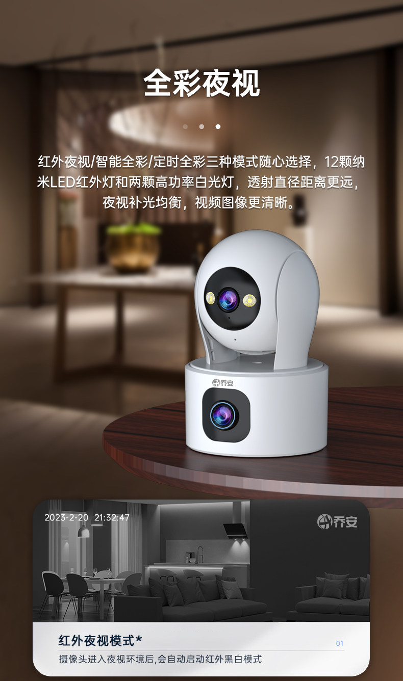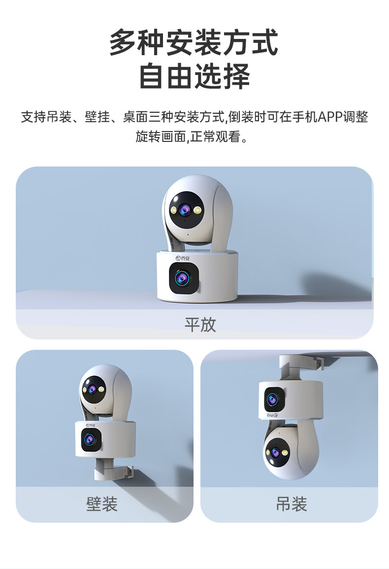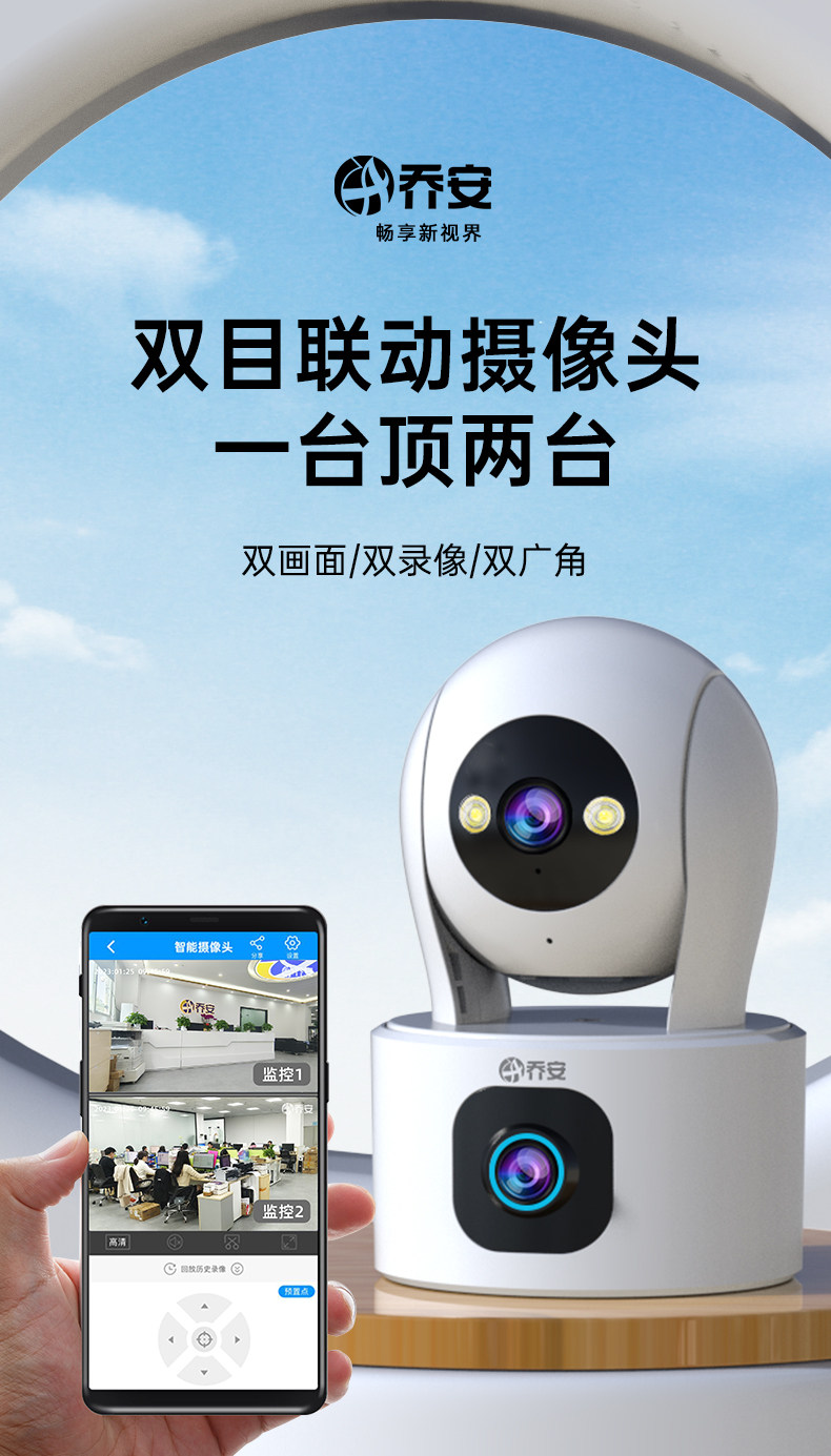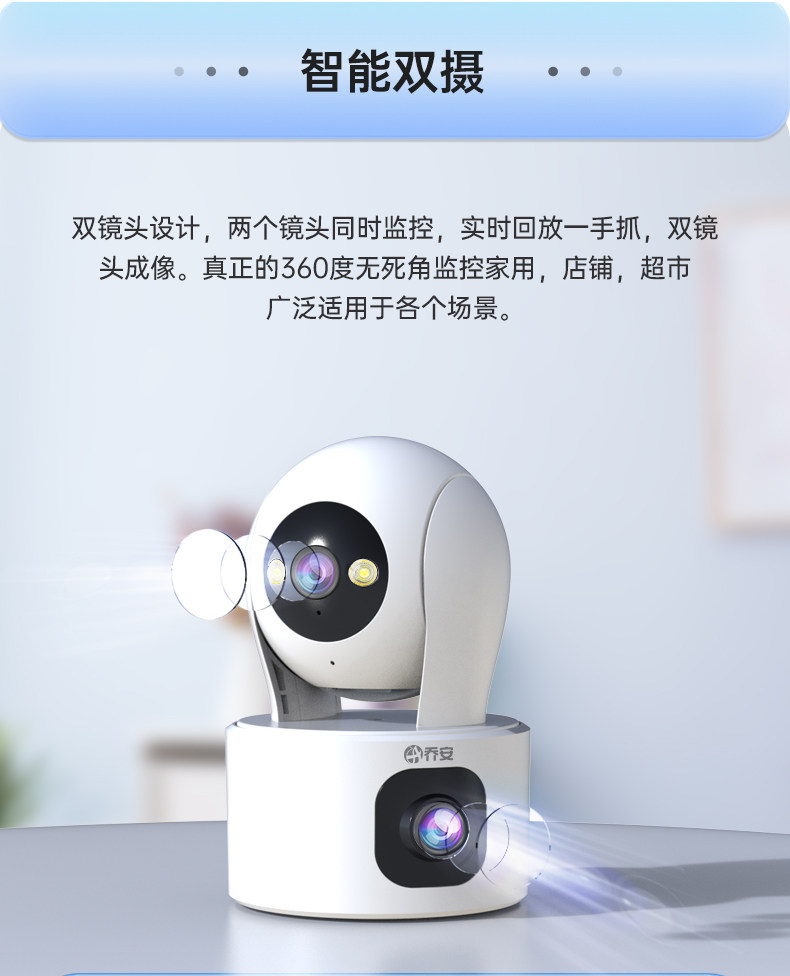 Qiaoan Dual-Camera Surveillance Wireless Wifi Network High-Definition Night Vision 360-Degree Panoramic Pan-Tilt Rotation Without Blind Spots
