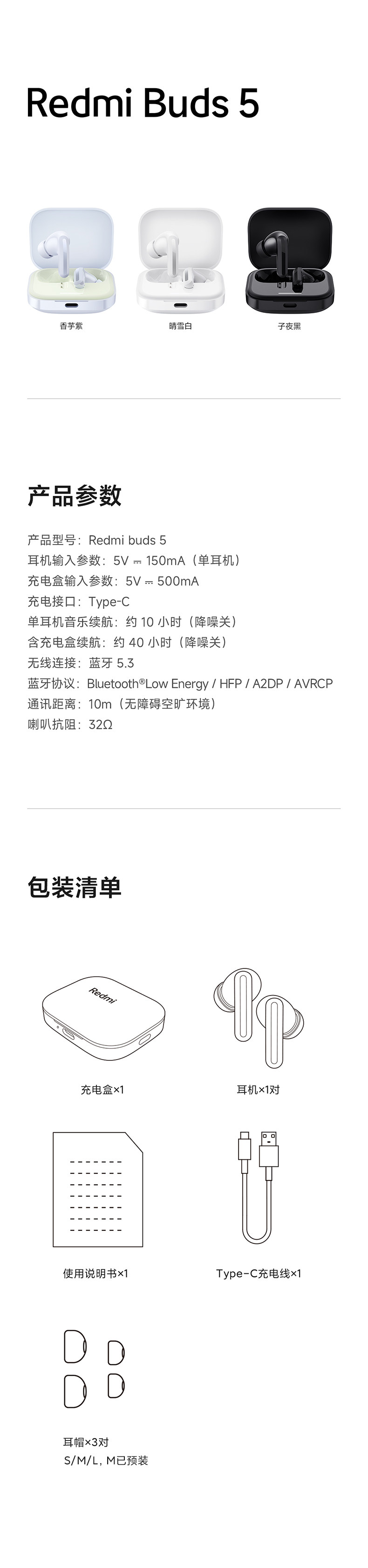| Color Classification | Redmi Buds 5 Midnight Black in Stock Delivered by Yto,Redmi Buds 5 Midnight Black in Stock ,Redmi Buds 5 Midnight Black + Black Protective Case + ,Redmi Buds 5 Midnight Black + Dark Blue Protective Case + ,Redmi Buds 5 Midnight Black + Dark Green Protective Case + ,Redmi Buds 5 Midnight Black + Red Protective Case + ,Redmi Buds 5 Midnight Black + Sky Blue Protective Case + ,Redmi Buds 5 Midnight Black + Pink Protective Case + ,Redmi Buds 5 Snow White - in Stock, Ships Via Yto Express,Redmi Buds 5 Snow White - in Stock & Ready to Ship ,Redmi Buds 5 Clear White + Black Protective Case + ,Redmi Buds 5 Clear White + Dark Blue Protective Case + ,Redmi Buds 5 Clear White + Dark Green Protective Case + ,Redmi Buds 5 Clear White + Red Protective Case + ,Redmi Buds 5 Clear Snow White + Sky Blue Protective Case + ,Redmi Buds 5 Clear White + Pink Protective Case + ,Redmi Buds 5 Taro Purple in Stock and Shipped by Yto,Redmi Buds 5 Taro Purple in Stock ,Redmi Buds 5 Taro Purple + Black Protective Case + ,Redmi Buds 5 Taro Purple + Dark Blue Protective Case + ,Redmi Buds 5 Taro Purple + Dark Green Protective Case + ,Redmi Buds 5 Taro Purple + Red Protective Case + ,Redmi Buds 5 Taro Purple + Sky Blue Protective Case + ,Redmi Buds 5 Taro Purple + Pink Protective Case + |