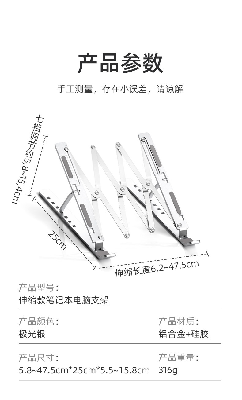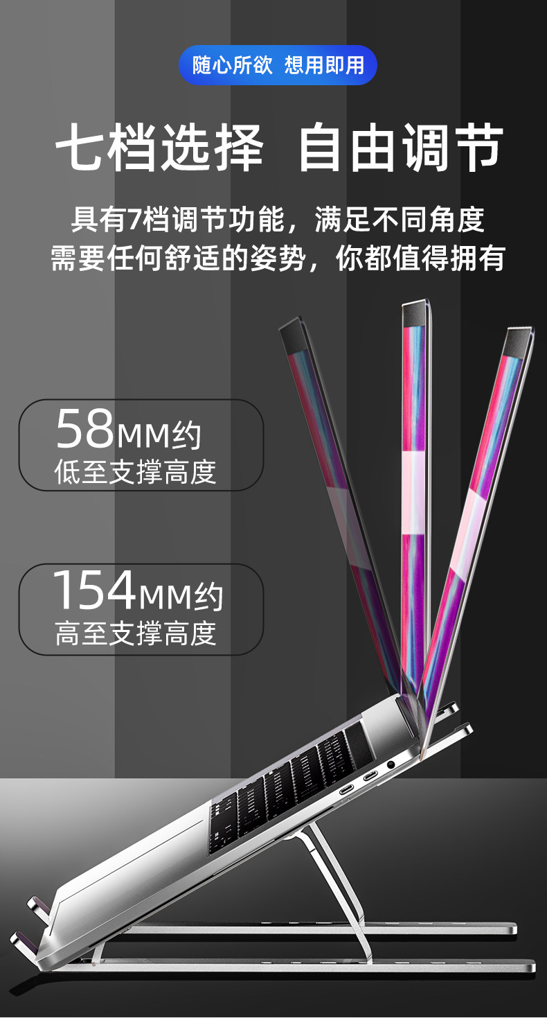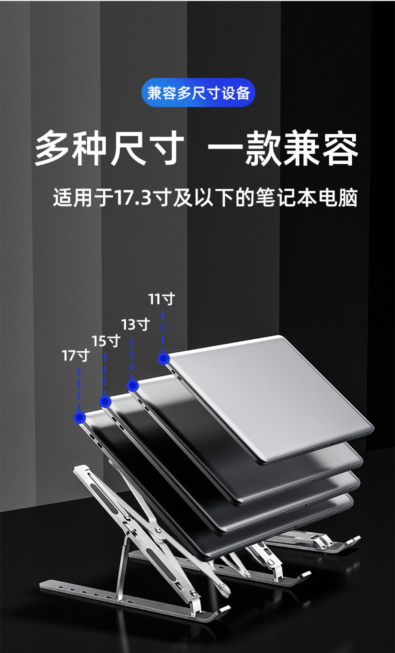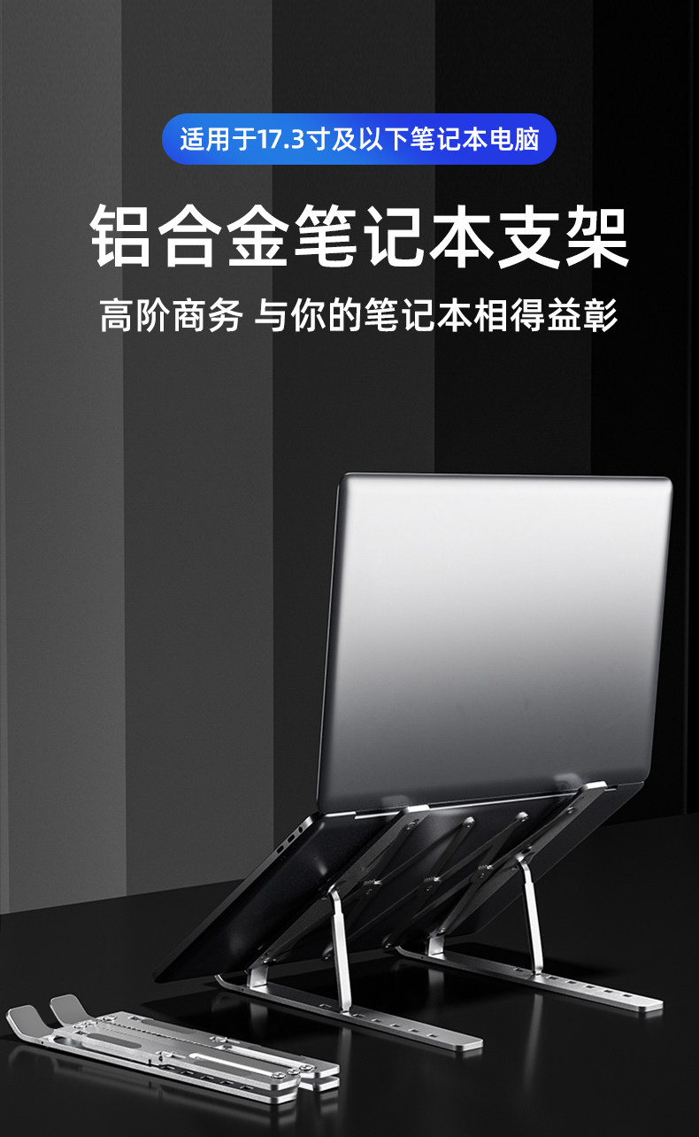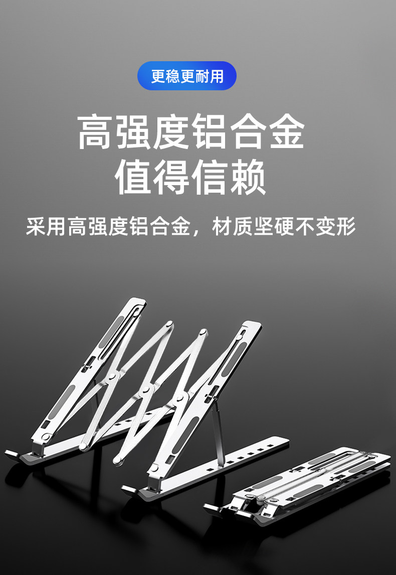 N6 Large-Size Laptop Stand Aluminum Alloy Computer Stand Standing Height-Adjustable Neck Support Portable Support Stand Foldable Stretchable Desktop Base Tablet Cooling Bracket