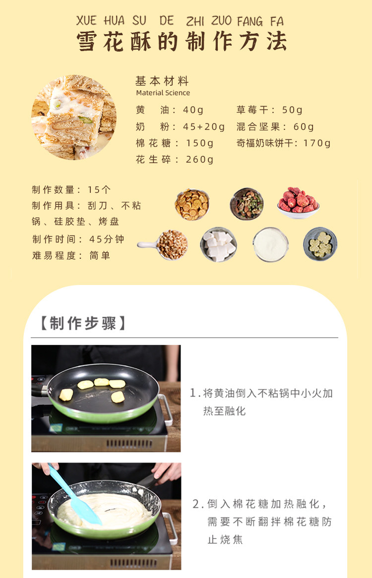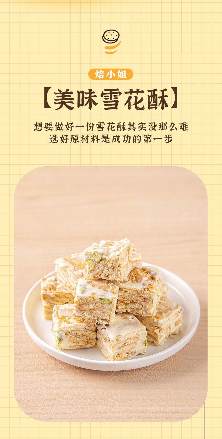 Special Ingredients for Snowflake Cookies: Xiaoqifu Japanese-Style Sea Salt Round Cookies, Button Marshmallows, Baking Gourd Nougat