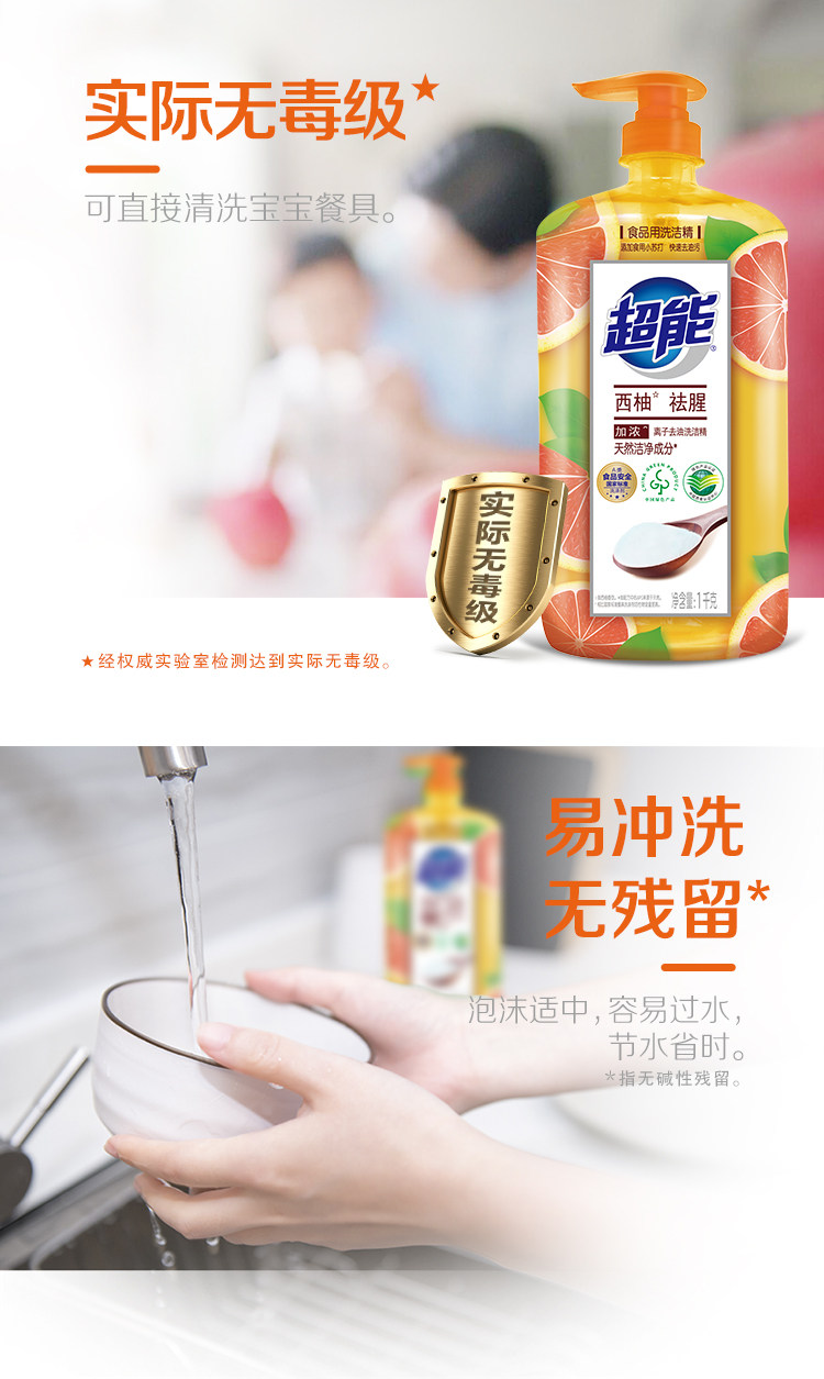 Super Powerful Grapefruit Dishwashing Liquid, Household Food-Grade Dishwashing Liquid, Fruit and Vegetable Cleaner, Small Bottle, Genuine Product, Official Flagship Store