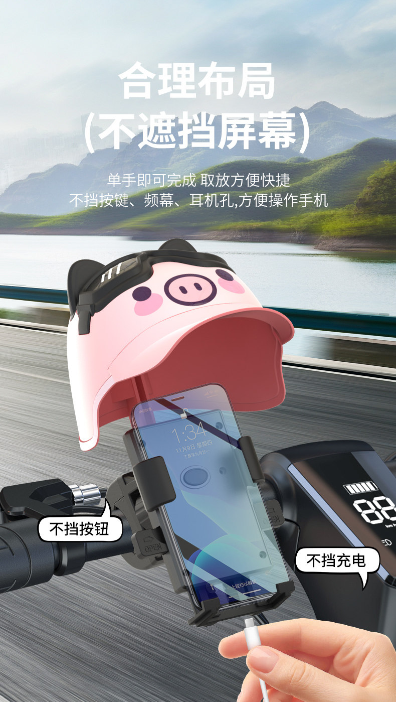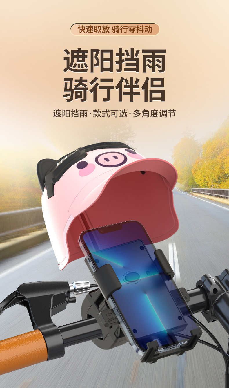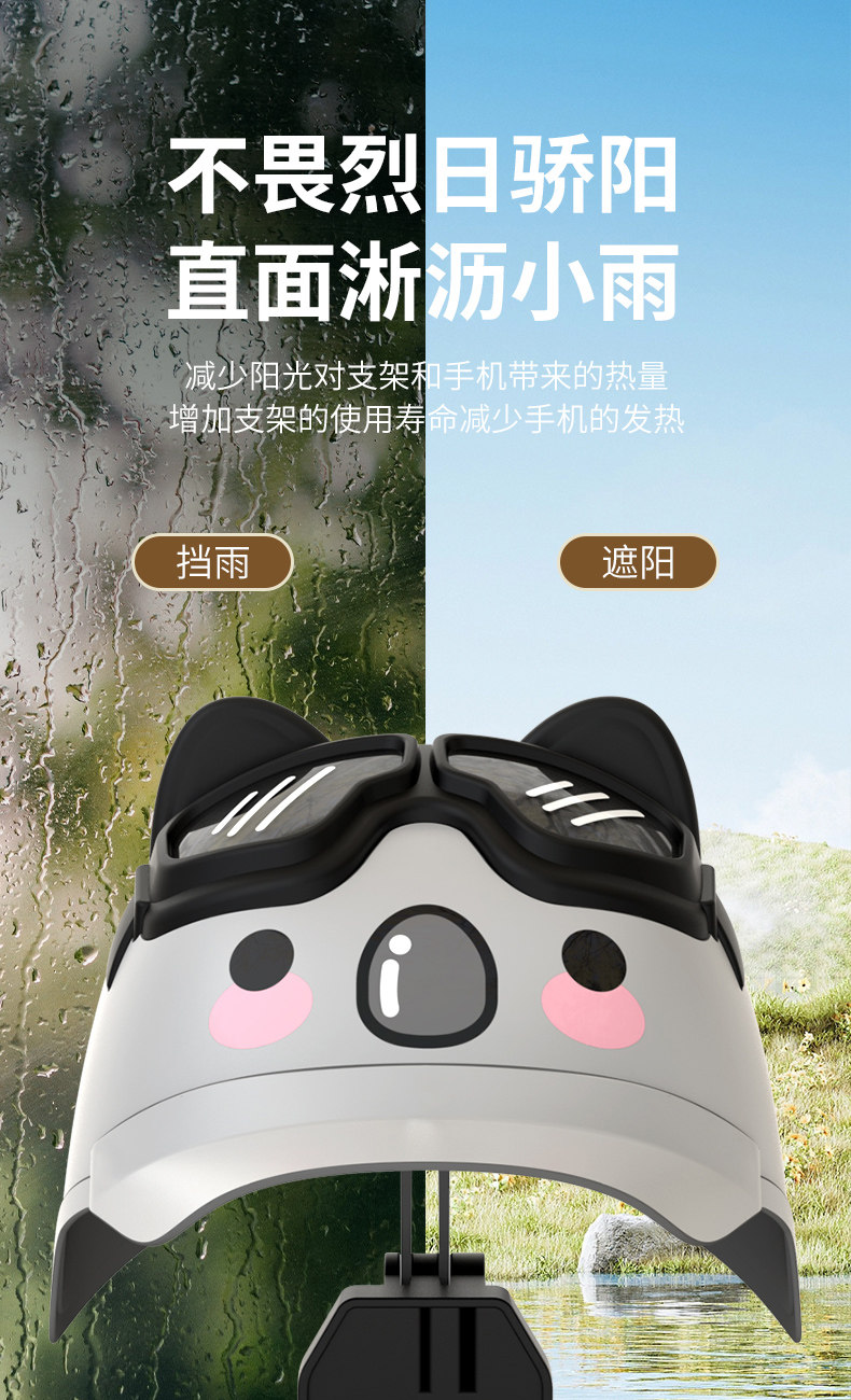Small Helmet Delivery Rider Motorcycle Phone Holder Electric Bike Bicycle Waterproof Sunshade Navigation Phone Holder Cute Creative Pig Panda Koala