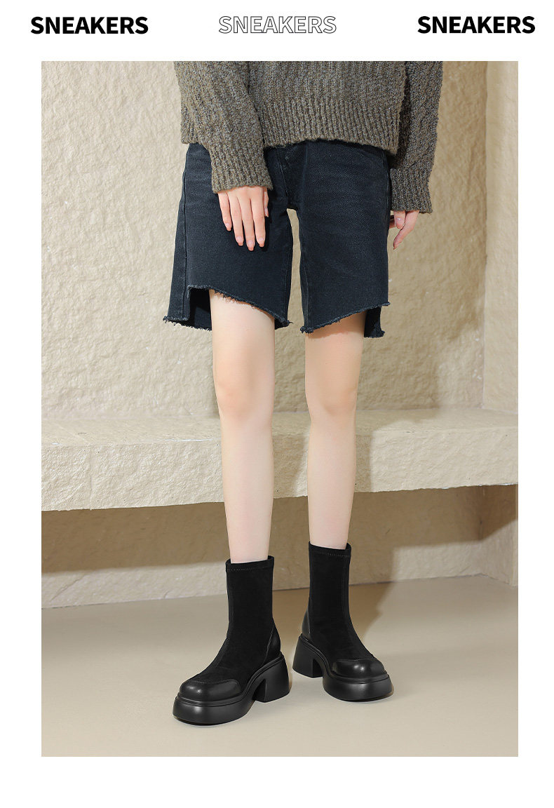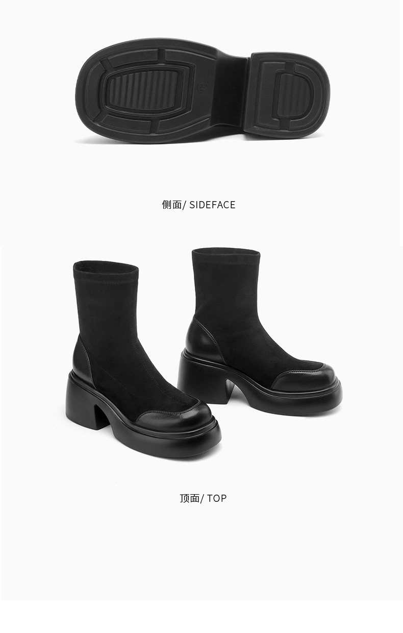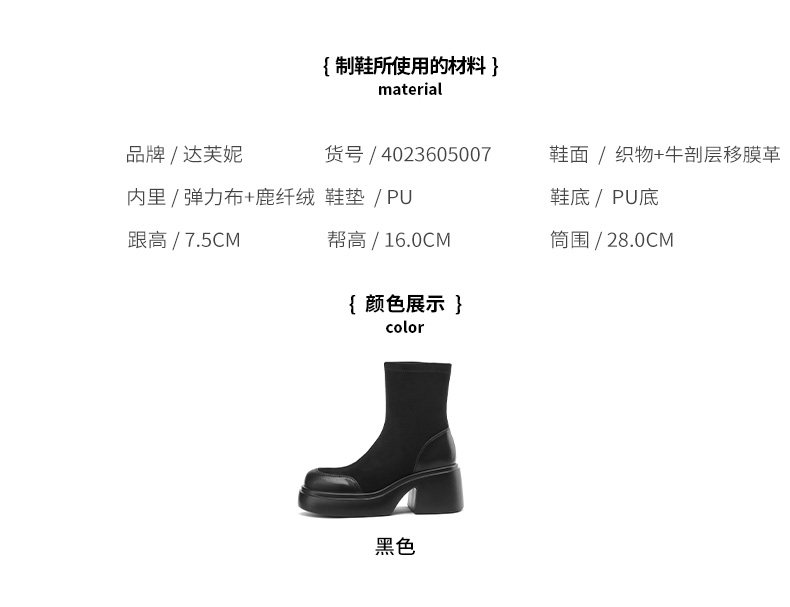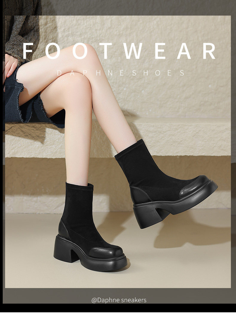 Daphne's Popular Coffee-Colored Short Boots 2025 Autumn New Style Height-Increasing Slimming Martin Boots Women's Thick-Soled Slim Boots