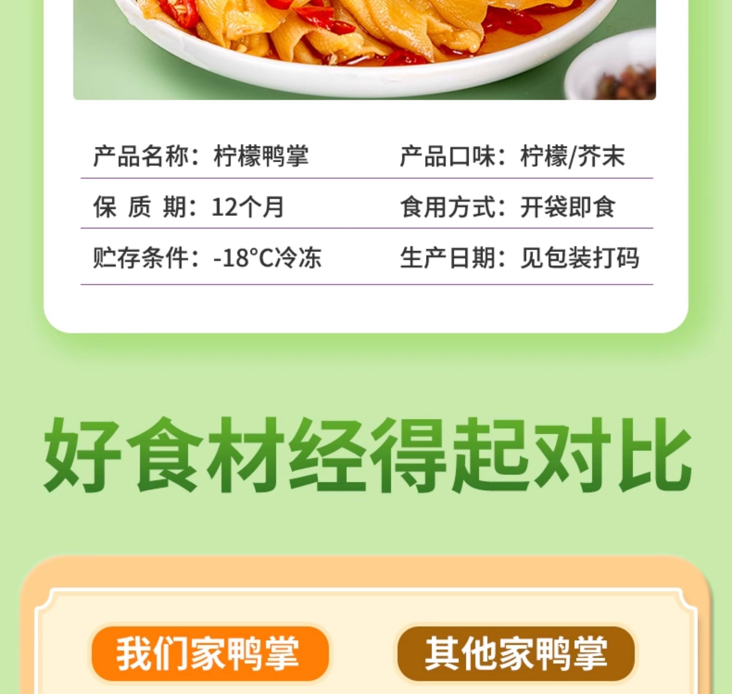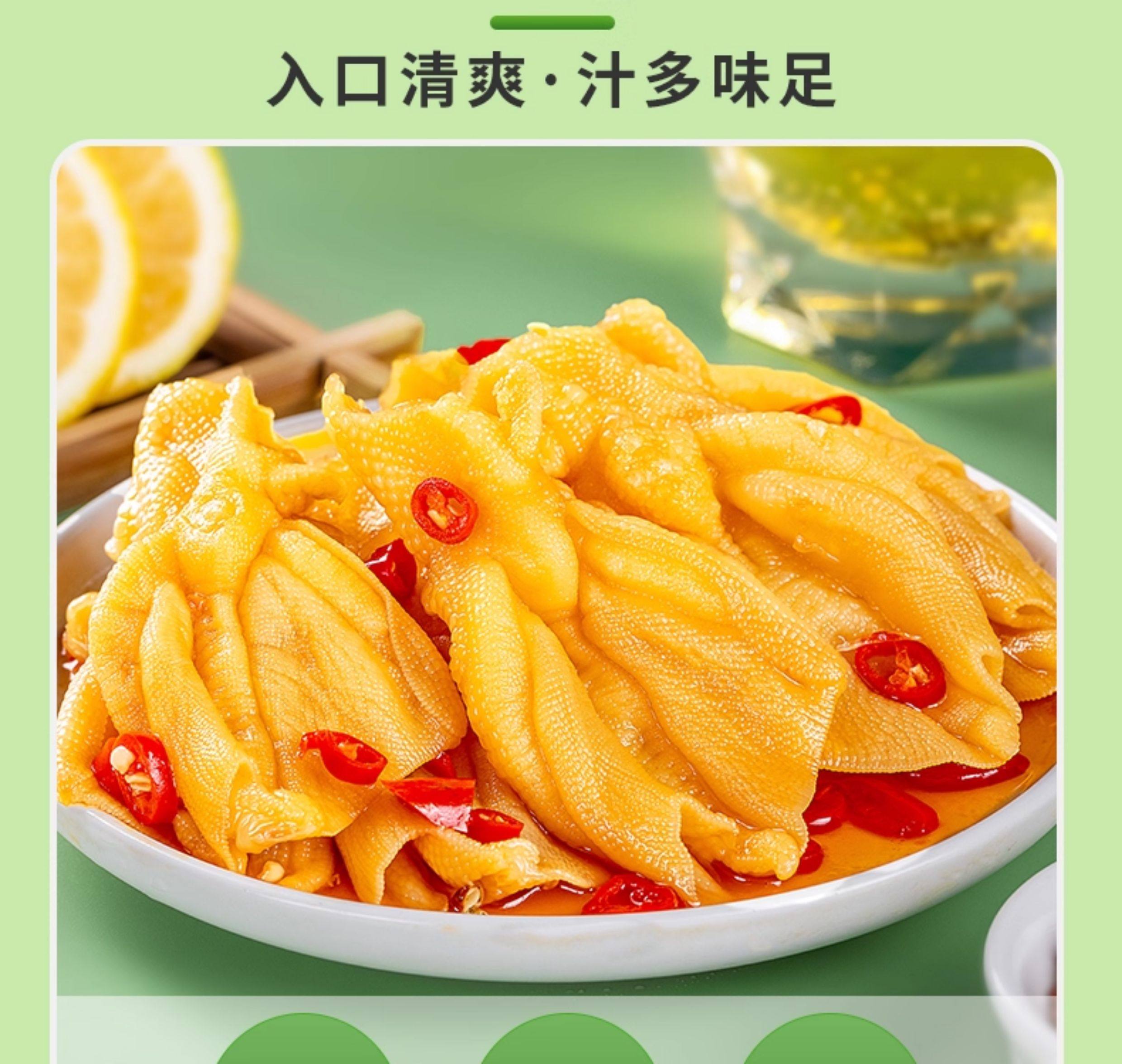 | Taste | Lemon Boneless Duck Feet 500g*1 Pack,Mustard Boneless Duck Feet 250g*2 Pack,Lemon Boneless Chicken Feet 200g*2 Pack,Lemon Boneless Duck Feet 250g*2 Pack,[Combined Pack] Mustard Duck Feet 250g + Lemon Duck Feet 250g,[Combined Pack] Lemon Chicken Feet 200g + Lemon Boneless Duck Feet 250g,Mustard Boneless Duck Feet 2500g*1 Pack,Lemon Boneless Duck Feet 2500g*1 Pack,Secret Recipe Boneless Duck Feet 2500g * 1 Pack,[Full Box] Lemon Boneless Duck Feet 500g*20 Packs,[Full Box] Lemon Boneless Duck Feet 250g*40 Packs,[Full Box] Mustard Boneless Duck Feet 250g*40 Packs,[Full Box] Lemon Boneless Duck Feet 2500g*4 Packs,[Full Box] Mustard Boneless Duck Feet 2500g*4 Packs,[Full Box] Secret Boneless Duck Feet 2500g*4 Packs |