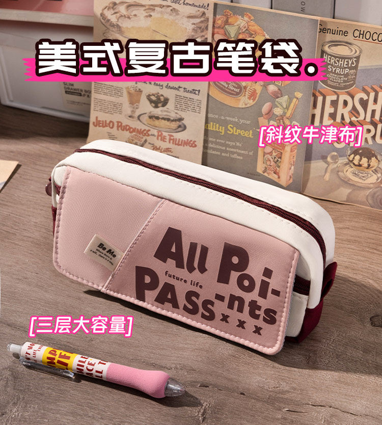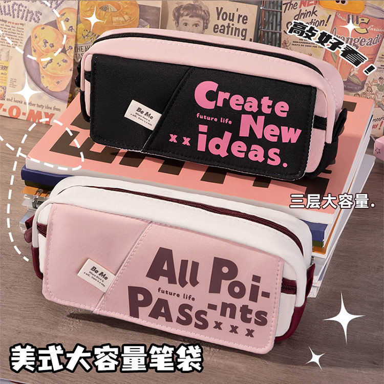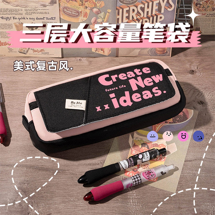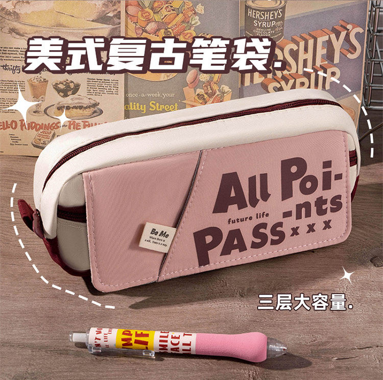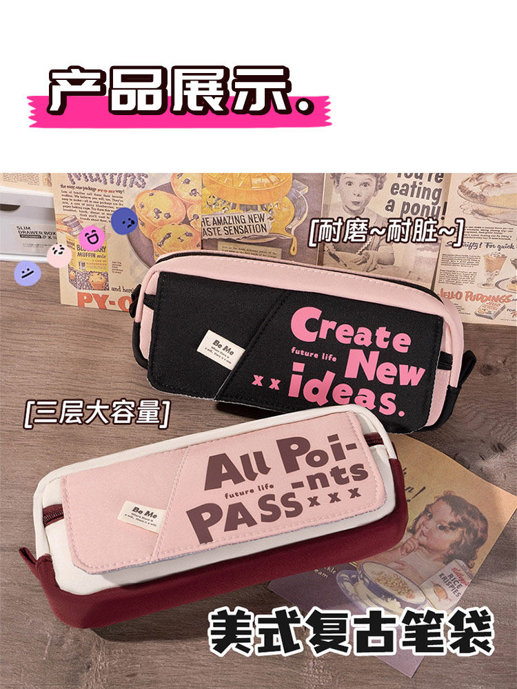 American Retro Pencil Case ins Large Capacity High-Quality Unique Student Pencil Stationery Box Non-Duplicate Design for Middle and High School Students