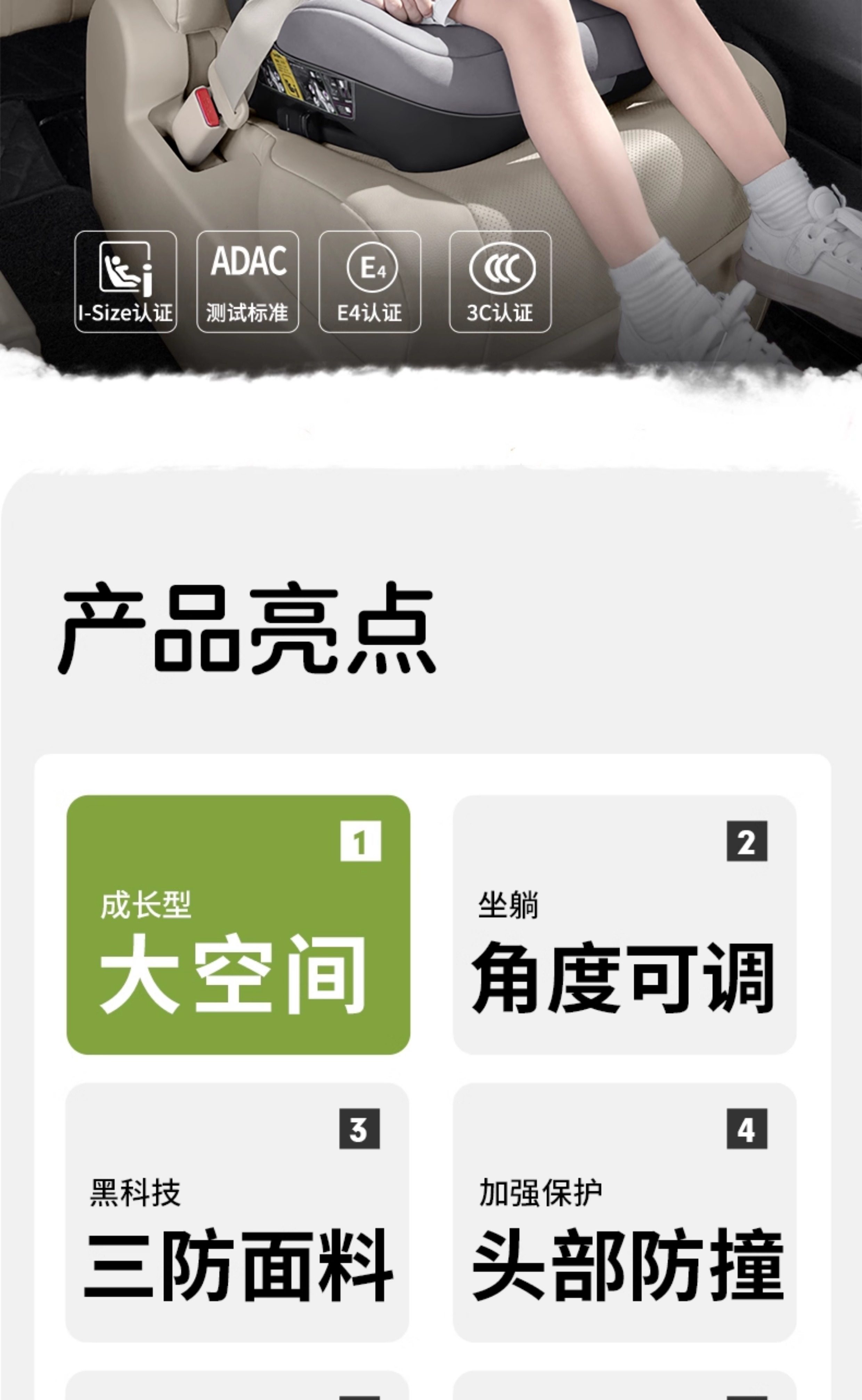 Besbet Growth-Size Kids Safety Seat 3-12 Years Old Baby and Older Kids Car Portable Seat I-Size