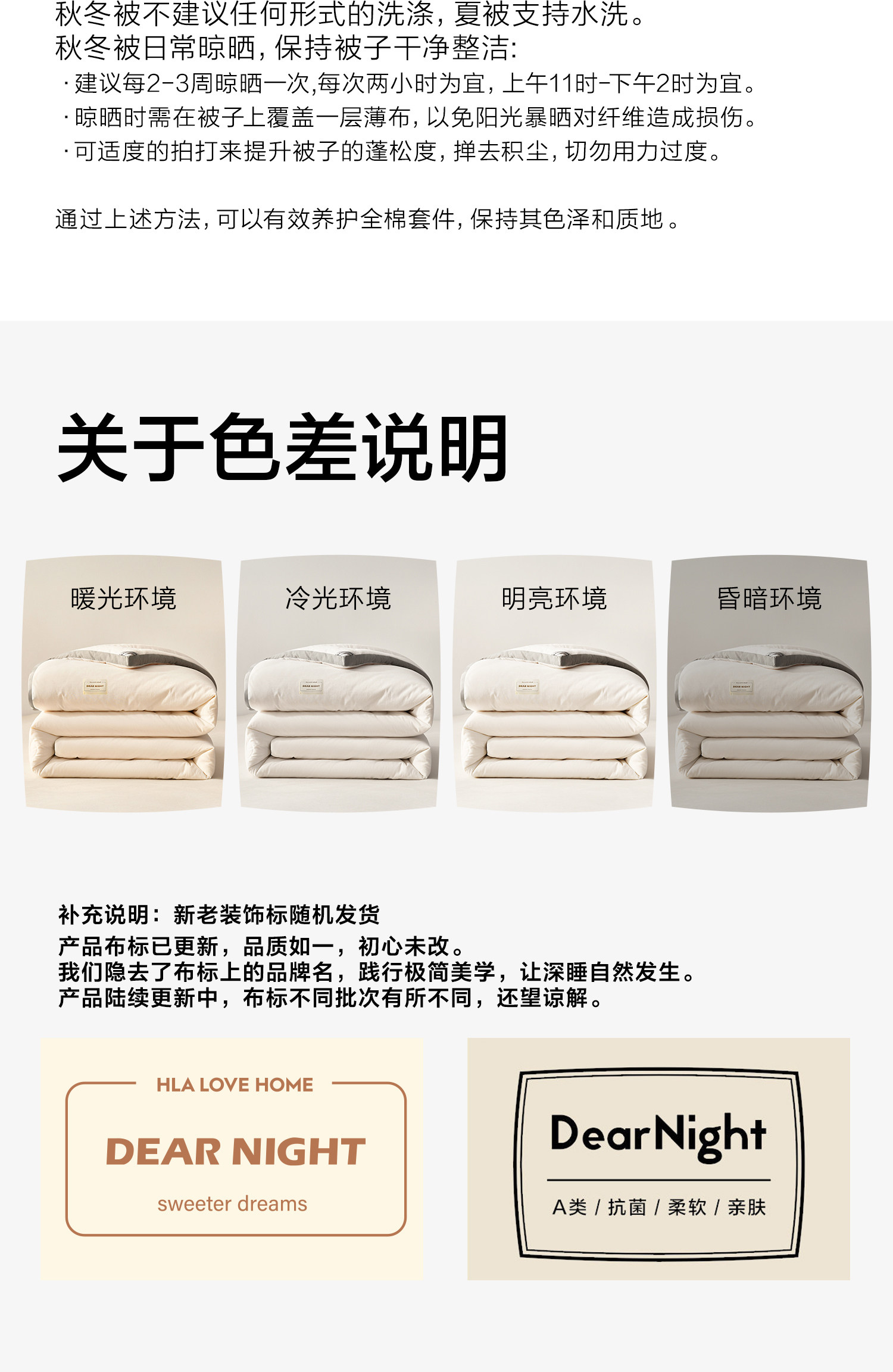 | Size | 150*200cm Summer Quilt [Suitable Room Temperature 25℃Above],150*200cm about 1.5kg Spring and Autumn Quilt [Suitable Room Temperature 20-25℃】,150*200cm about 2kg Spring and Autumn Quilt [Suitable for Room Temperature 15-25℃】,150*200cm about 2.5kg Winter Quilt [Suitable Room Temperature 5-15℃】,150*200cm about 3kg Thickened Winter Quilt [Suitable for Room Temperature 0-5℃】,150*200cm about 3.5kg Super Thick Winter Quilt [Suitable for Room Temperature 0°】,180*220cm Summer Quilt [Suitable Room Temperature 25℃Above],180*220cm about 2.5kg Spring and Autumn Quilt [Suitable for Room Temperature 15-25℃】,180*220cm about 3.5kg Winter Quilt [Suitable Room Temperature 0-5℃Following],180*220cm about 4kg Super Thick Winter Quilt [Suitable for Room Temperature 0°】,200*230cm Summer Quilt [Suitable Room Temperature 25℃Above],200*230cm about 2.5kg Spring and Autumn Quilt [Suitable Room Temperature 15-25℃】,200*230cm about 3kg Winter Quilt [Suitable Room Temperature 5-15℃】,200*230cm about 4kg Thickened Winter Quilt [Suitable for Room Temperature 0-5℃】,200*230cm about 5kg Super Thick Winter Quilt [Suitable for Room Temperature 0℃】,220*240cm Summer Quilt [Suitable Room Temperature 25℃Above],220*240cm about 3kg Spring and Autumn Quilt [Suitable Room Temperature 15-25℃】,220*240cm about 4kg Winter Quilt [Suitable for Room Temperature 0-10℃】,220*240cm about 5kg Super Thick Winter Quilt [Suitable for Room Temperature 0℃】 |
