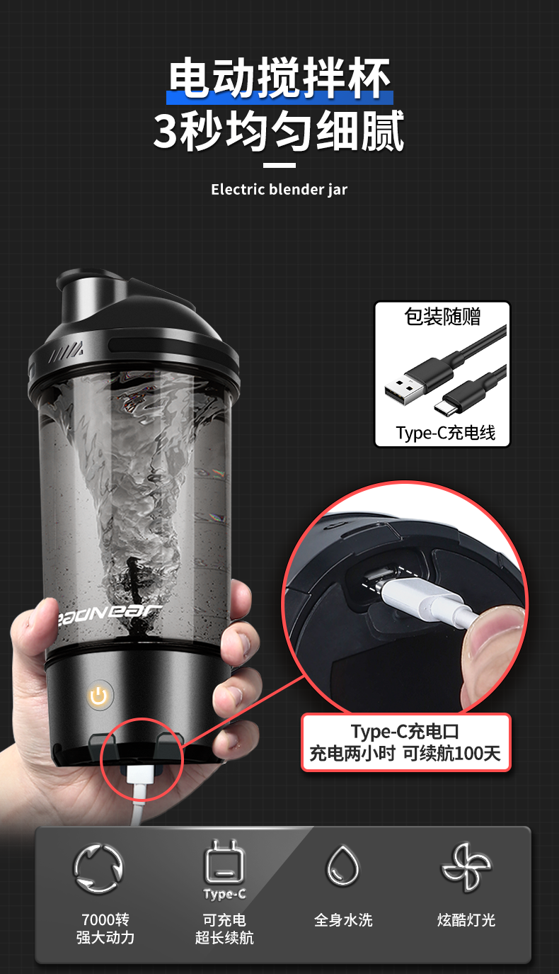 2024 New Automatic Mixing Cup for Men, Fitness Electric Mixing Cup, Rechargeable Portable Protein Powder Shaker Cup