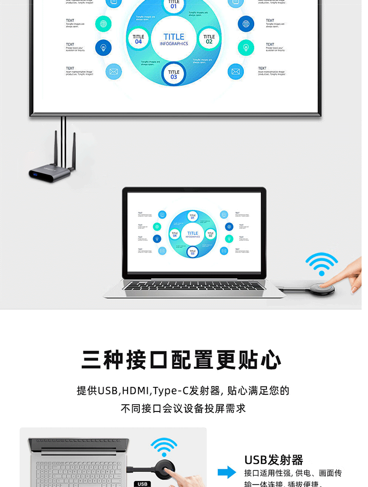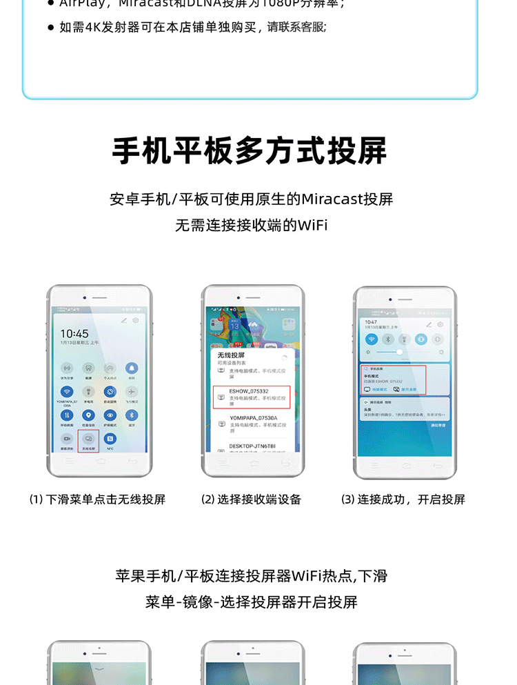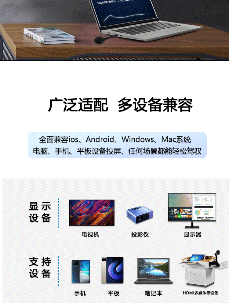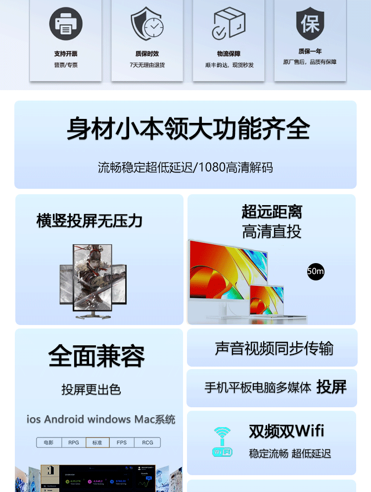 Qiji Wireless Screen Projector Connects Mobile Phones to Tv HDMI Transmitter 4K High-Definition Tablet Computer Same-Screen Conference Projector Display Suitable for Android Apple Huawei Mobile Phones and Tablets Screen Transfer Box