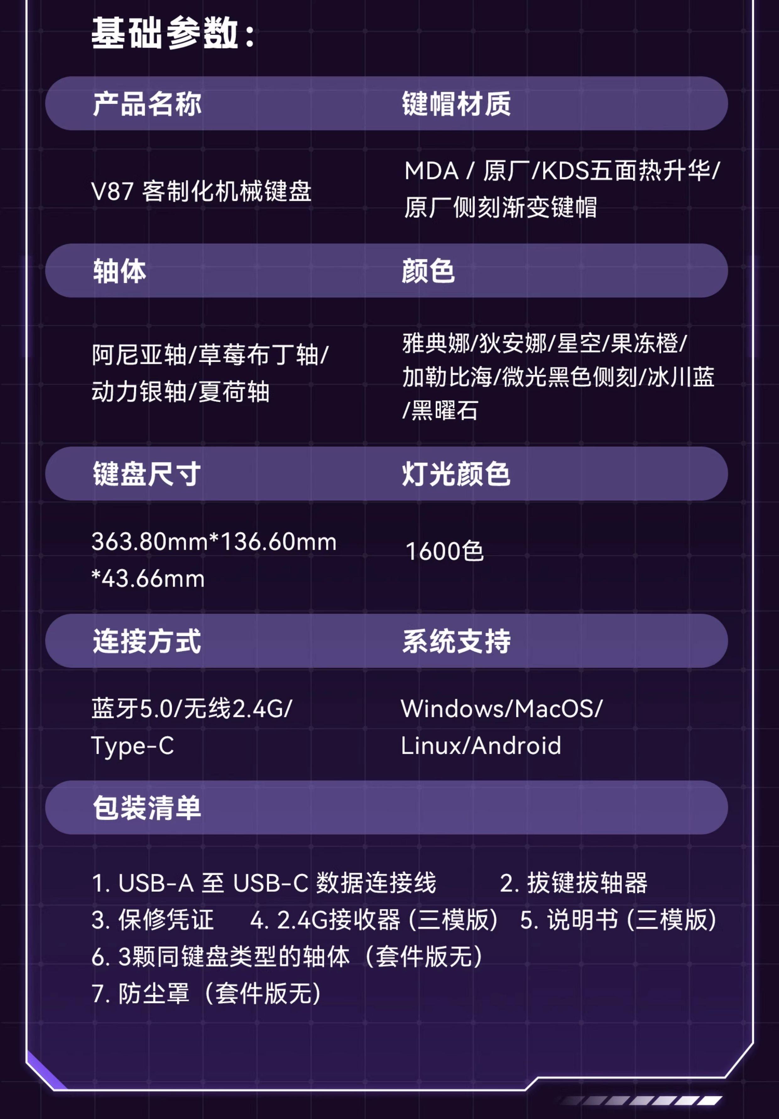 | Color Classification | V87Pro Aniya Axis Low Light Fog Transparent Side Engraving Rgb,V87 Power Silver Switch - Jelly Orange Rgb,V87 Power Silver Switch Caribbean Rgb,V87 Power Silver Switch Starry Sky Rgb,V87 Power Silver Switch, Low-Light, Frosted Side-Engraved Rgb,V87 Strawberry Pudding Switch - Jelly Orange Rgb,V87 Strawberry Pudding Axis Caribbean Rgb,V87 Strawberry Pudding Switch - Starry Sky Rgb,V87 Summer Lotus Axis Side Engraving Glacier Blue Rgb,V87 Summer Lotus Axis Side Engraving Obsidian Rgb,V87Pro Aniya Axis Diana Rgb,V87Pro Aniya Axis Athena Rgb |
