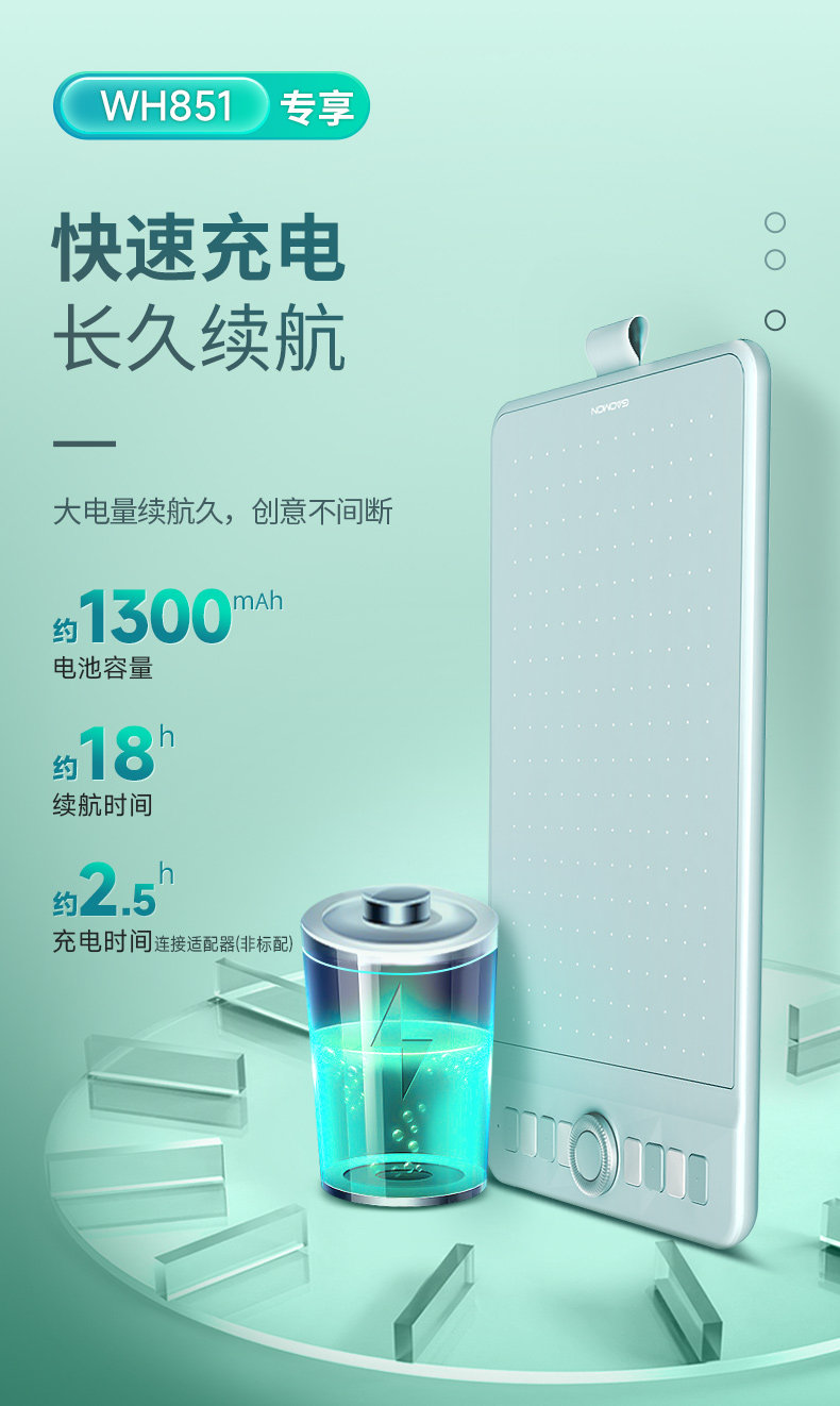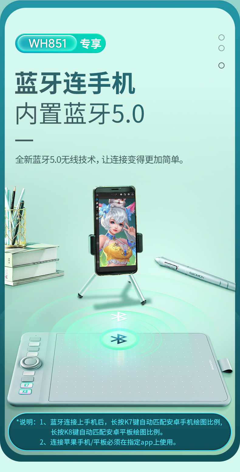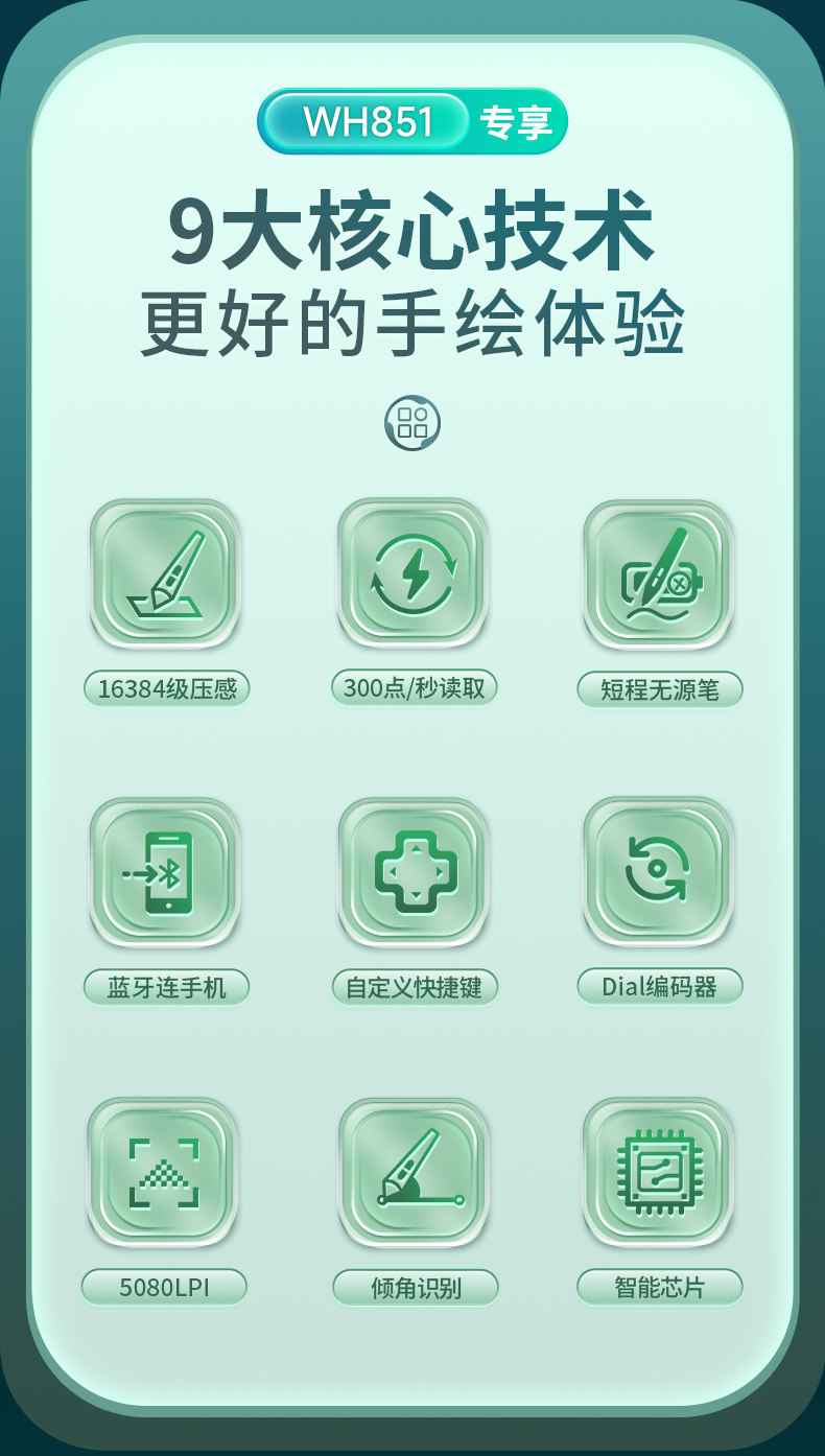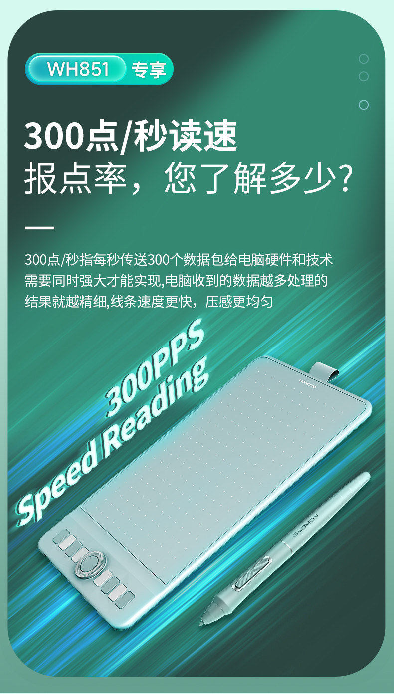 Gaoman Wh851 Wireless Digital Tablet 16K Pressure Sensitivity Computer Drawing Tablet Can Be Connected to Mobile Phone Hand-Drawing Tablet
