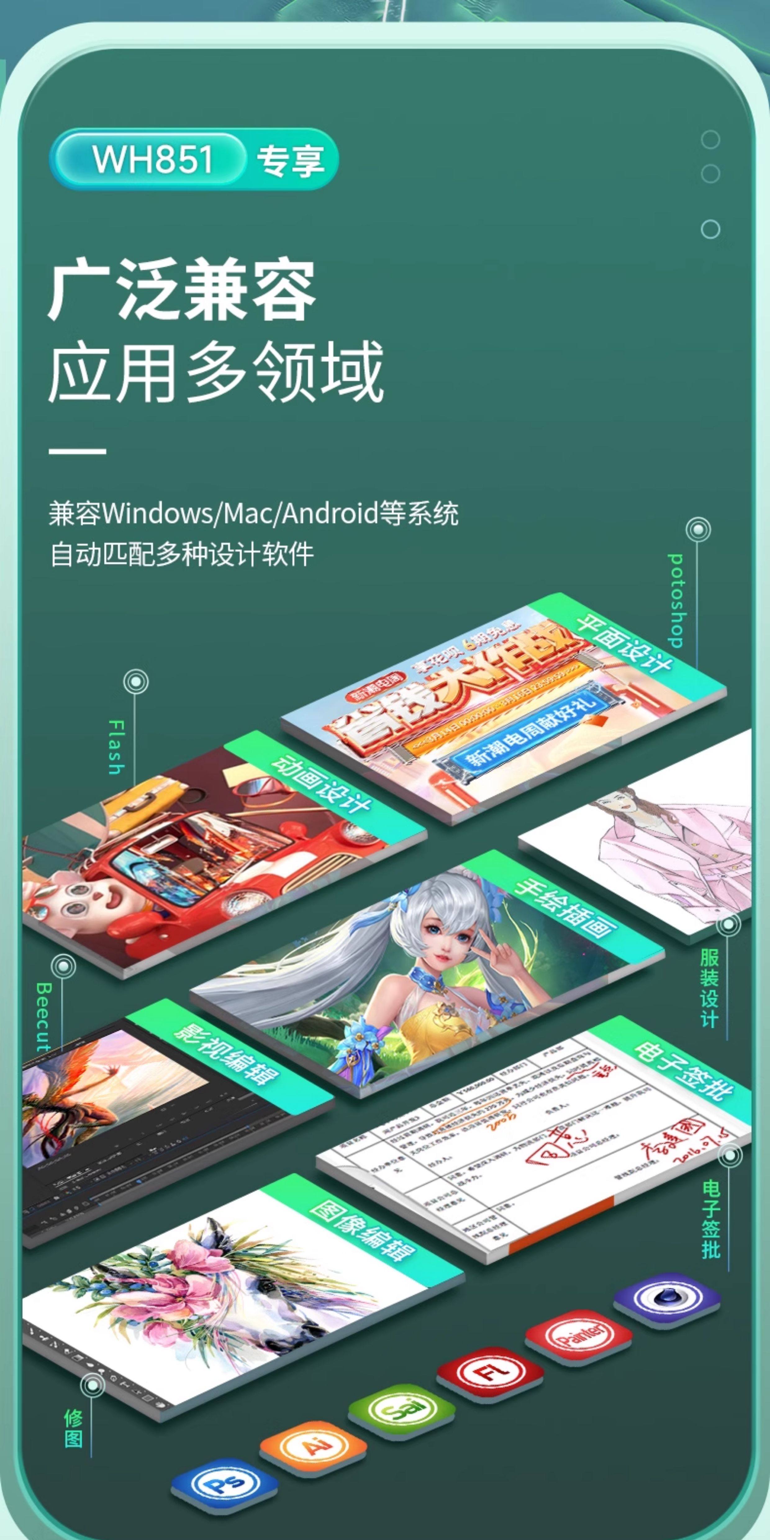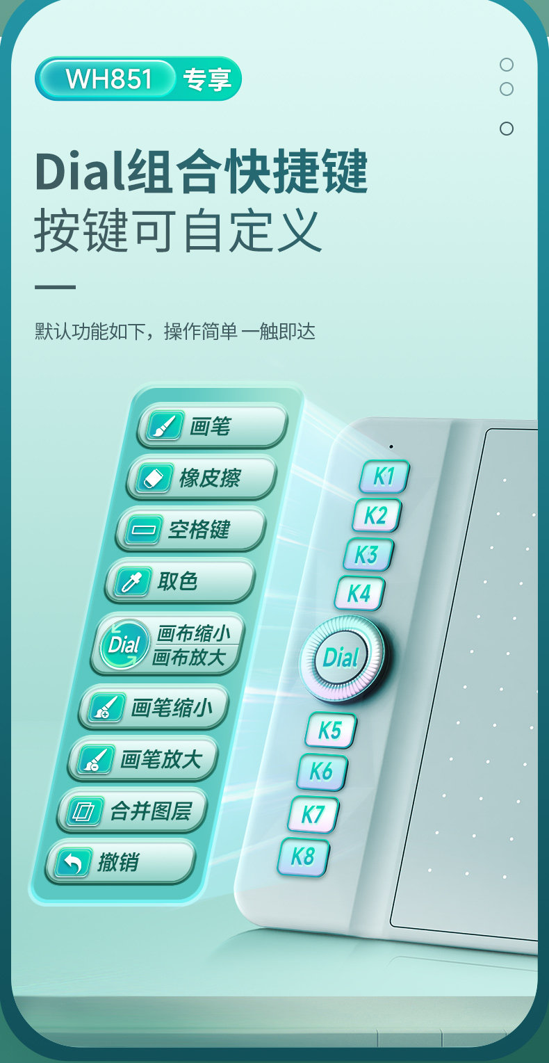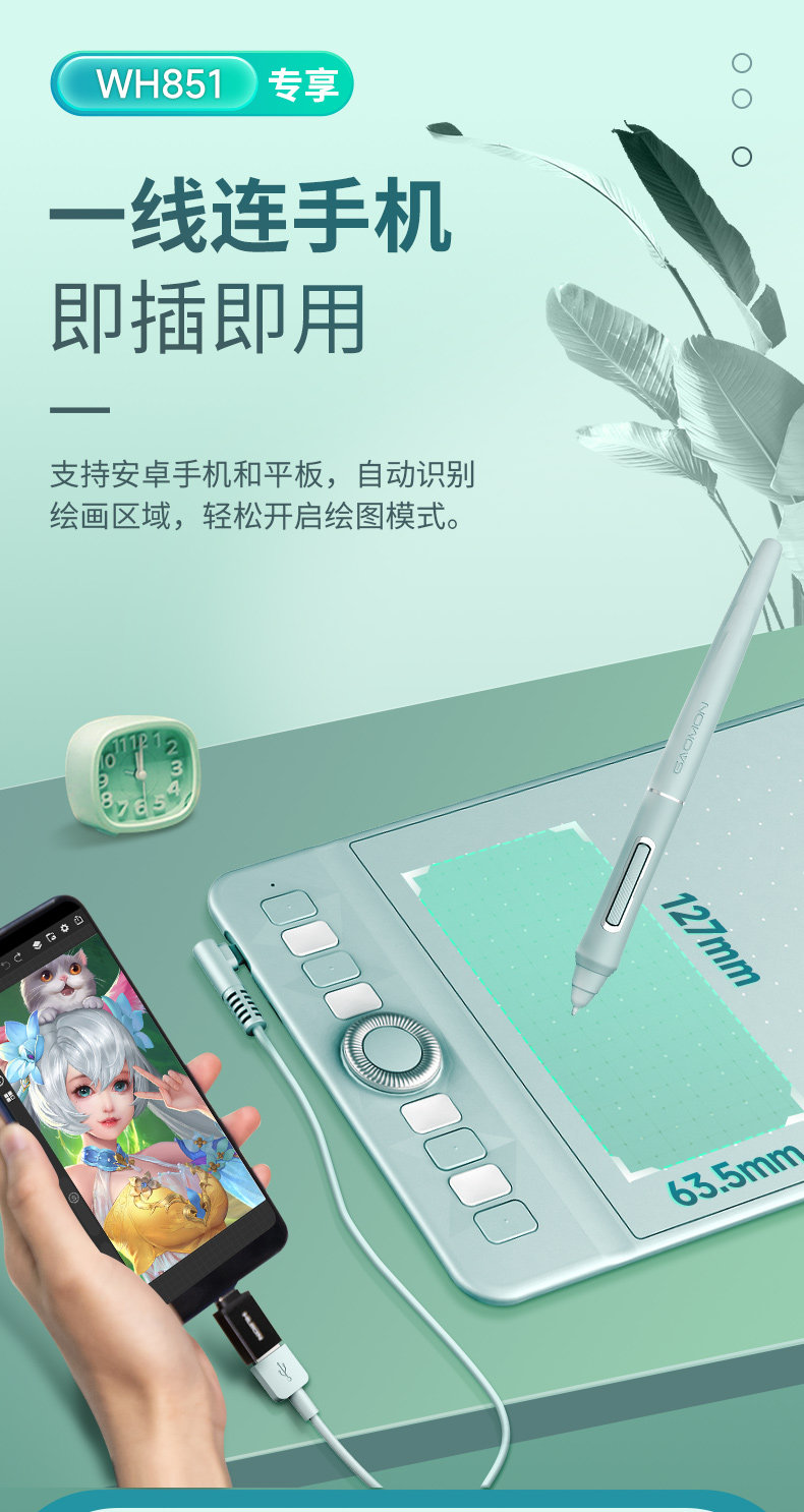 Gaoman Wh851 Wireless Digital Tablet 16K Pressure Sensitivity Computer Drawing Tablet Can Be Connected to Mobile Phone Hand-Drawing Tablet