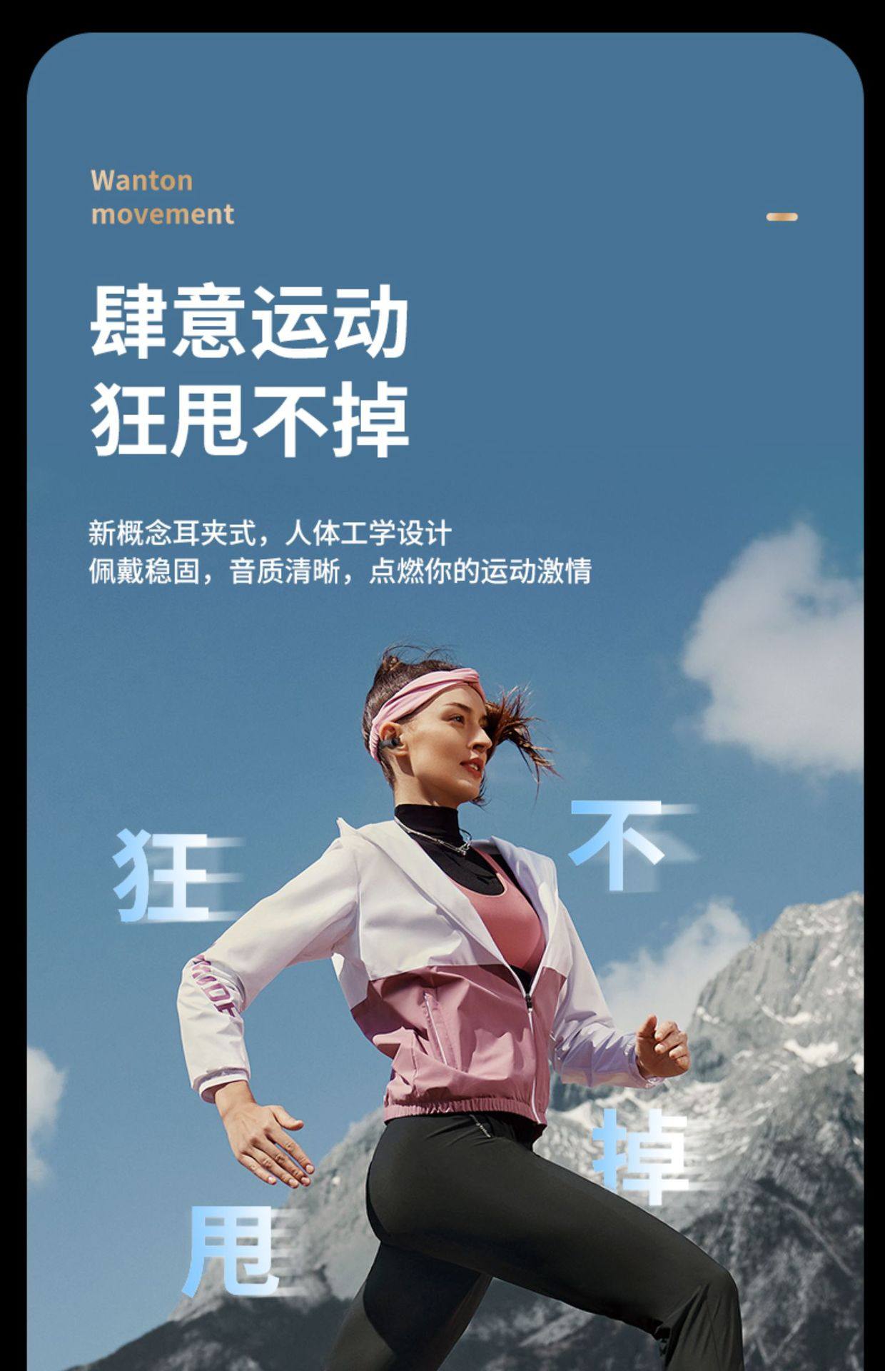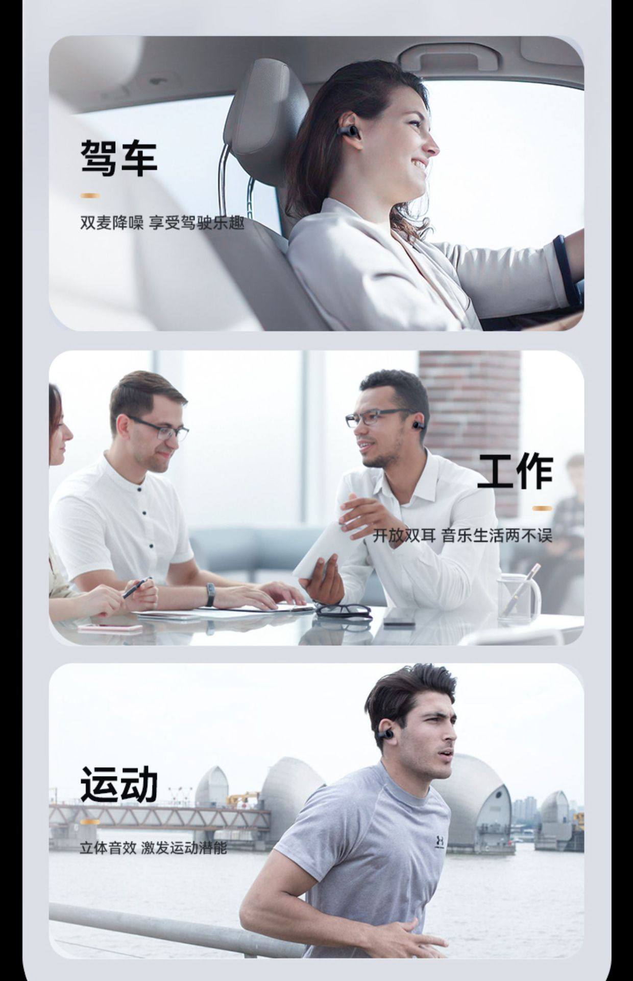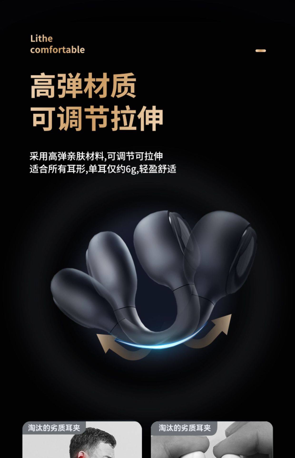 Non-In-Ear Bone Conduction Bluetooth Headphones, True Wireless Sports Ear Clip Type, Ultra-Long Battery Life, Over-Ear, Suitable for Both Men and Women