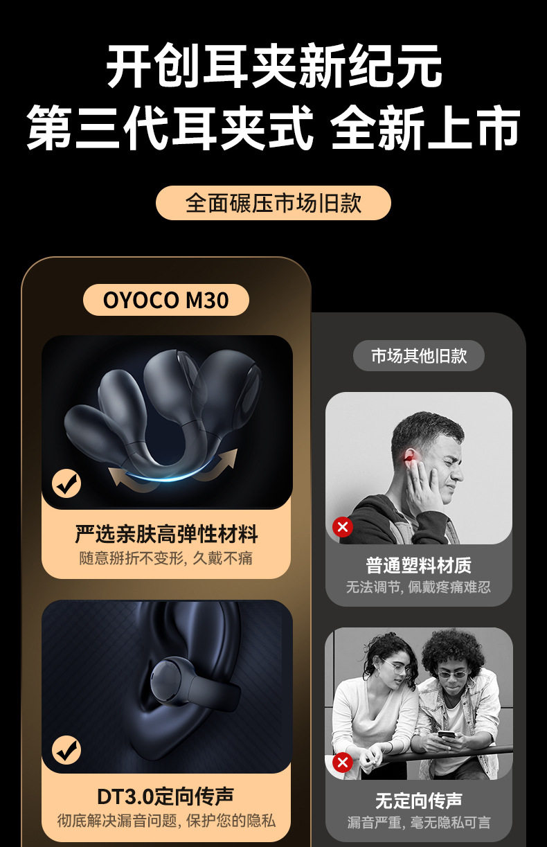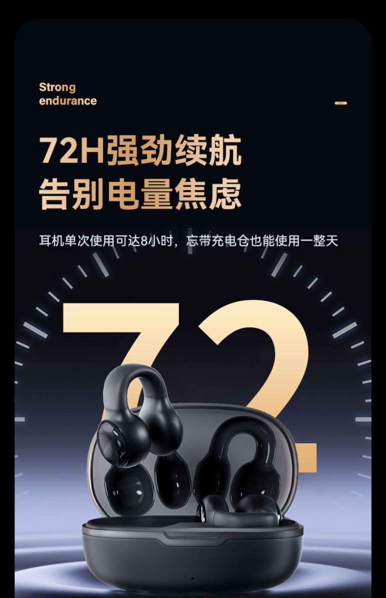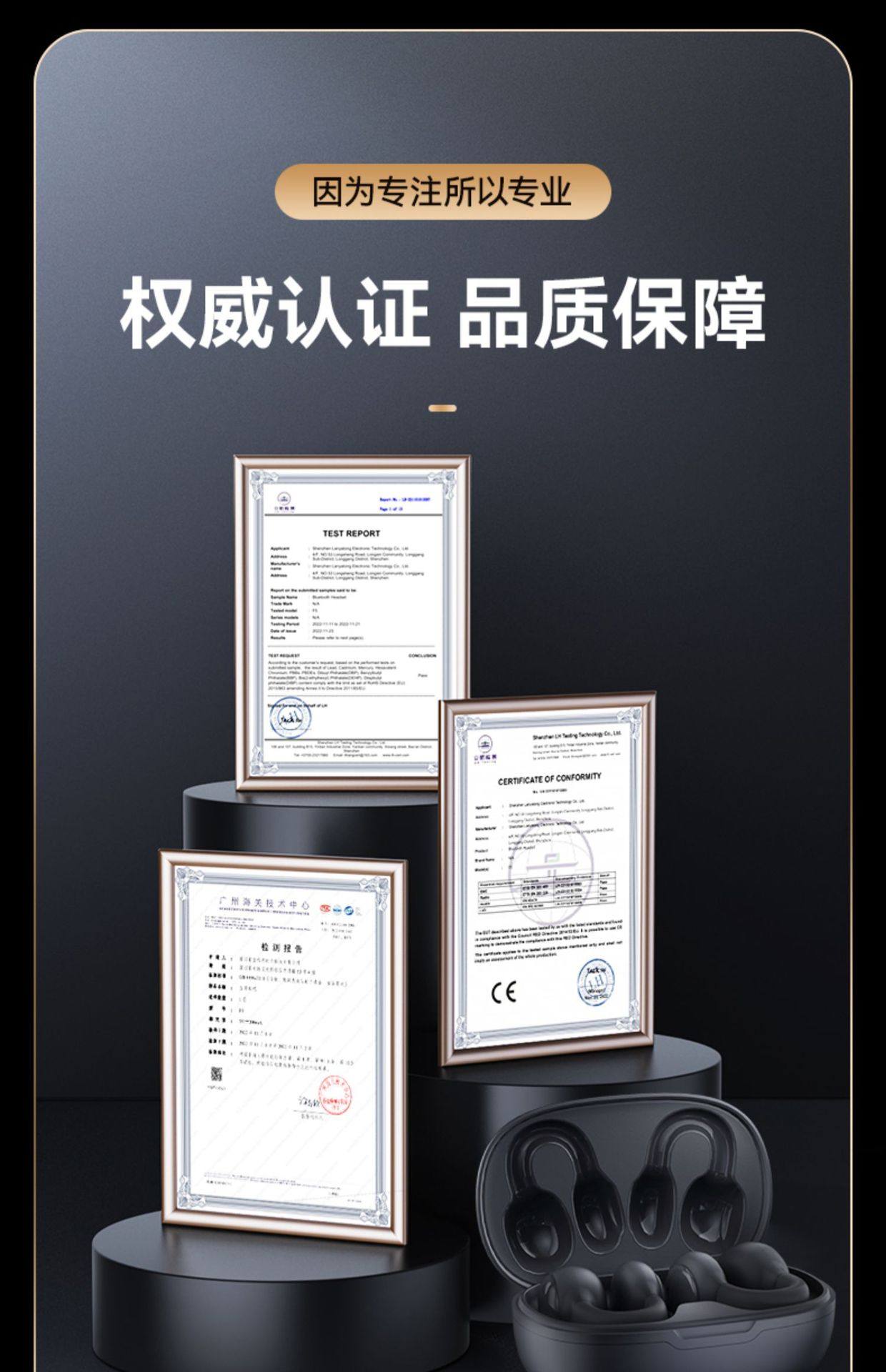 Non-In-Ear Bone Conduction Bluetooth Headphones, True Wireless Sports Ear Clip Type, Ultra-Long Battery Life, Over-Ear, Suitable for Both Men and Women