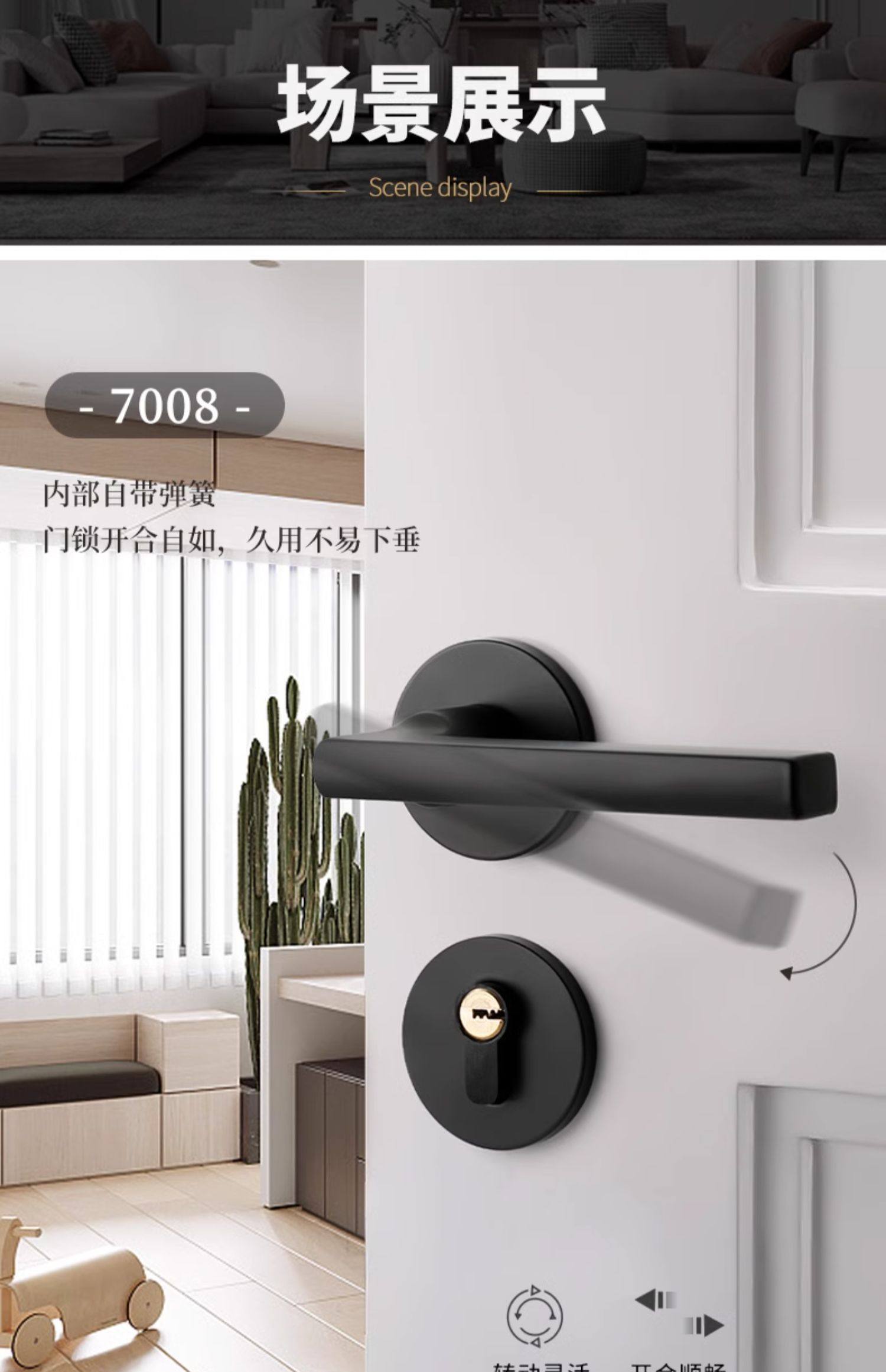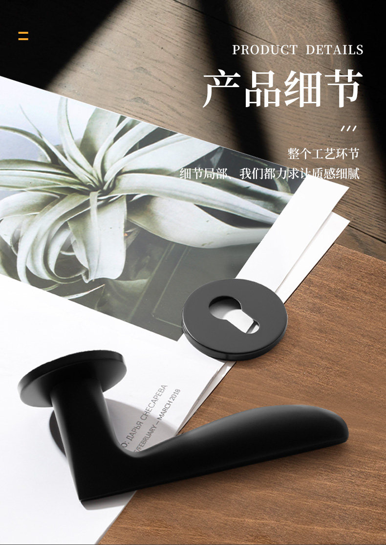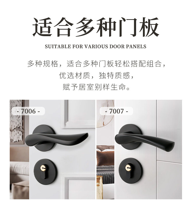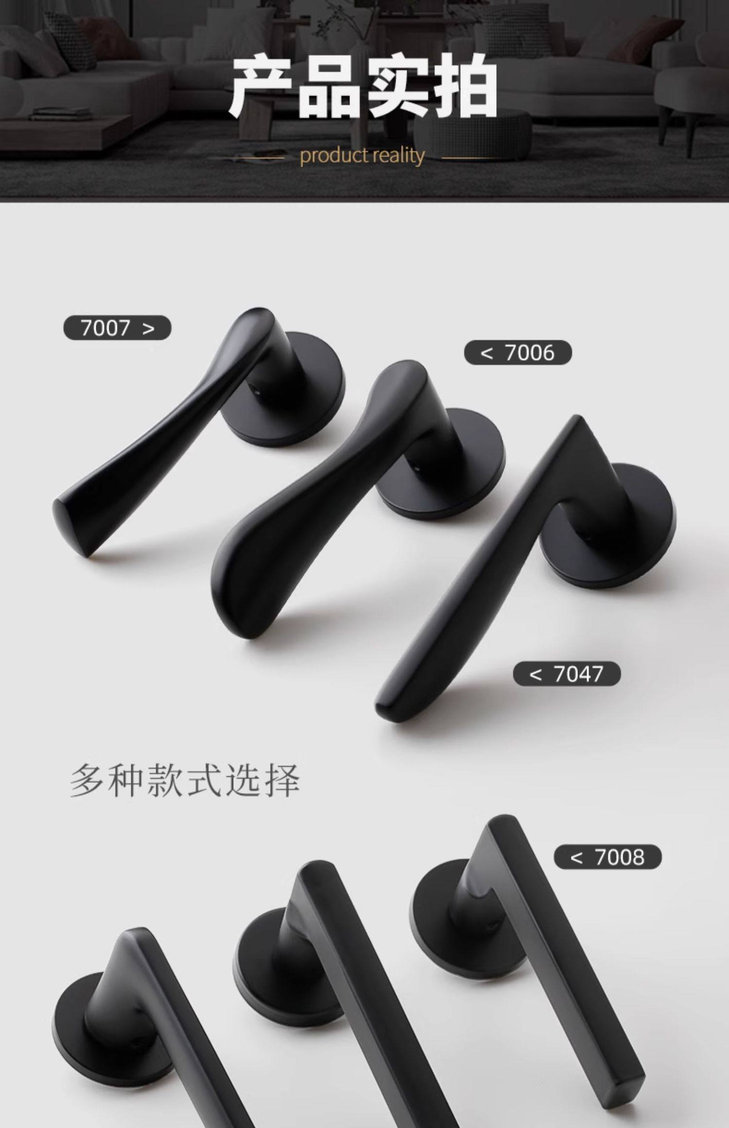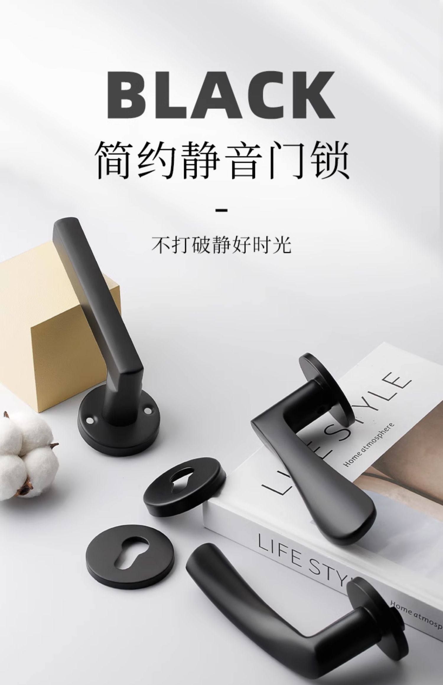 Black Modern Minimalist Indoor Home Door Lock Bedroom Solid Wood Door Split Lock Room Silent Lock Universal Lock