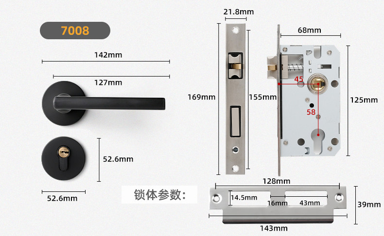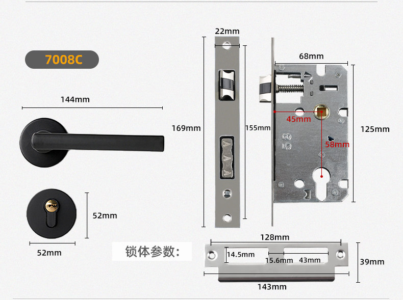 | Latch Bolt Material | 201 Stainless Steel + Copper |