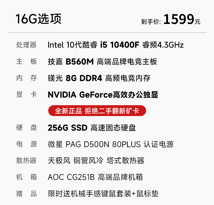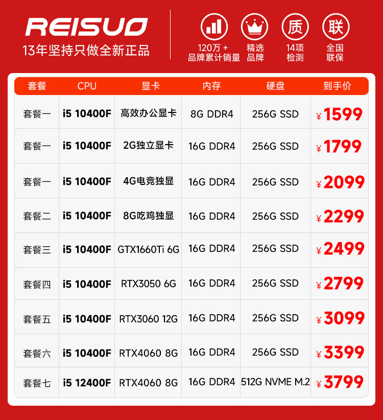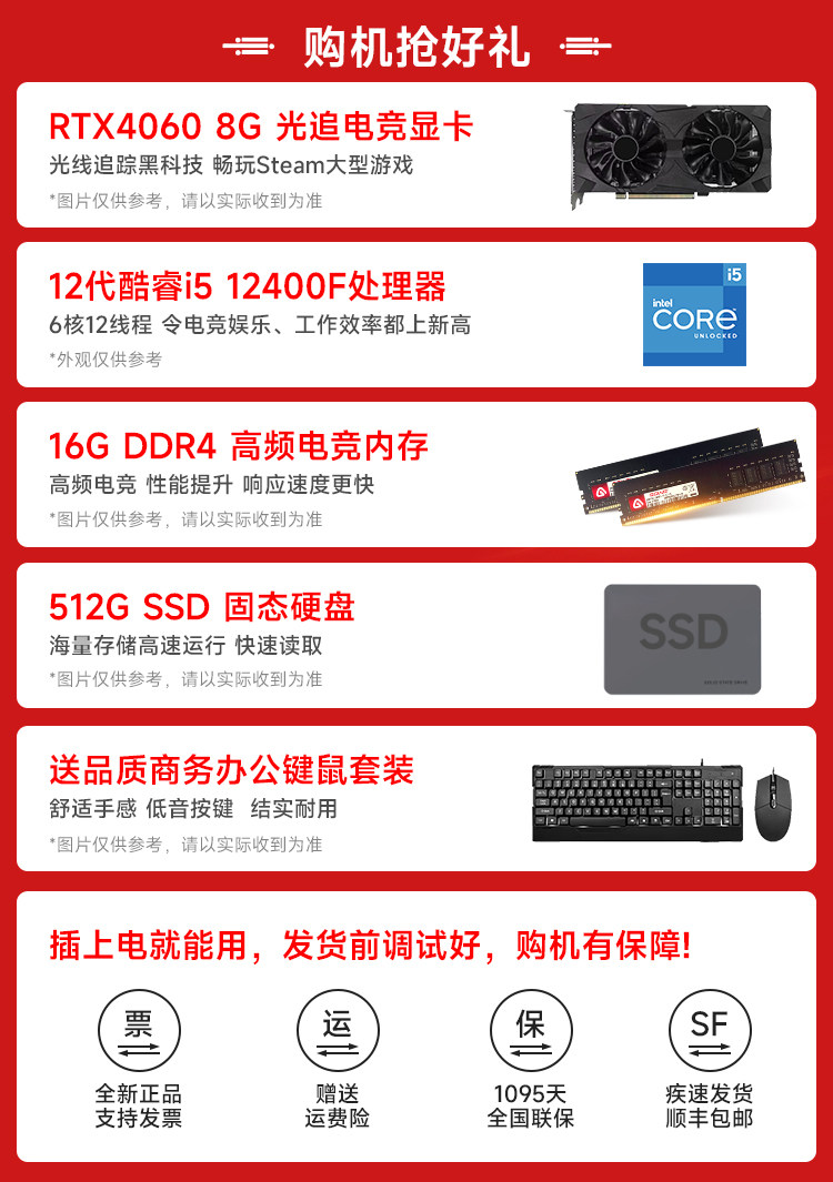 Msi I5 10400F/12400F/Rtx3050/3060Ti/4060 Desktop Computer for Gaming, Office, Design, DIY Assembly, Business Computer Host