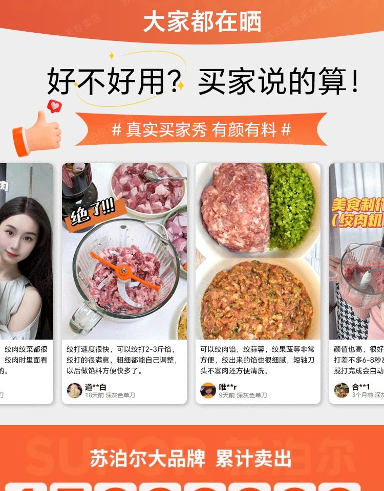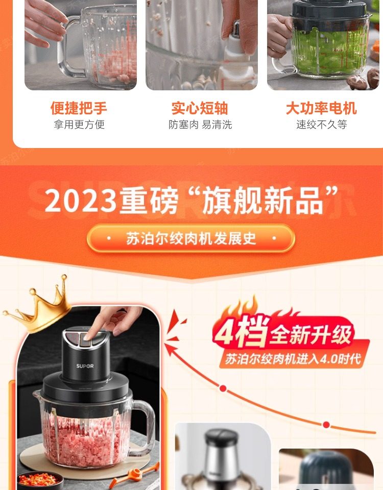 Supor Meat Grinder for Home Use, Fully Automatic Electric Small Multifunctional Blender for Mincing Meat and Making Baby Food, 2025 New Model