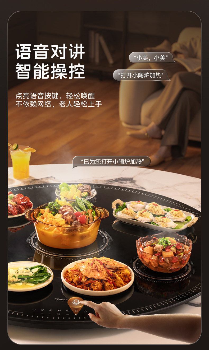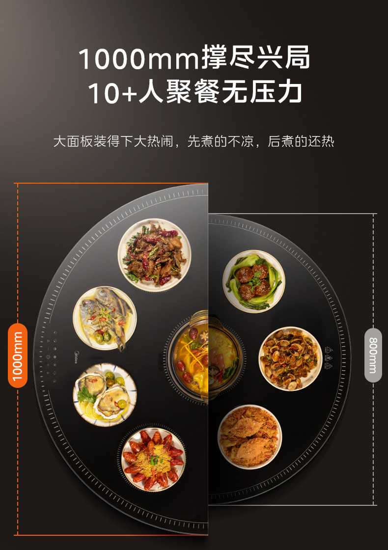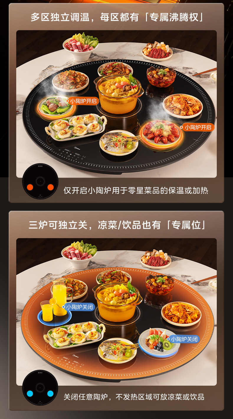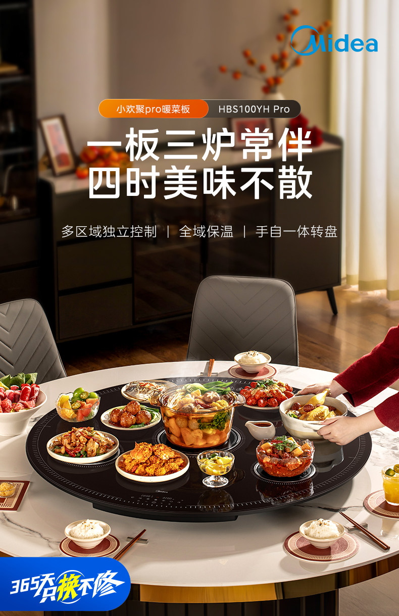 Midea Hot Food Warming Plate with Hot Pot, Multi-Head Stove, Warming Plate for Home Use, Heated Round Dining Table Turntable, New Model