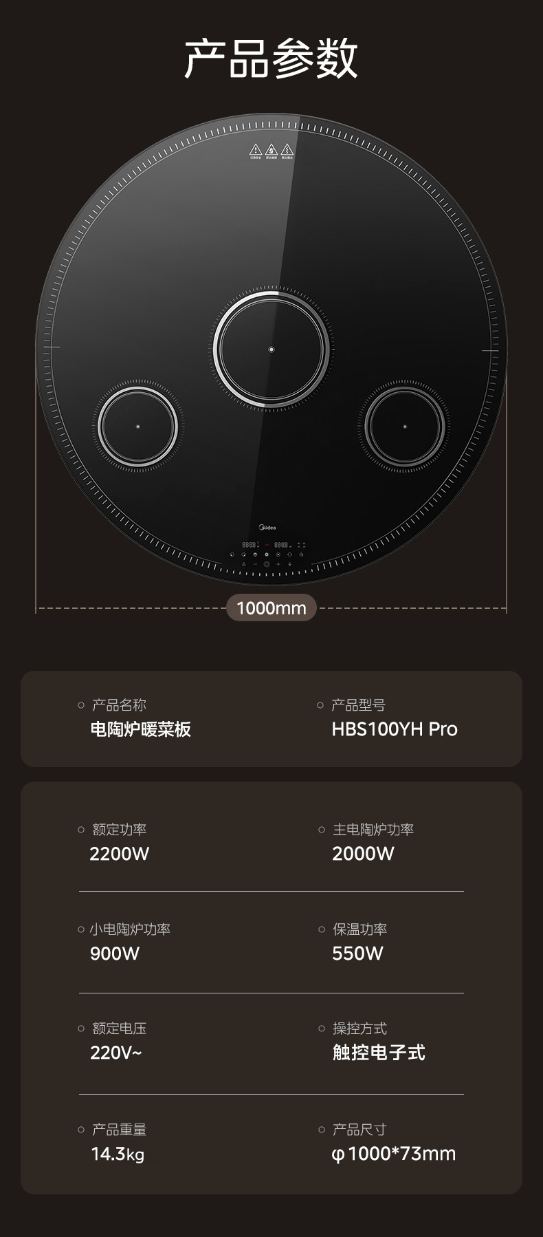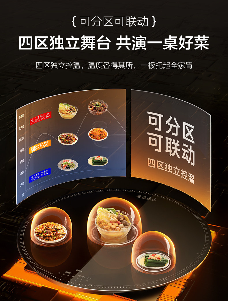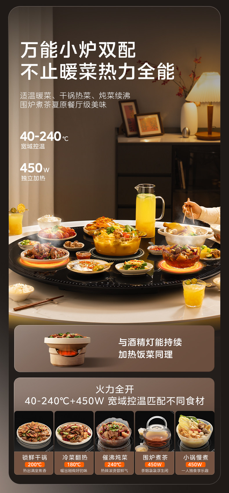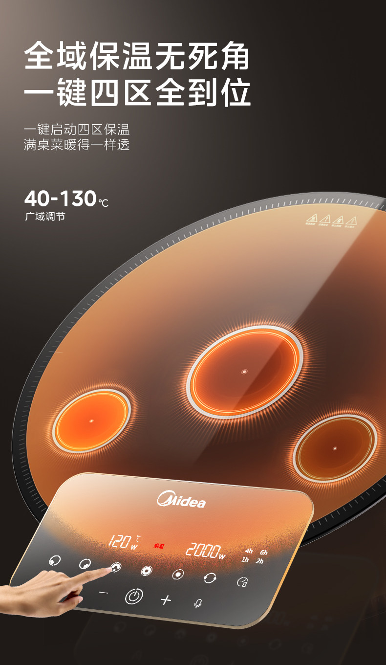Midea Hot Food Warming Plate with Hot Pot, Multi-Head Stove, Warming Plate for Home Use, Heated Round Dining Table Turntable, New Model