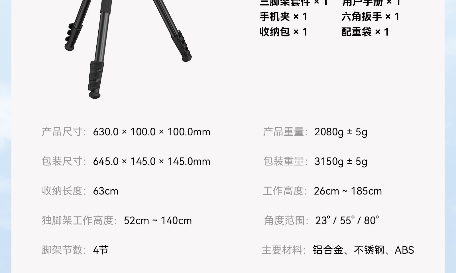 | Type of Product | Tripod + Gimbal Set |