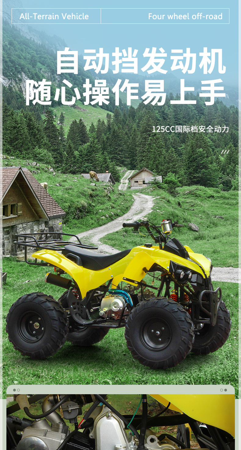 Atv Four-Wheel Off-Road Motorcycle, Small King of the Beach, Free Shipping, 125Cc Gasoline Single-Cylinder All-Terrain Vehicle, Electric Vehicle