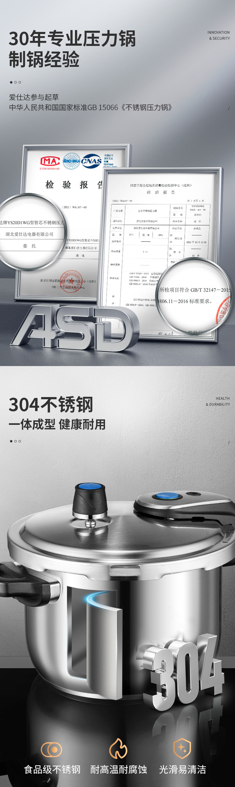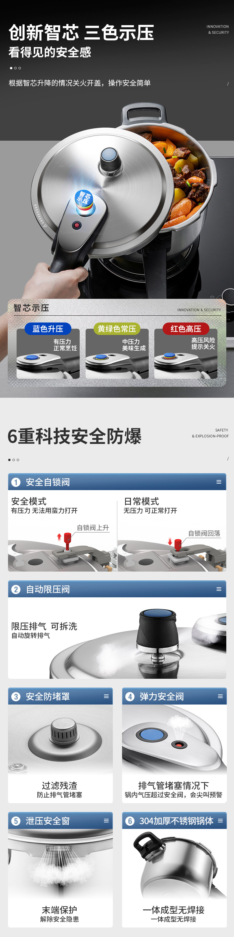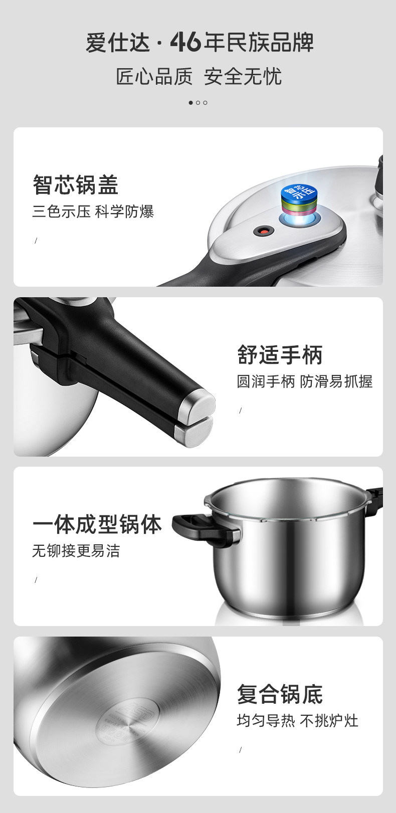 Aistar Stainless Steel Smart Core Pressure Cooker for Home Use, Compatible with Gas and Induction Cookers, Official Genuine Product, Explosion-Proof