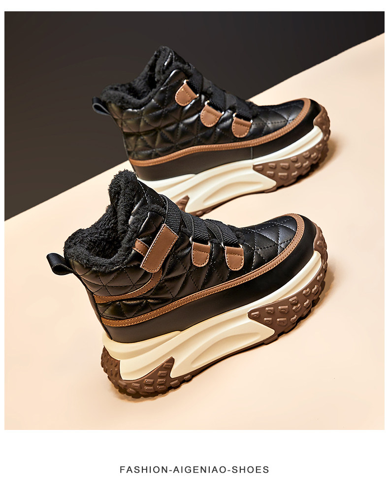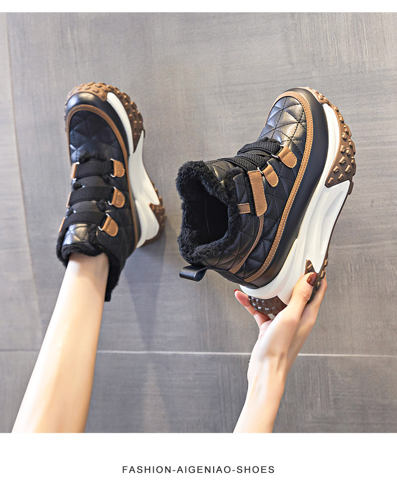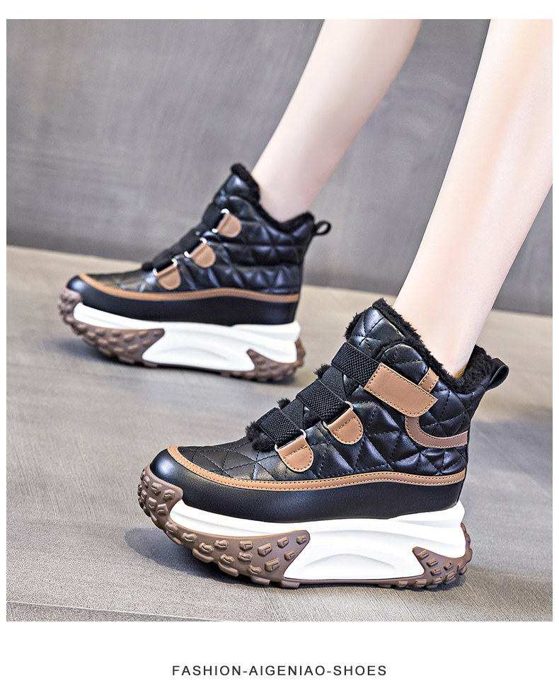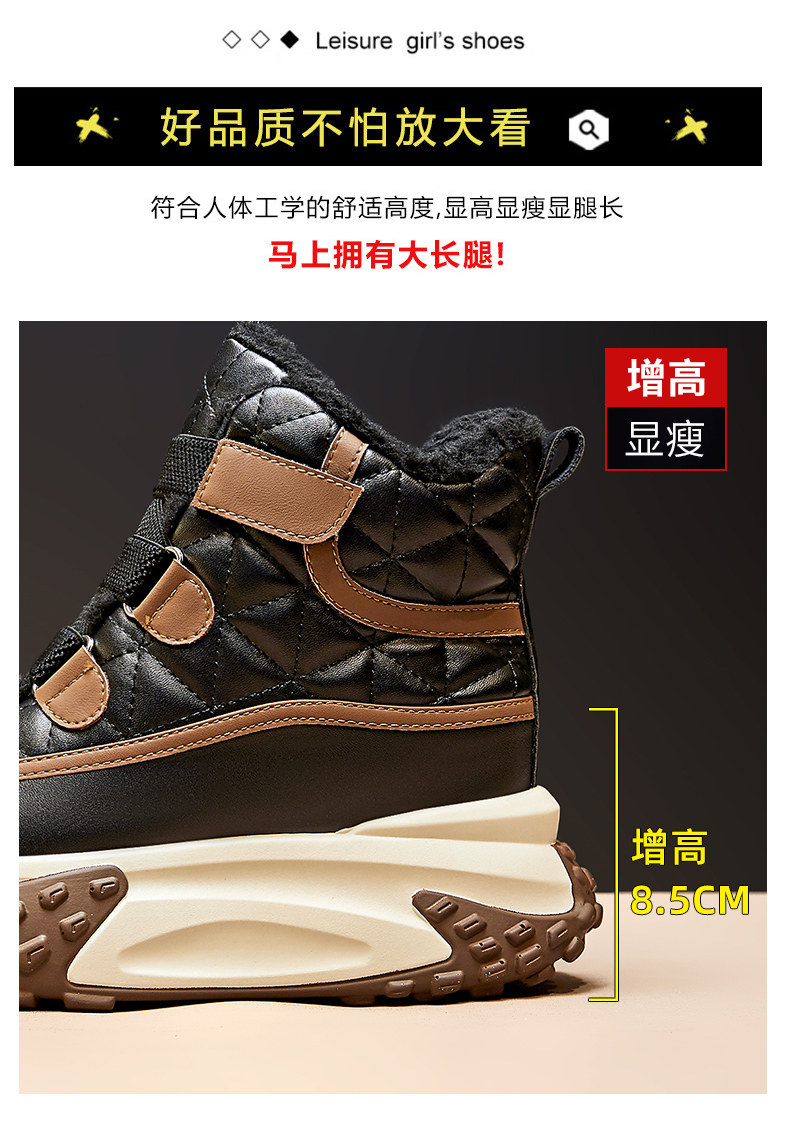 Northeast Snow Boots for Women, Waterproof and Non-Slip, 2025 Autumn and Winter New Style, Fleece-Lined, Warm Cotton Shoes, Thick-Soled, Height-Increasing Martin Boots