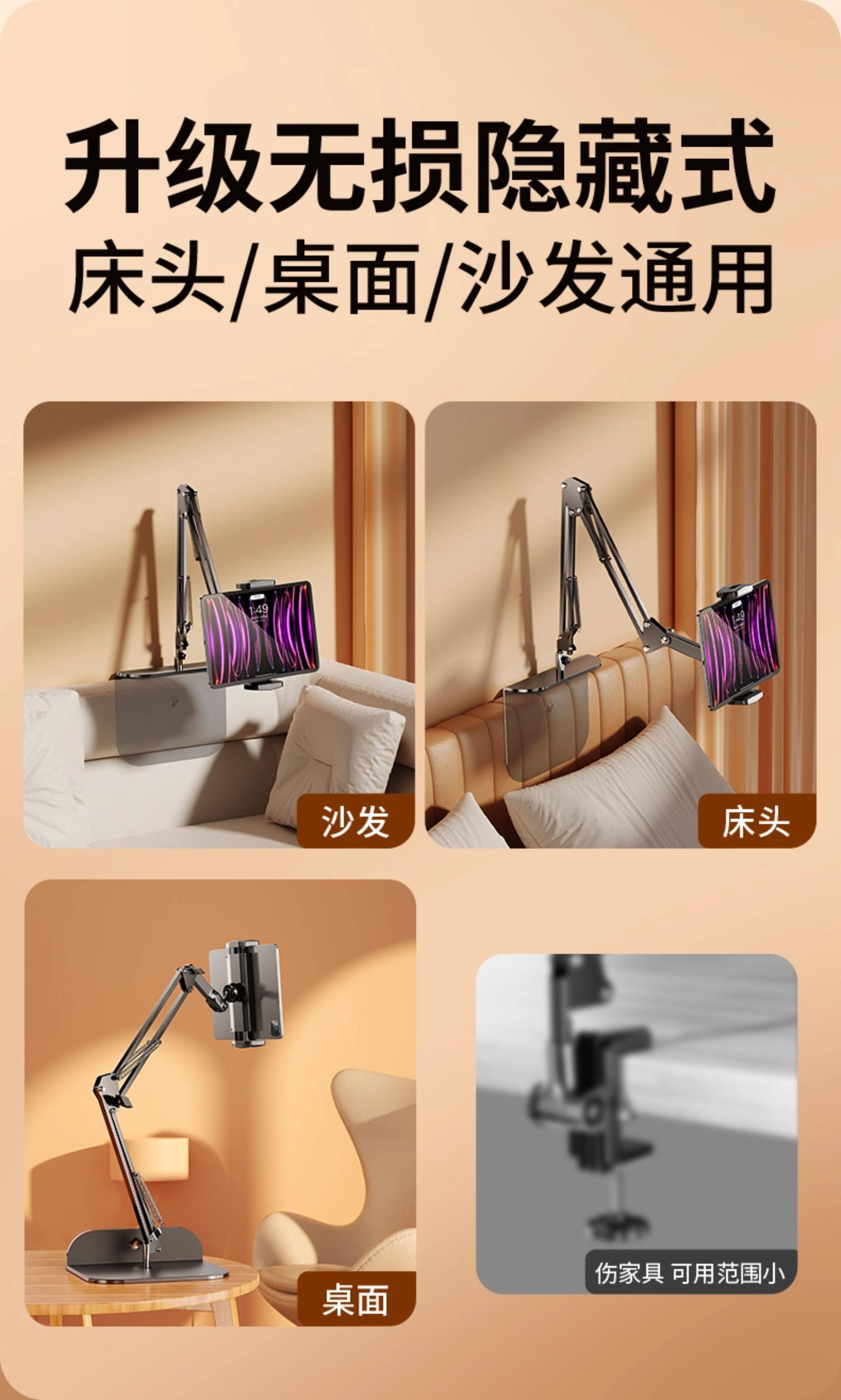 [No Installation Needed, Hidden Model] Tablet Stand Bedside Phone Lazy Stand iPad Universal Support Bracket for Sofa, Bed, Watching Tv, Dormitory, Binge-Watching, Special Arm Clamp