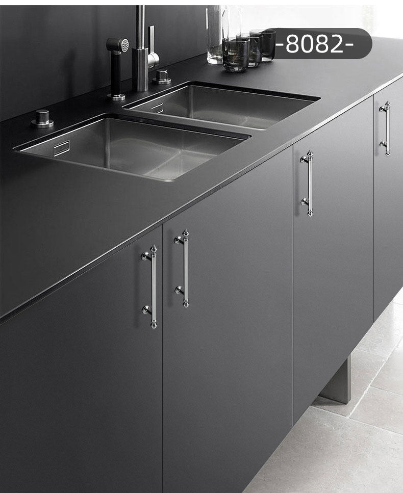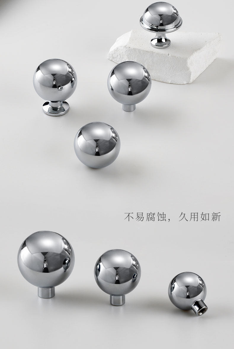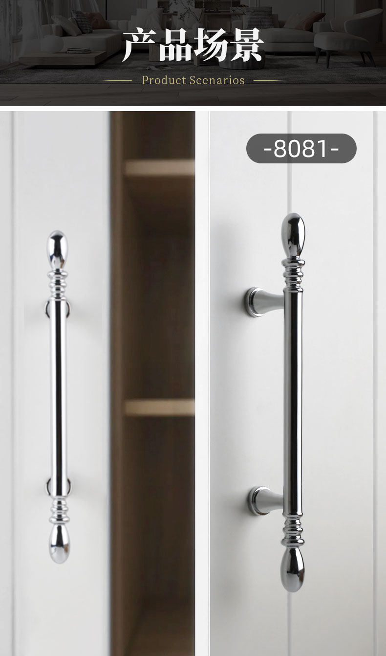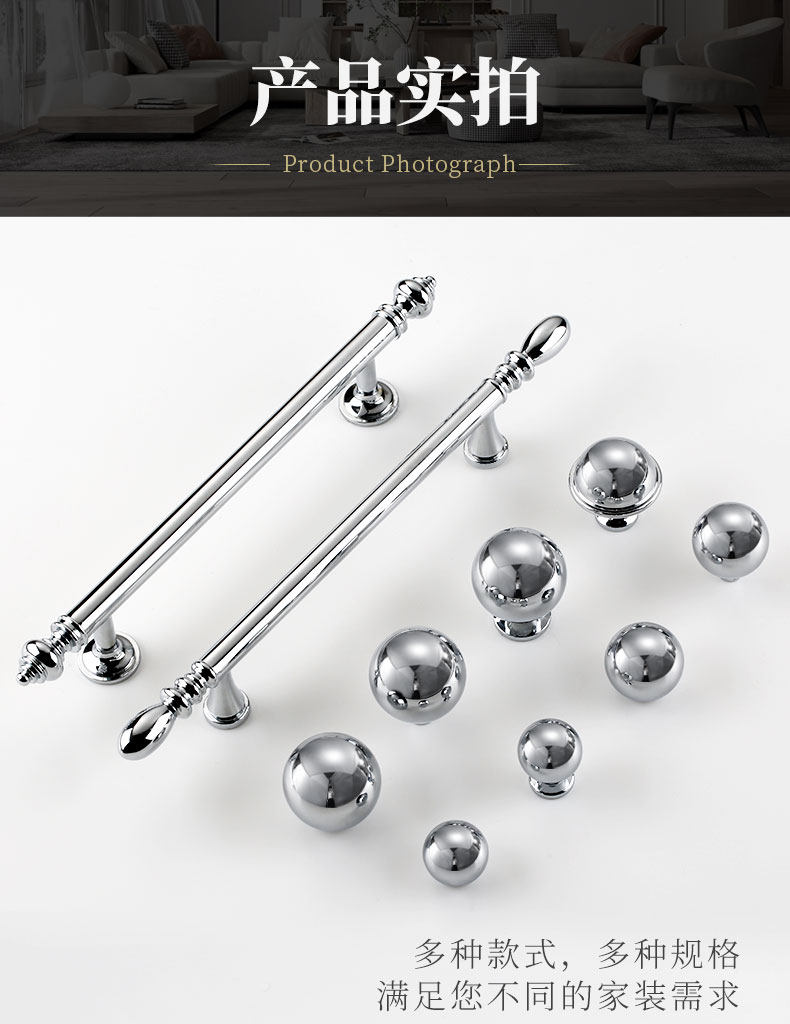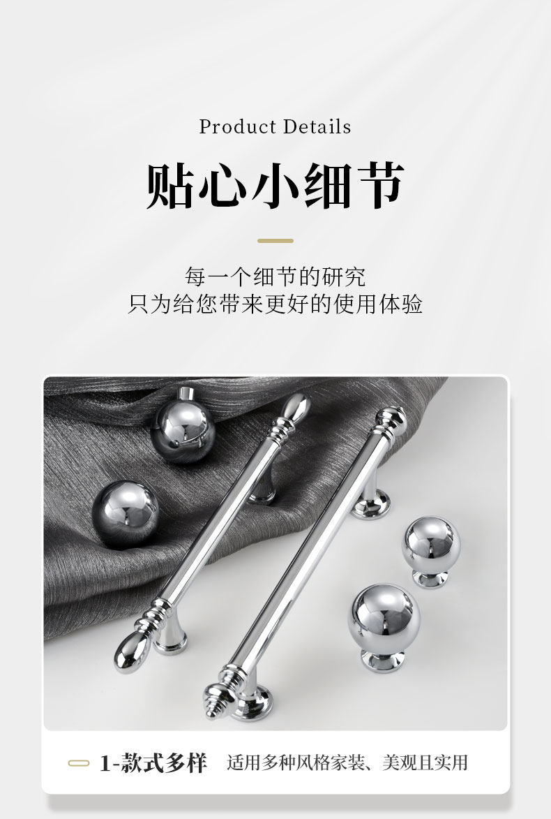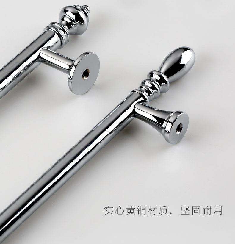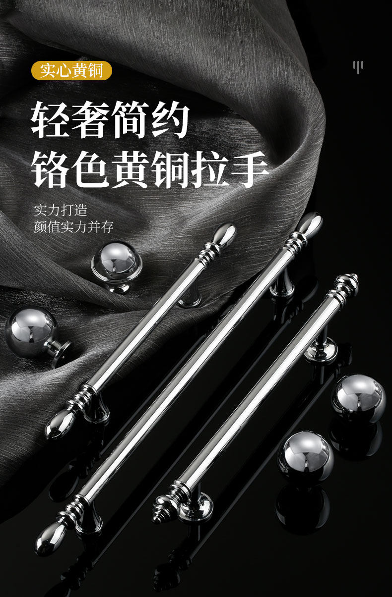French-Style Shiny Silver Brass Cabinet Door Drawer Handle, Modern Minimalist Light Luxury Cream Style Cabinet Wardrobe Door Handle