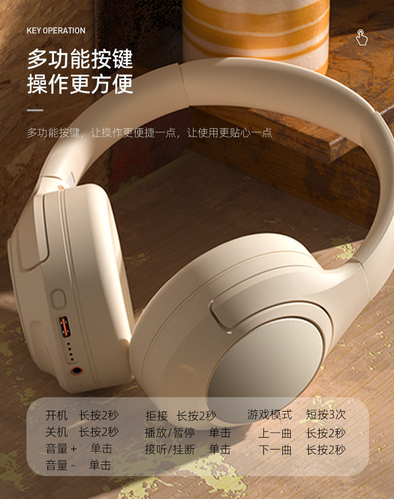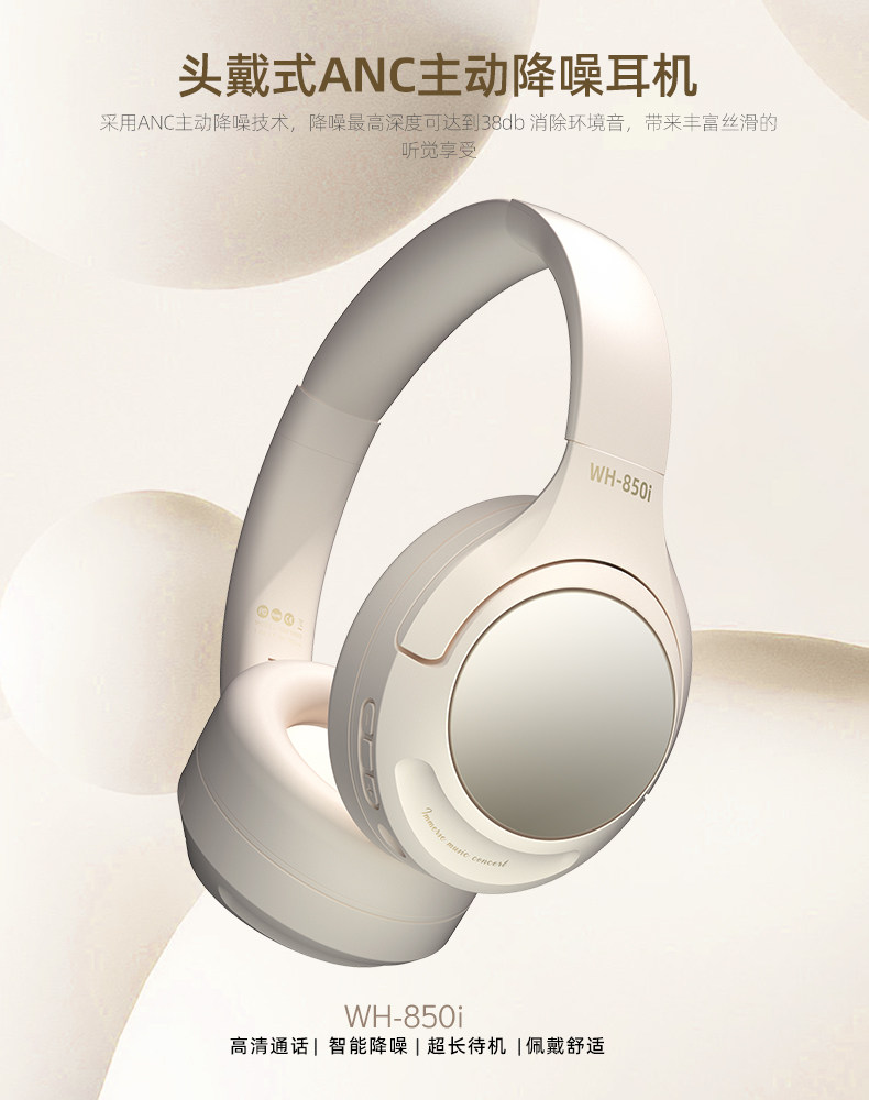 2024 New Over-Ear Bluetooth Headphones with Anc Active Noise Cancellation, Lightweight Foldable Music Headset, Stylish for Students