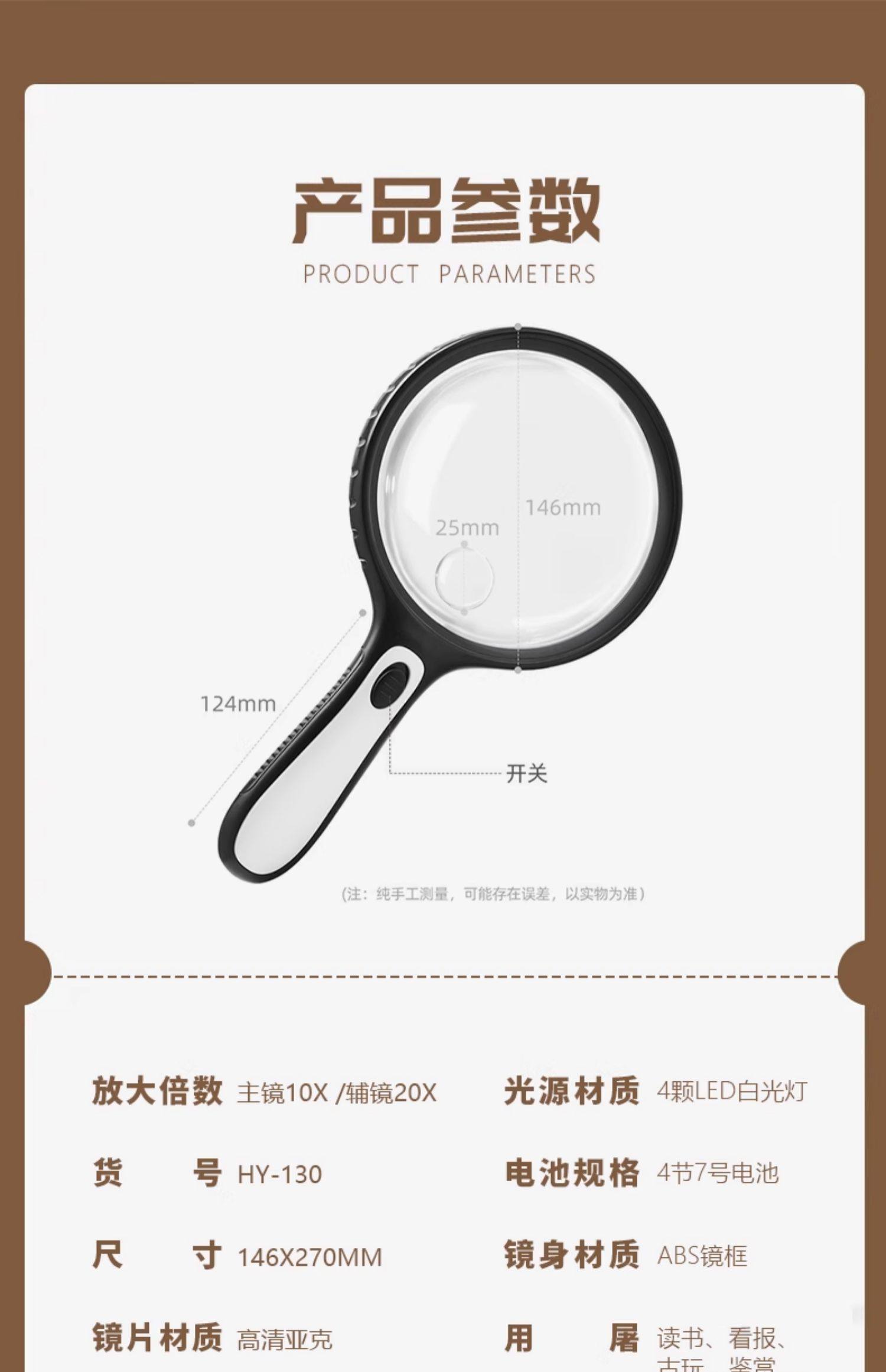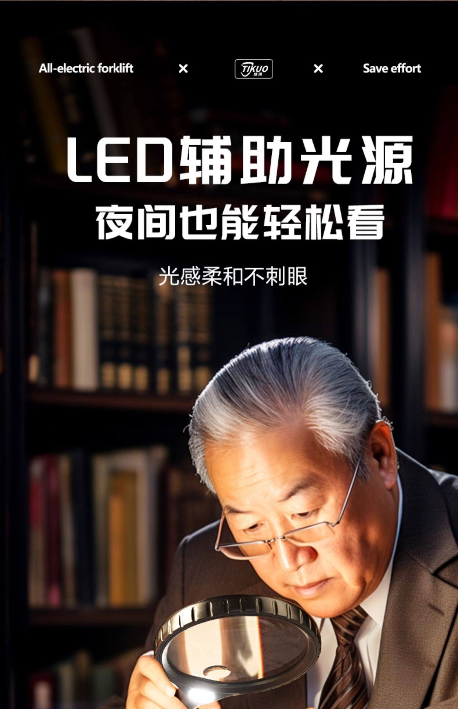 Magnifying Glass for Elderly Reading, High-Definition, High Magnification, Genuine Handheld Portable with Led Light, 10X Plastic Handle, Specialized for Jewelry Appraisal, 20X Mini Circuit Board Repair, 30X Presbyopic Magnifier, 1000X