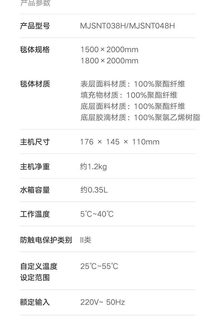 | Color Classification | Mijia Smart Water Heating Blanket 1.5m * 2m,Mijia Smart Water Heating Blanket 1.8m * 2m |