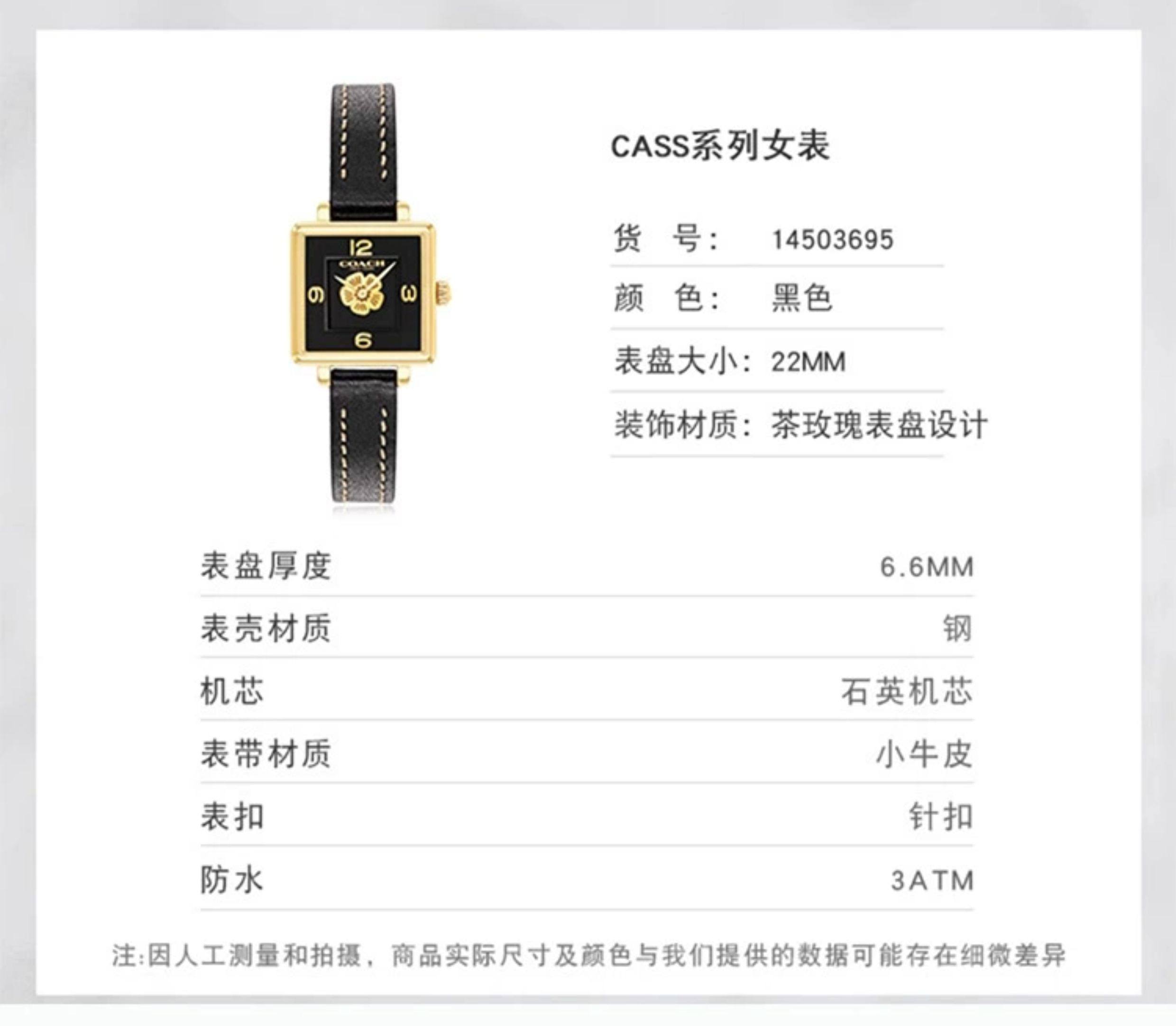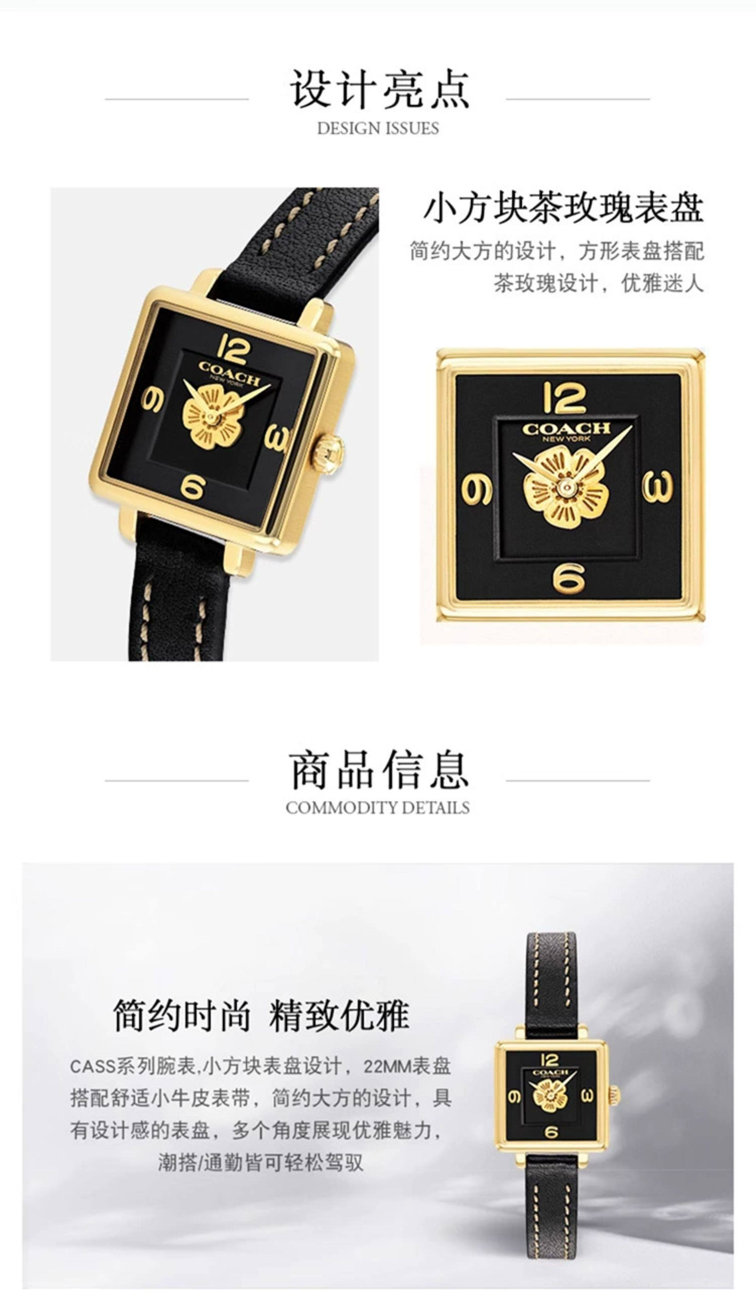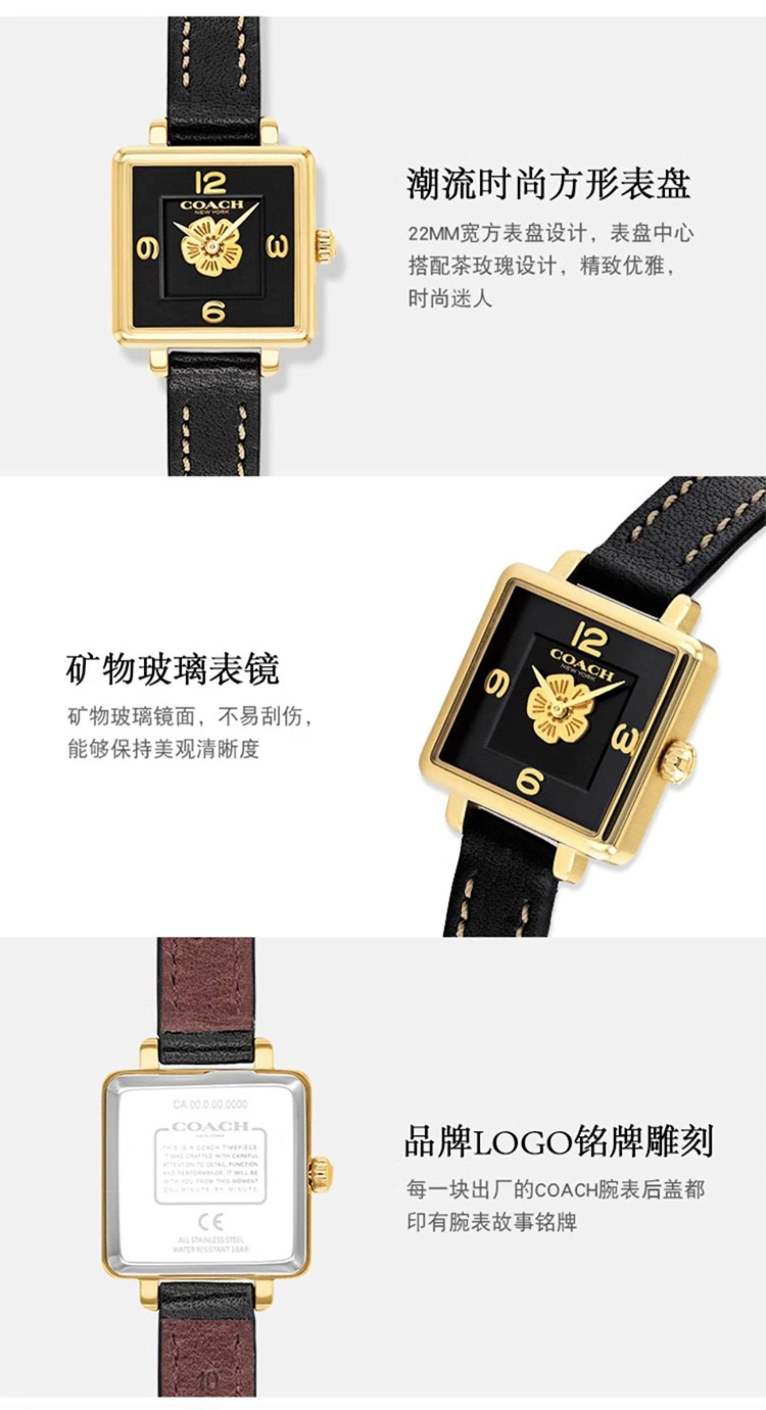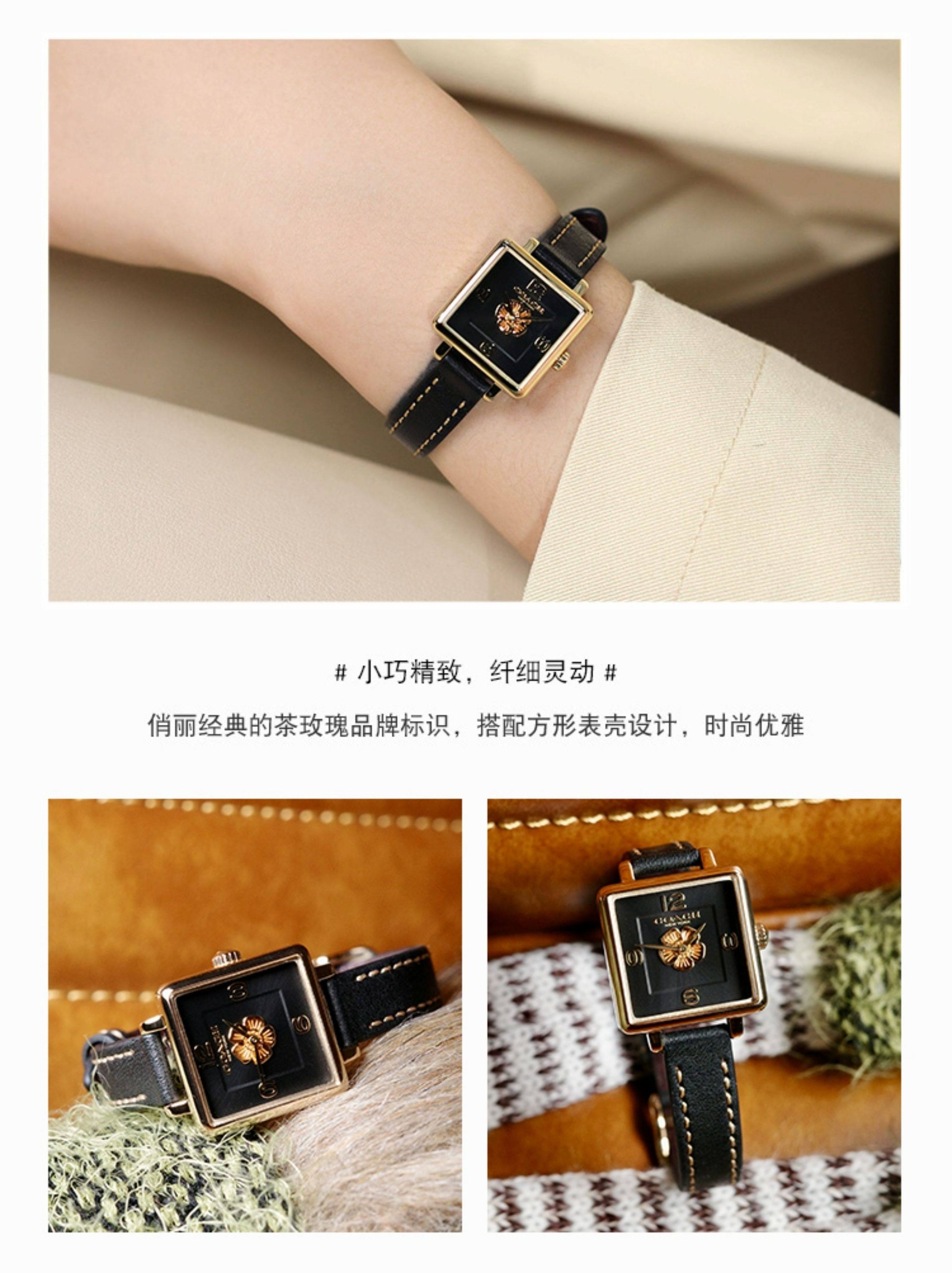 COACH Cass Series Tea Rose Quartz Small Sugar Cube European and American Style Women's Watch as a Gift for Girlfriend