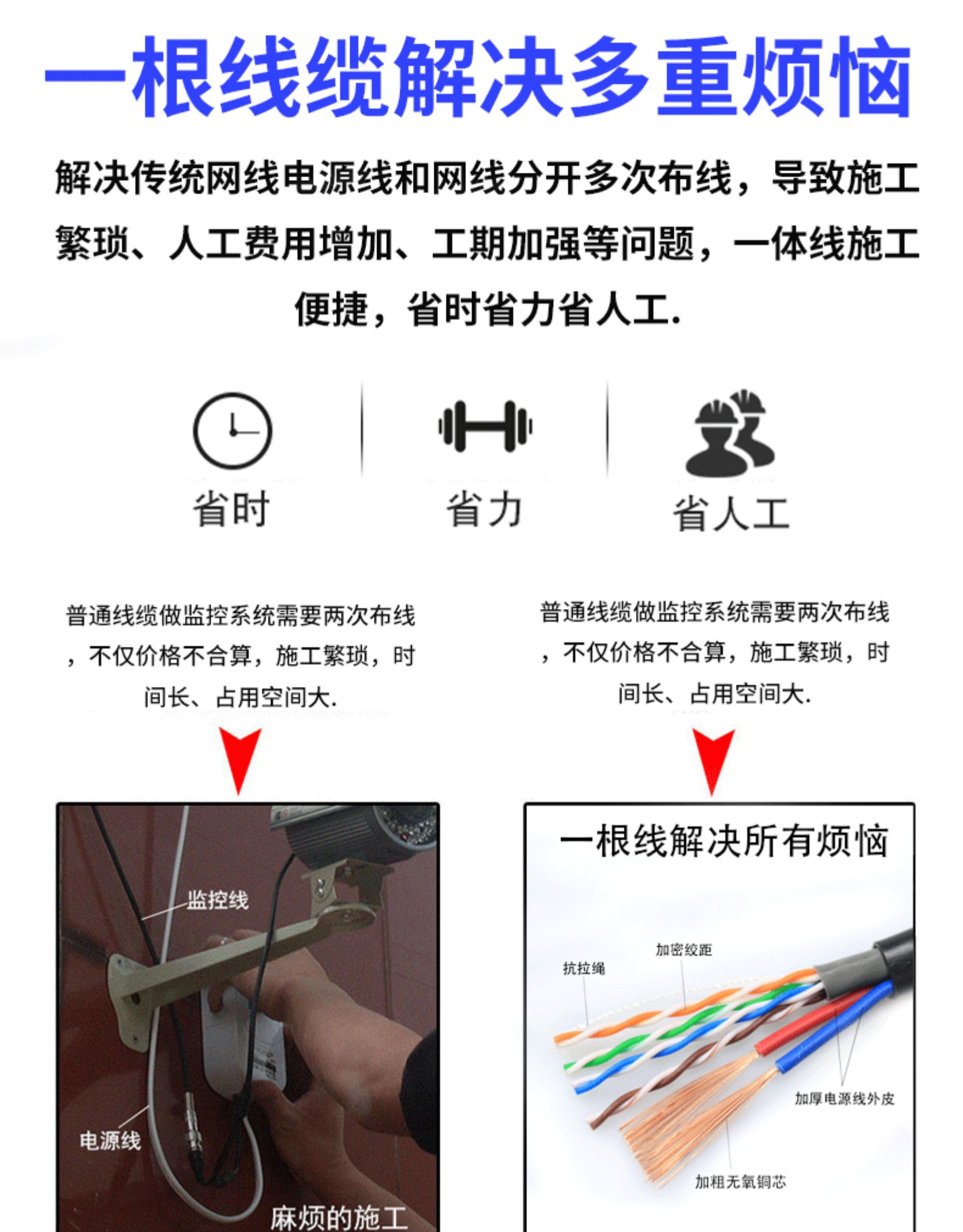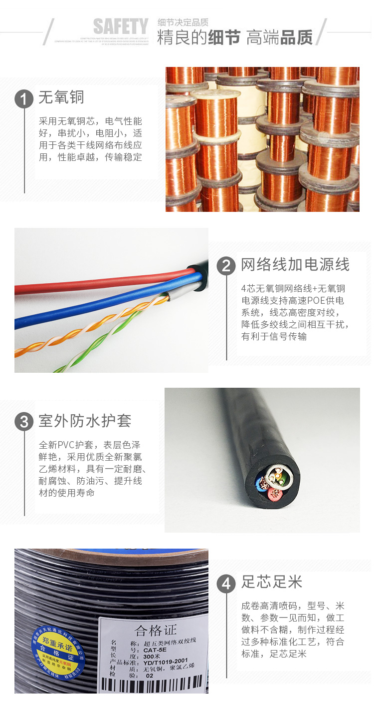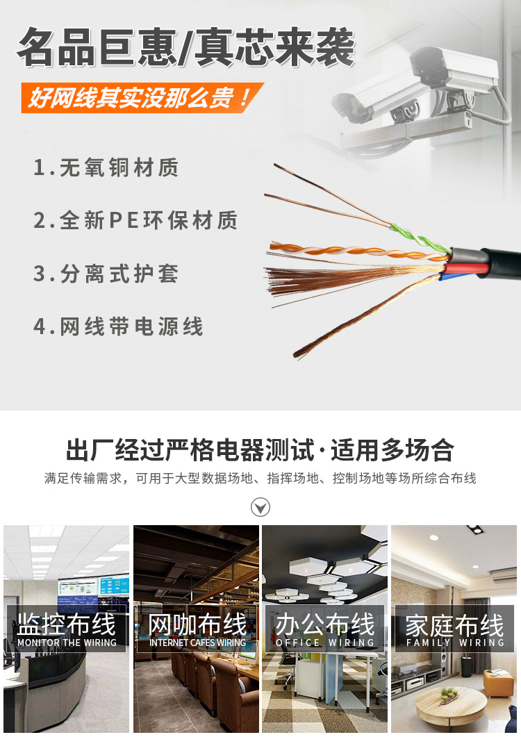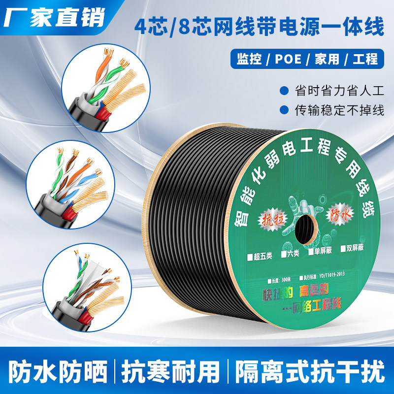 Outdoor Oxygen-Free Copper Network Four-Core Eight-Core +2 Composite Cable Surveillance Network Cable with Power Supply Integrated Cable Composite Twisted Pair Cable