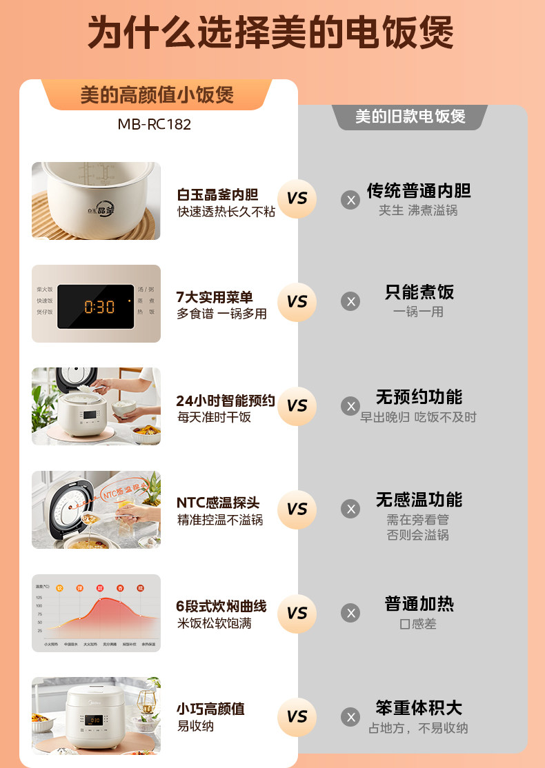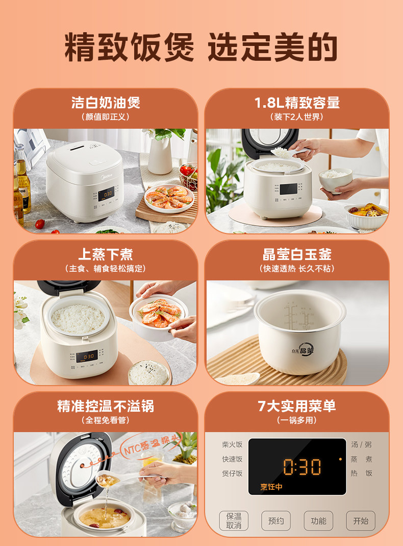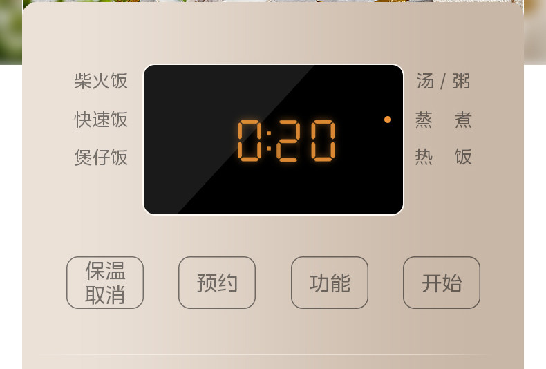 | Multifunctional Rice Cooker | Sweet Rice, Quick Rice, Porridge, Soup/Congee, Steaming, Heating, Keeping Warm, Reservation; |