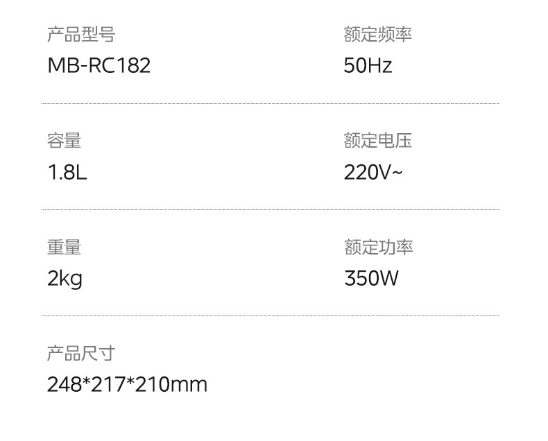 | Rated Capacity | 1.8L |