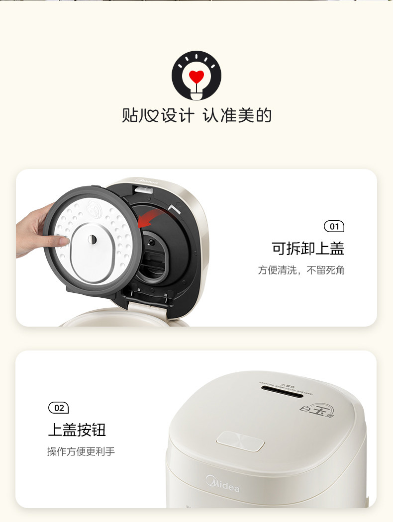 Midea Rice Cooker for 1-3 People, Small Household Rice Cooker, Smart Multi-Functional Mini Steaming and Cooking Rice Cooker, 2023 New Model 1
