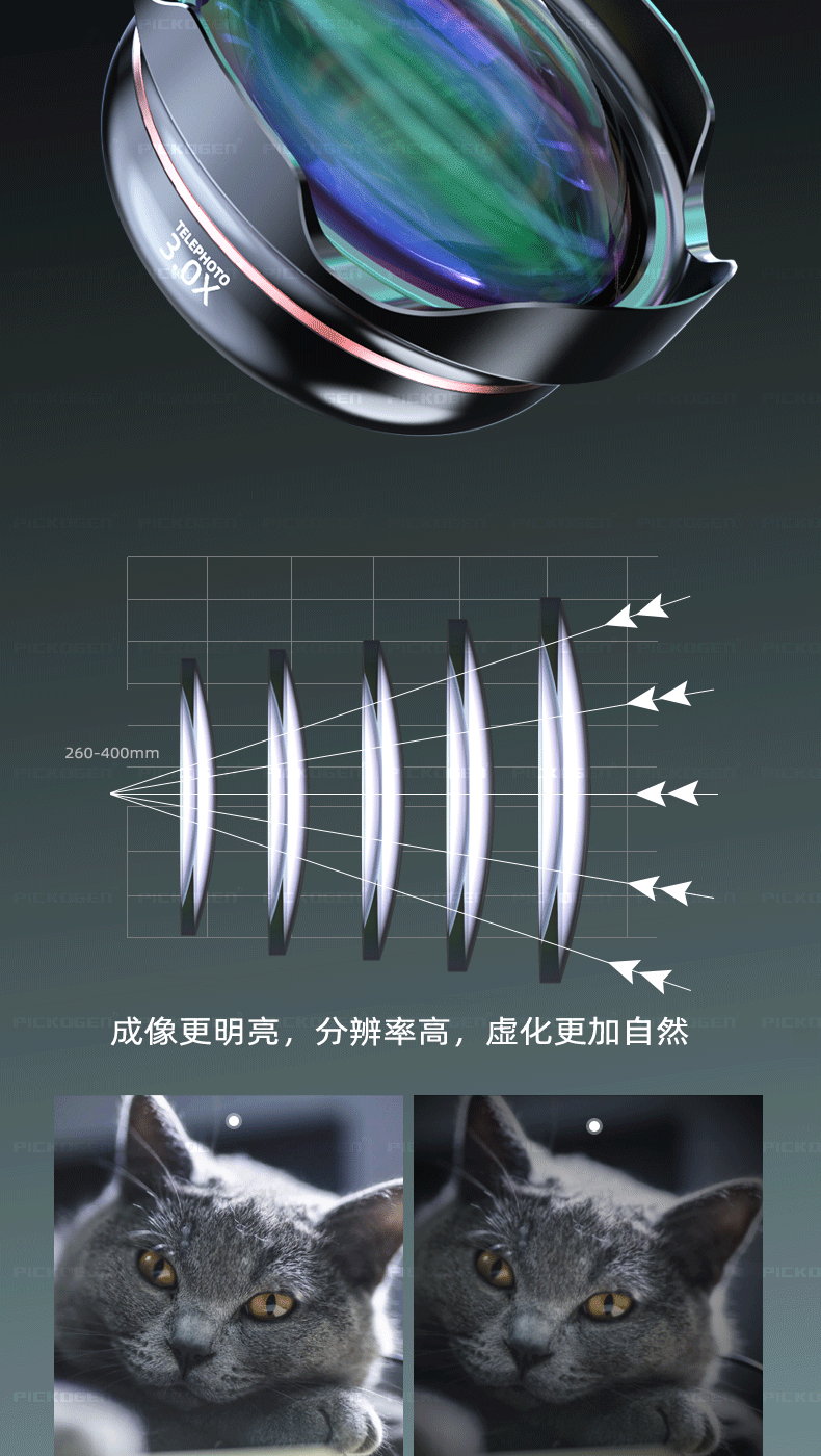 Pickogen Mobile Phone Lens for Professional Portrait Photography, Large Aperture, Background Blur, Dedicated 3X External Telephoto High-Definition Zoom Lens, Cpl Polarizing Starlight Filter, Suitable for Xsmax Apple 8P