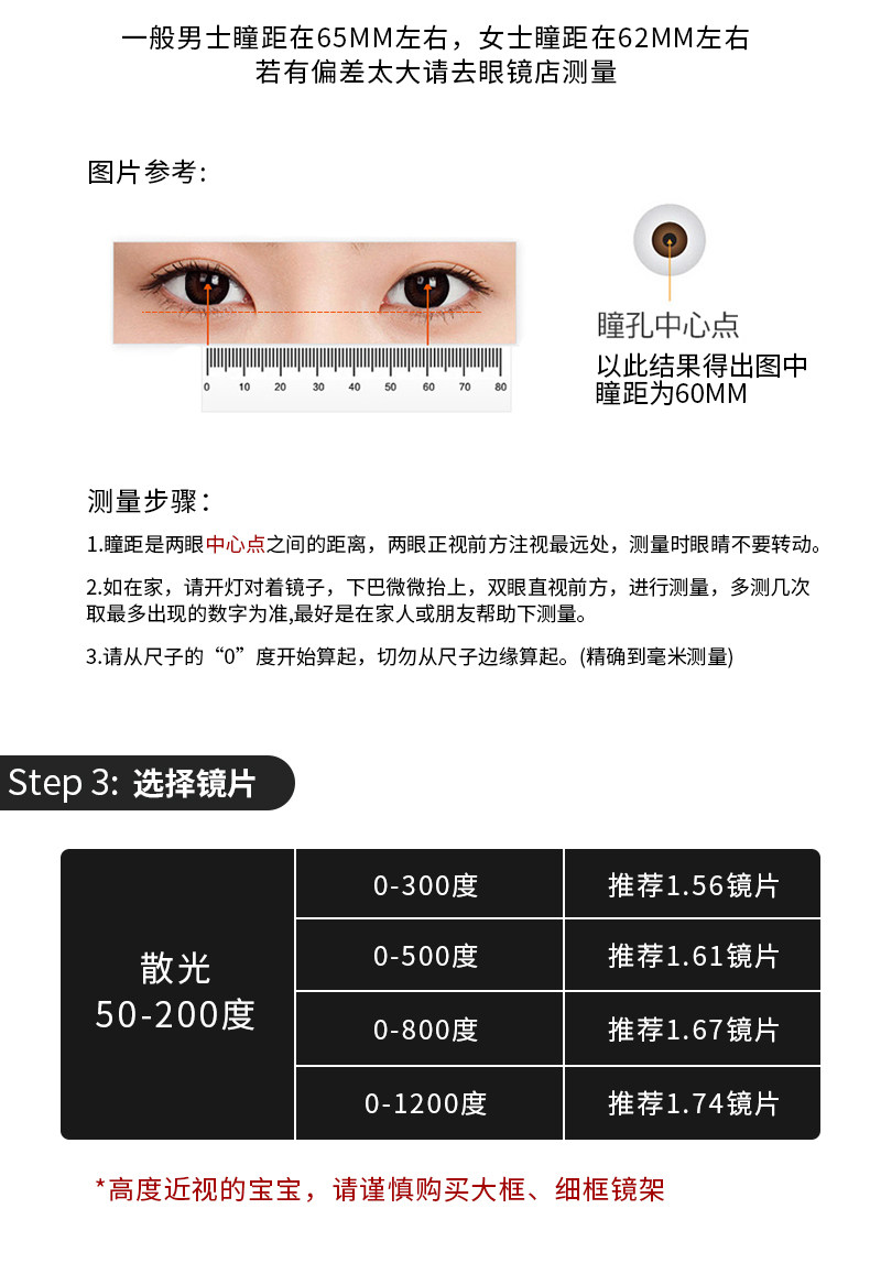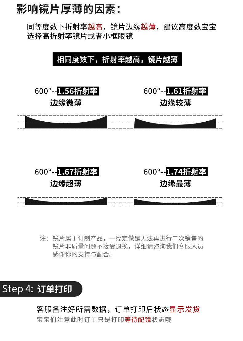 | Lens Refractive Index | Frame + 0 Degree Anti-Blue Light Lenses,Eyeglass Frames + [Thin & Lightweight] 1.56 Blue Light Blocking & Anti-Radiation Lenses [Suitable for 0-300] [Please Specify Prescription],Eyeglass Frames + [Slightly Thinner] 1.61 Blue Light Blocking & Anti-Radiation Lenses [Suitable for 0-500] [Note Prescription],Eyeglass Frames + [Ultra-Thin] 1.67 Blue Light Blocking & Anti-Radiation Lenses [Suitable for 0-800] [Please Specify Prescription],Eyeglass Frames + [Ultra-Thin] 1.74 Blue Light Blocking & Anti-Radiation Lenses [Suitable for 0-1200 Degrees] [Please Specify Prescription],Frame + [Thin] 1.56 Anti-Radiation Lenses [Suitable for 0-300] [Remark Degree],Frame + [Thinner] 1.61 Anti-Radiation Lenses [Suitable for 0-500] [Remarks on Degree],Frame + [Ultra-Thin] 1.67 Anti-Radiation Lens [Suitable for 0-800] [Remarks],Frame + [Thinnest] 1.74 Radiation-Proof Lens [Suitable for 0-1200] [Remark Degree],Frame + Essilor Wanxin 1.56 Multi-Screen Anti-Blue Light Lenses [Suitable for 0-300] [Remark Degree],Eyeglass Frames + Essilor's Varifocal 1.60 Blue Light Blocking Lenses [Suitable for 0-500] [Please Specify Prescription],Eyeglass Frames + Essilor Vanix 1.67 Multi-Screen Anti-Blue Light Lenses [Suitable for 0-800] [Please Specify Prescription],Frame + Essilor Wanxin 1.74 Multi-Screen Anti-Blue Light Lenses [Suitable for 0-1200] [Remark the Degree],Frame + Essilor Wanxin 1.56 Daily Anti-Radiation Lenses [Suitable for 0-300] [Remark Degree],Frame + Essilor Wanxin 1.60 Daily Anti-Radiation Lenses [Suitable for 0-500] [Remark Degree],Frame + Essilor Wanxin 1.67 Daily Radiation-Proof Lenses [Suitable for 0-800] [Remark Degree],Frame + Essilor Wanxin 1.74 Daily Anti-Radiation Lenses [Suitable for 0-1200] [Remark Prescription] |