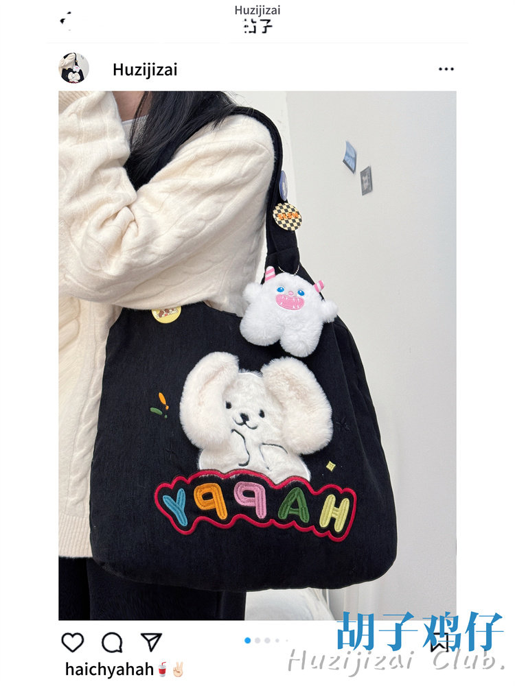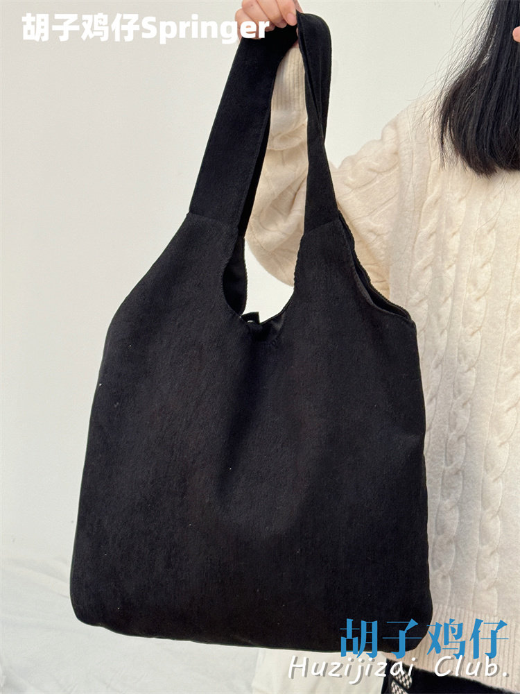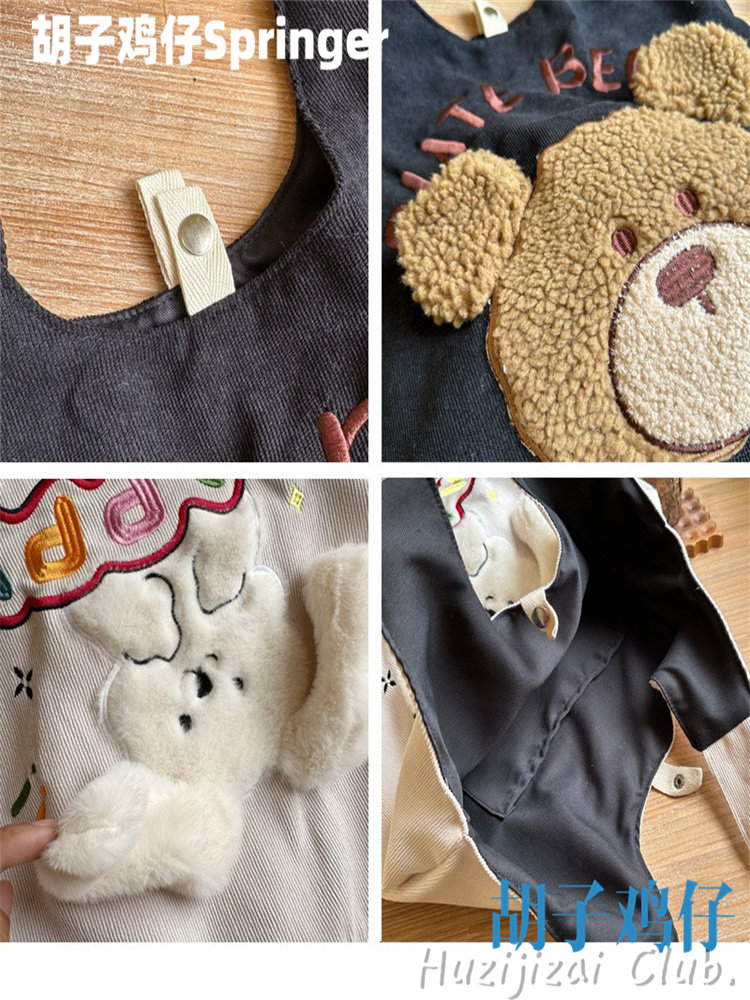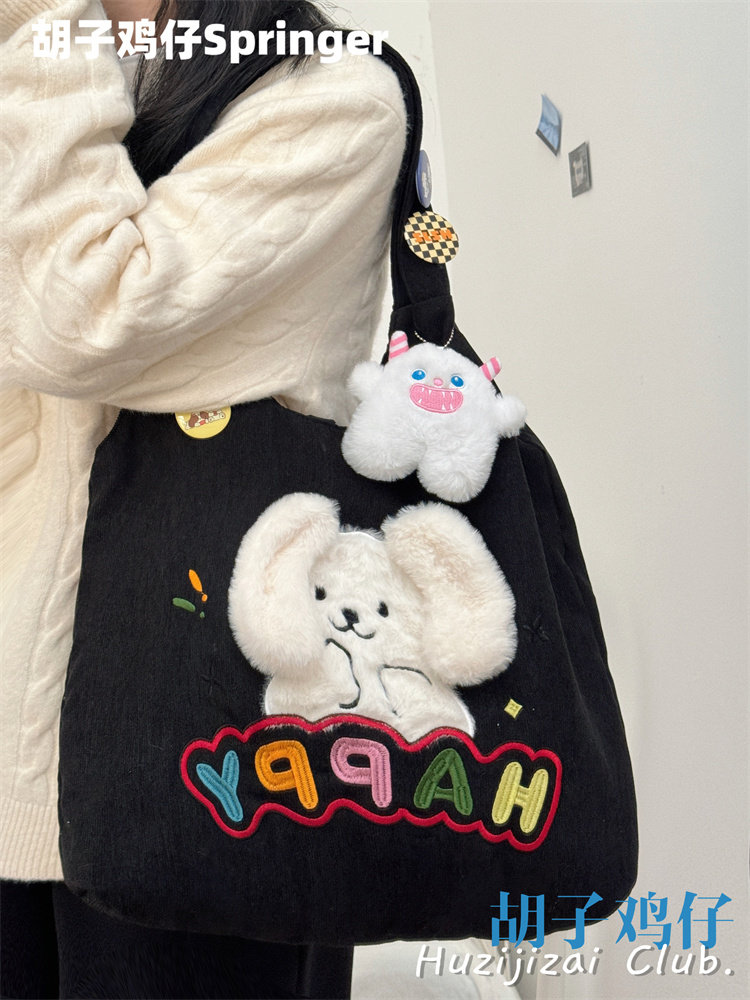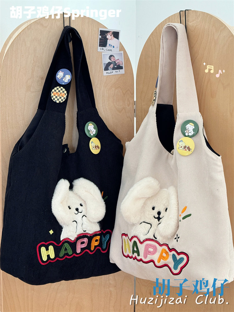 Japanese-Style Cartoon Cute Puppy Shoulder Bag for Girls, Soft Girl Student Large-Capacity Handbag Corduroy Bag