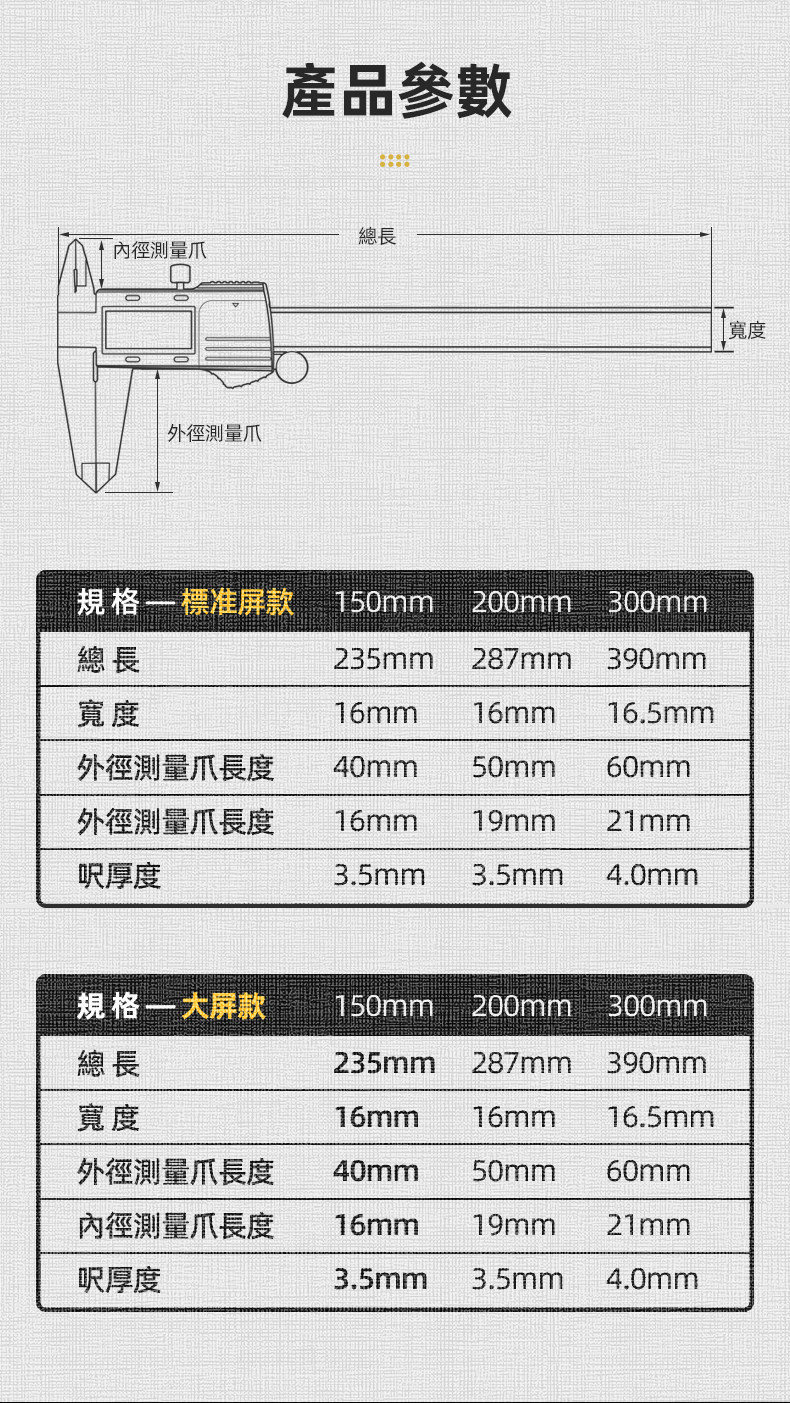 | Color Classification | [Ip54 Waterproof + Fiber Fixed Grid] Digital Display 0-150mm,[Ip54 Waterproof + Fiber Fixed Grid] Digital Display 0-200mm,[Ip54 Waterproof + Fiber Fixed Grid] Digital Display 0-300mm,[Certificate Model] [Ip54 Waterproof + Fiber Fixed Grid] Digital Display 0-150mm,[Certificate Model] [Ip54 Waterproof + Fiber Fixed Grid] Digital Display 0-200mm,[Certificate Model] [Ip54 Waterproof + Fiber Fixed Grid] Digital Display 0-300mm,[Full Screen Zinc Alloy Digital Display + Glass Fixed Grid] Digital Display 0-150mm,[Full Screen Zinc Alloy Digital Display + Glass Fixed Grid] Digital Display 0-300mm,[Full Screen Zinc Alloy Digital Display + Glass Fixed Grid] Digital Display 0-200mm,[Ip54 Waterproof + Glass Fixed Grid] Digital Display 0-150mm,[Ip54 Waterproof + Glass Fixed Grid] Digital Display 0-200mm,[Ip54 Waterproof + Glass Fixed Grid] Digital Display 0-300mm,[Certificate Model] [Full Screen Zinc Alloy Digital Display + Glass Fixed Grid] Digital Display 0-150mm,[Certificate Model] [Full Screen Zinc Alloy Digital Display + Glass Fixed Grid] Digital Display 0-200mm,[Certificate Model] [Full Screen Zinc Alloy Digital Display + Glass Fixed Grid] Digital Display 0-300mm |