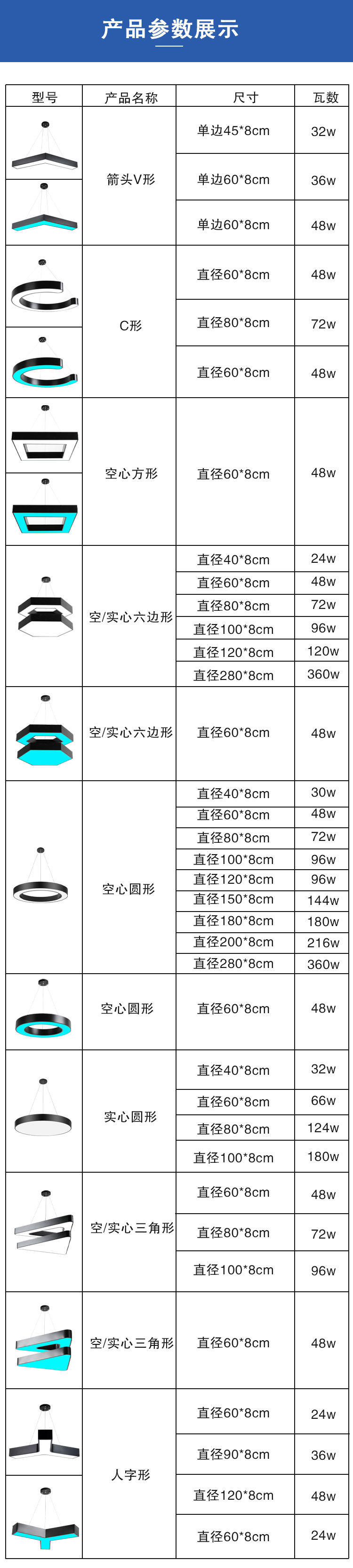| Color Classification | Diameter 40cm -24W Hollow Hexagon,Diameter 40cm -24W Hollow Hexagonal Blue Light,Diameter 60cm -48W Hollow Hexagon,Diameter 60cm -48W Hollow Hexagonal Blue Light,Diameter 80cm -72W Hollow Hexagon,Diameter 80cm -72W Hollow Hexagonal Blue Light,Diameter 100cm -96W Hollow Hexagon,Diameter 100cm -96W Hollow Hexagonal Blue Light,Diameter 120cm -96W Hollow Hexagon,Diameter 120cm -96W Hollow Hexagonal Blue Light,Diameter 280cm -360W Hollow Hexagon,Diameter 280cm -360W Hollow Hexagonal Blue Light,Diameter 40cm -24W Solid Hexagon,Diameter 40cm -24W Solid Hexagonal Blue Light,Diameter 60cm -48W Solid Hexagon,Diameter 60cm -48W Solid Hexagonal Blue Light,Diameter 80cm -72W Solid Hexagon,Diameter 80cm -72W Solid Hexagonal Blue Light,Diameter 100cm -96W Solid Hexagon,Diameter 100cm -96W Solid Hexagonal Blue Light,Diameter 120cm -120W Solid Hexagon,Diameter 120cm -120W Solid Hexagonal Blue Light,Diameter 280cm -360W Solid Hexagon,Diameter 280cm -360W Solid Hexagonal Blue Light,Diameter 40cm -30W Hollow Round,Diameter 40cm -30W Hollow Round Blue Light,Diameter 40cm -32W Solid Round,Diameter 40cm -32W Solid Round Blue Light,Diameter 60cm -48W Hollow Round,Diameter 60cm -48W Hollow Round Blue Light,Diameter 60cm -66W Solid Round,Diameter 60cm -66W Solid Round Blue Light,Diameter 80cm -72W Hollow Round,Diameter 80cm -72W Hollow Round Blue Light,Diameter 80cm -124W Solid Round,Diameter 80cm -124W Solid Round Blue Light,Diameter 100cm -96W Hollow Round,Diameter 100cm -96W Hollow Round Blue Light,Diameter 100cm -180W Solid Round,Diameter 100cm -180W Solid Round Blu-Ray,Diameter 120cm -96W Hollow Round,Diameter 120cm -96W Hollow Round Blue Light,Diameter 150cm -144W Hollow Round,Diameter 150cm -144W Hollow Round Blue Light,Diameter 180cm -180W Hollow Round Blue Light,Diameter 180cm -180W Hollow Round,Diameter 200cm -216W Hollow Round,Diameter 200cm -216W Hollow Round Blue Light,Diameter 280cm -360W Hollow Round,Diameter 280cm -360W Hollow Round Blue Light,Diameter 60cm -48W Hollow Triangle,Diameter 60cm -48W Hollow Triangular Blue Light,Diameter 60cm -48W Solid Triangle,Diameter 60cm -48W Solid Triangular Blue Light,Diameter 80cm -72W Solid Triangular Blue Light,Diameter 80cm -72W Solid Triangle,Diameter 80cm -72W Hollow Triangular Blue Light,Diameter 100cm -96W Hollow Triangle,Diameter 80cm -72W Hollow Triangle,Diameter 100cm -96W Hollow Triangular Blue Light,Diameter 100cm -96W Solid Triangle,Diameter 100cm -96W Solid Triangular Blue Light,Diameter 80cm -72Wc Shaped Blue Light,Diameter 80cm -72Wc Shape,Diameter 60cm -48Wc Shape,Diameter 60cm -48Wc Shaped Blue Light,Single Side 45cm -32W Arrow V Shape,Single Side 45cm -32W Arrow V-Shaped Blue Light,Single Side 60cm -36W Arrow V Shape,Diameter 60cm -24W Herringbone Blue Light,Single Side 60cm -36W Arrow V-Shaped Blue Light,Single Side 60cm -48W Arrow V-Shaped Blue Light,Diameter 60cm -48W Arrow V-Shaped Blue Light,Diameter 60cm -24W Herringbone,Diameter 60cm -48W Herringbone Blue Light,Diameter 90cm -36W Herringbone,Diameter 90cm -36W Herringbone Blue Light,Diameter 120cm -48W Herringbone,Diameter 120cm -48W Herringbone Blue Light,Diameter 60cm -48W Hollow Square,Diameter 60cm -48W Hollow Square Blue Light,[Special Needs]Support DIY Customization |
