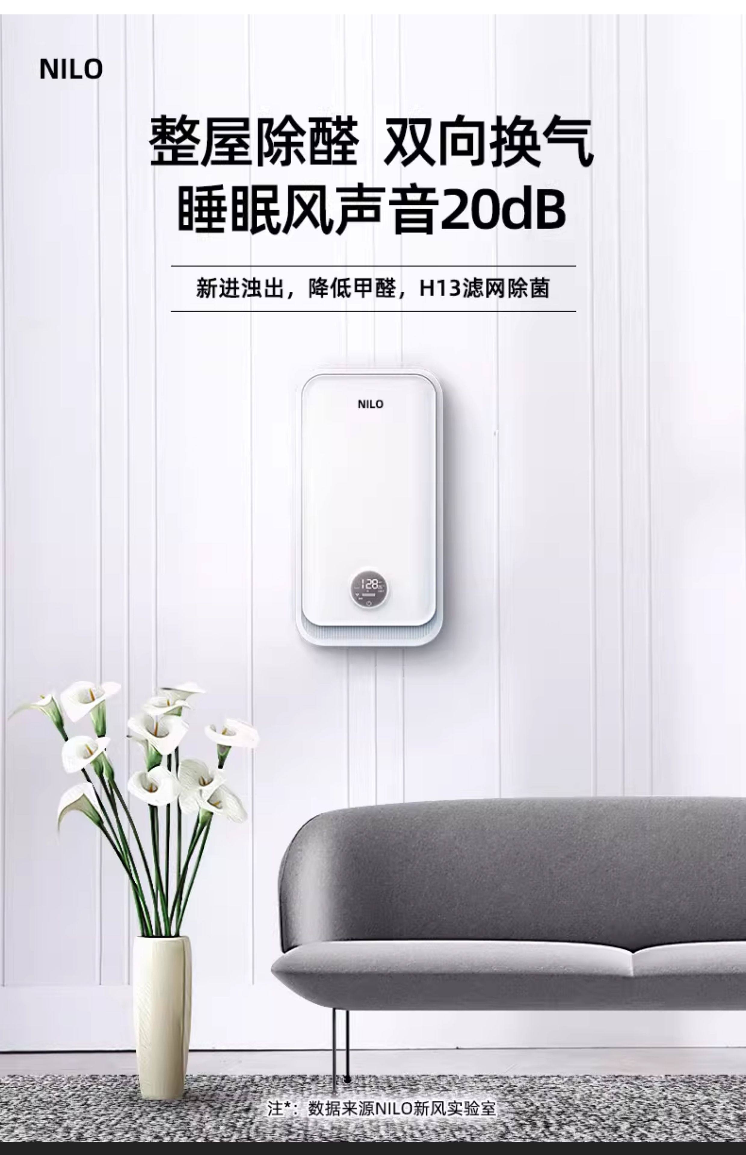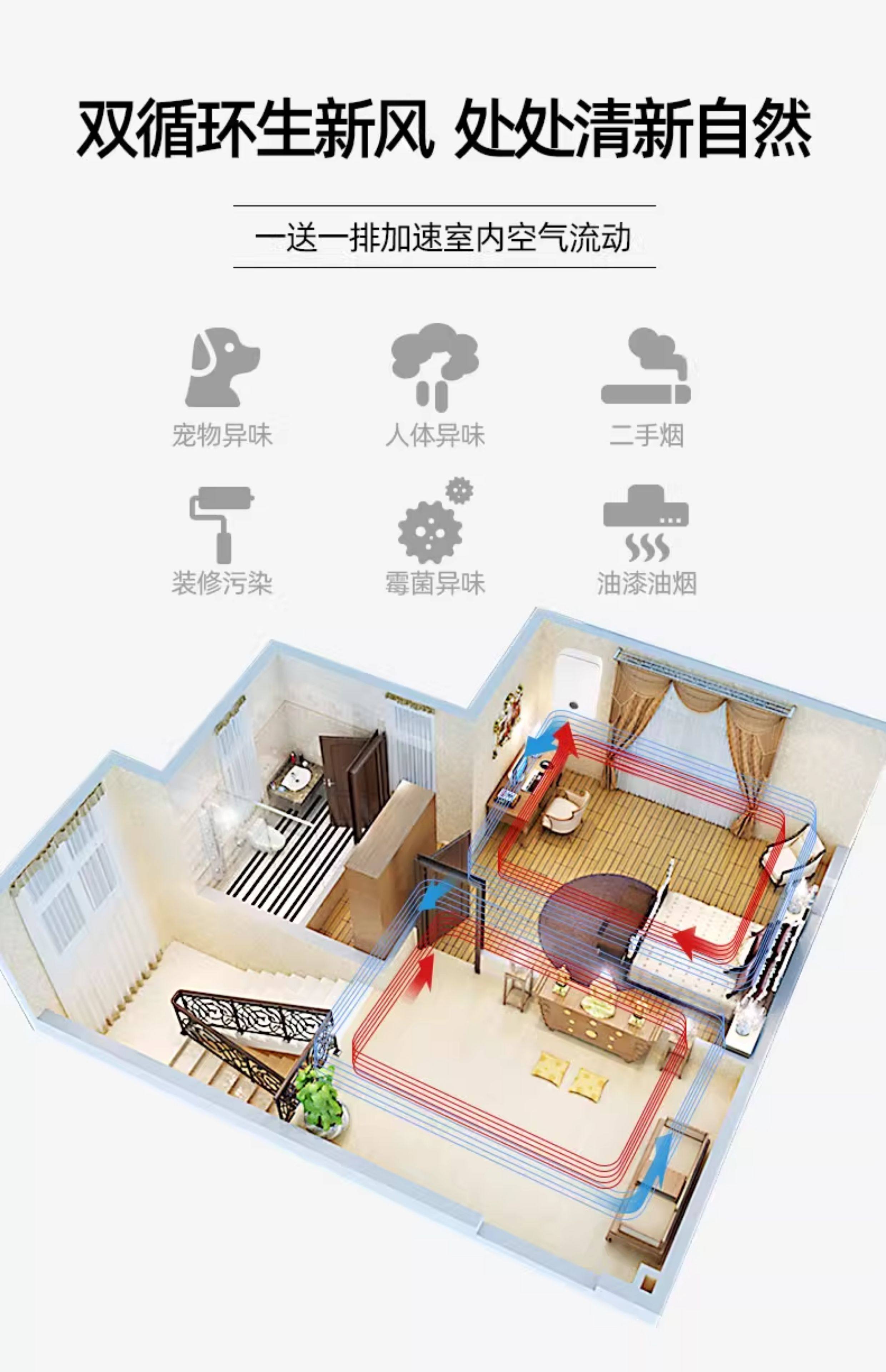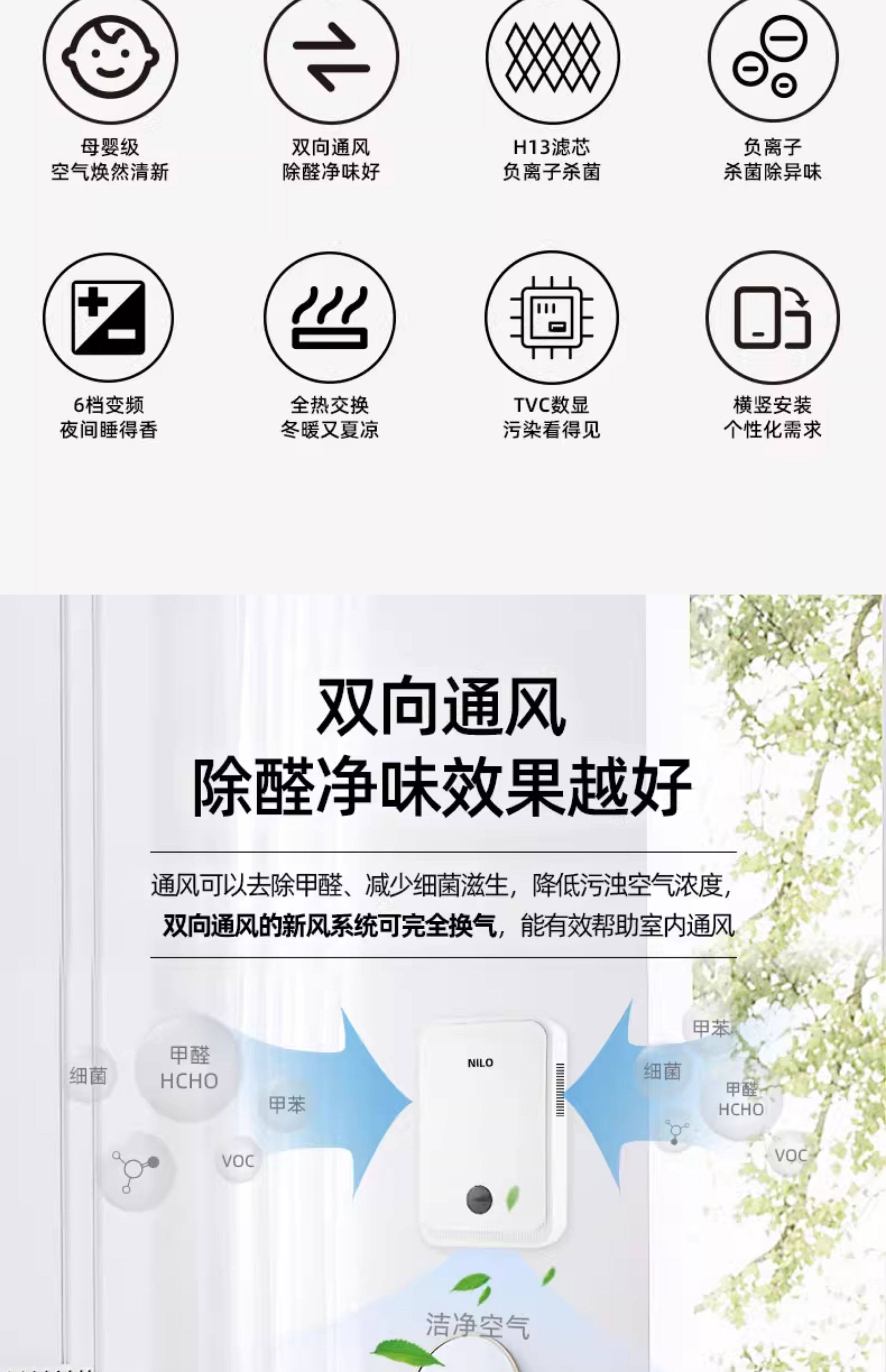 2024 New Model Two-Way Airflow Fresh Air System for Home Whole-House Ventilation and Air Exchange Machine, Indoor Wall-Mounted Formaldehyde Removal Smart Device